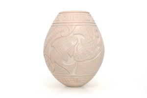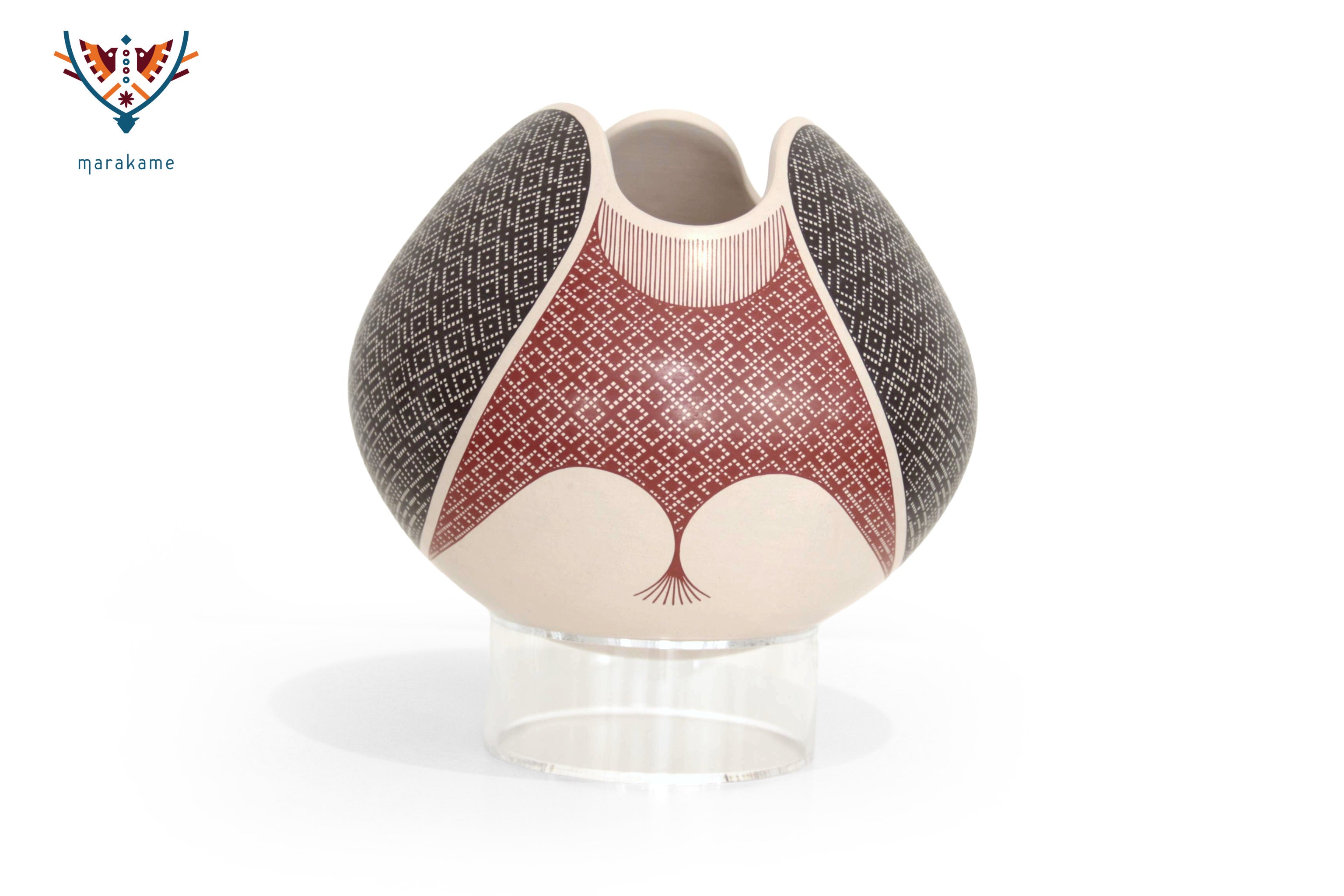 Son cerca de 300 familias las que avivan la tradición alfarera de más de 600 años en Paquimé, empleando la misma técnica y materiales con las que se realizaron extraordinarias vasijas durante el periodo mesoamericano. Con un sentido de actualidad e innovación, las y los artistas de Mata Ortiz renuevan los diseños y rasgos estilísticos que les distinguen y que han generado interés en todo el mundo. Las geometrías y patrones simbólicos revelan a simple vista un aliento nómada y tribal, de profunda conexión con la tierra.