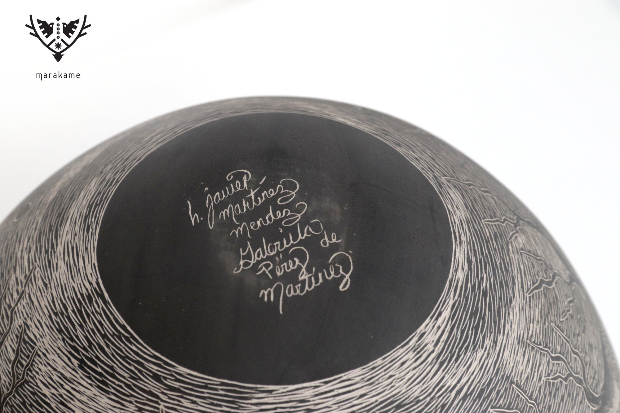 • Héctor Javier Martínez (Mata Ortiz, 1984) irrumpió en la escena alfarera de Mata Ortiz en el año 2008, con el estilo característico que lo distingue hasta el día de hoy: los motivos de la noche y el día de los muertos, en un modelo gráfico muy mexicano y personal. Éste fue resultado de una conversación que él sostuvo con el conocido coleccionista norteamericano Steve Rose. Héctor ha sido ganador del Premio Nacional de Cerámica en Tlaquepaque, Jalisco en 2014, y ha recibido reconocimientos importantes en el Concurso Anual de Cerámica en Mata Ortiz. Continúa con su labor colaborando con su compañera Gabriela Pérez, con quien comparte créditos en la firma de sus piezas.