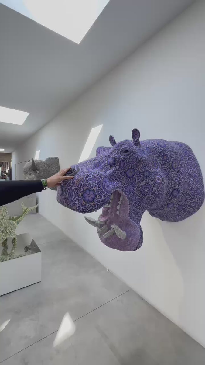 Escultura Arte Huichol - Cabeza de hipopótamo - Yurienaka niukieya - La voz de la tierra