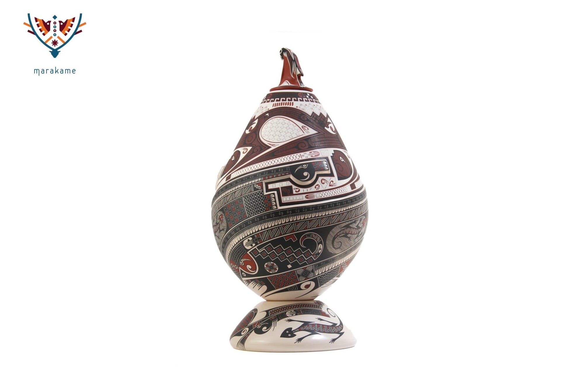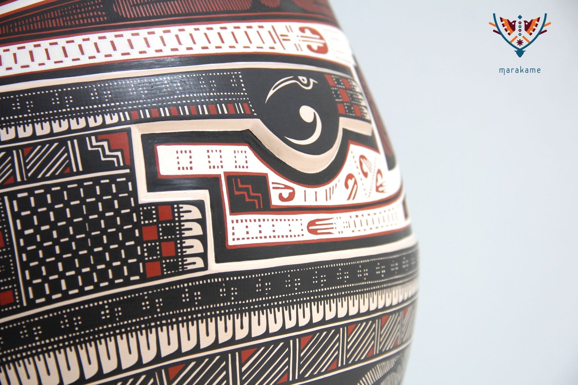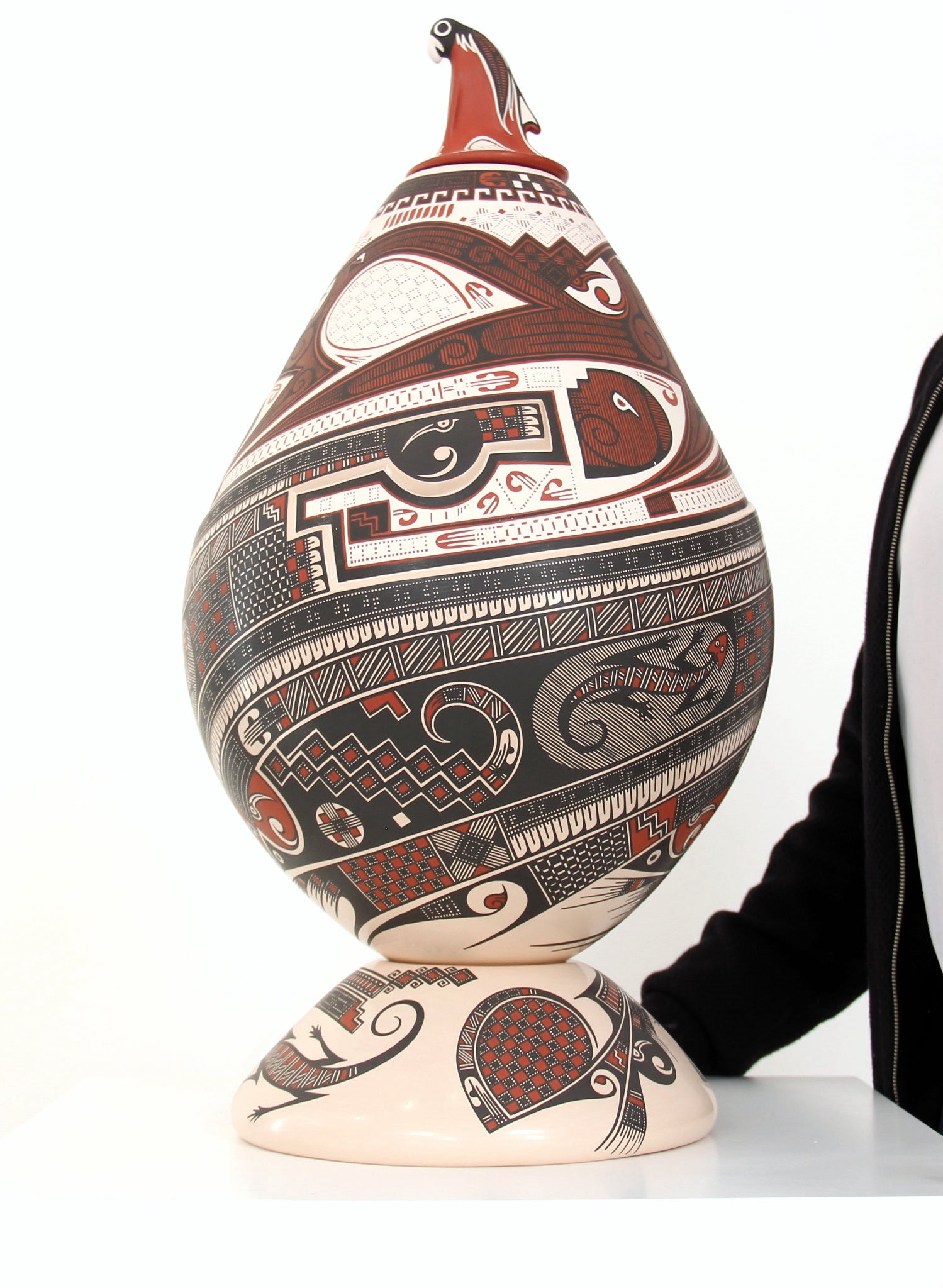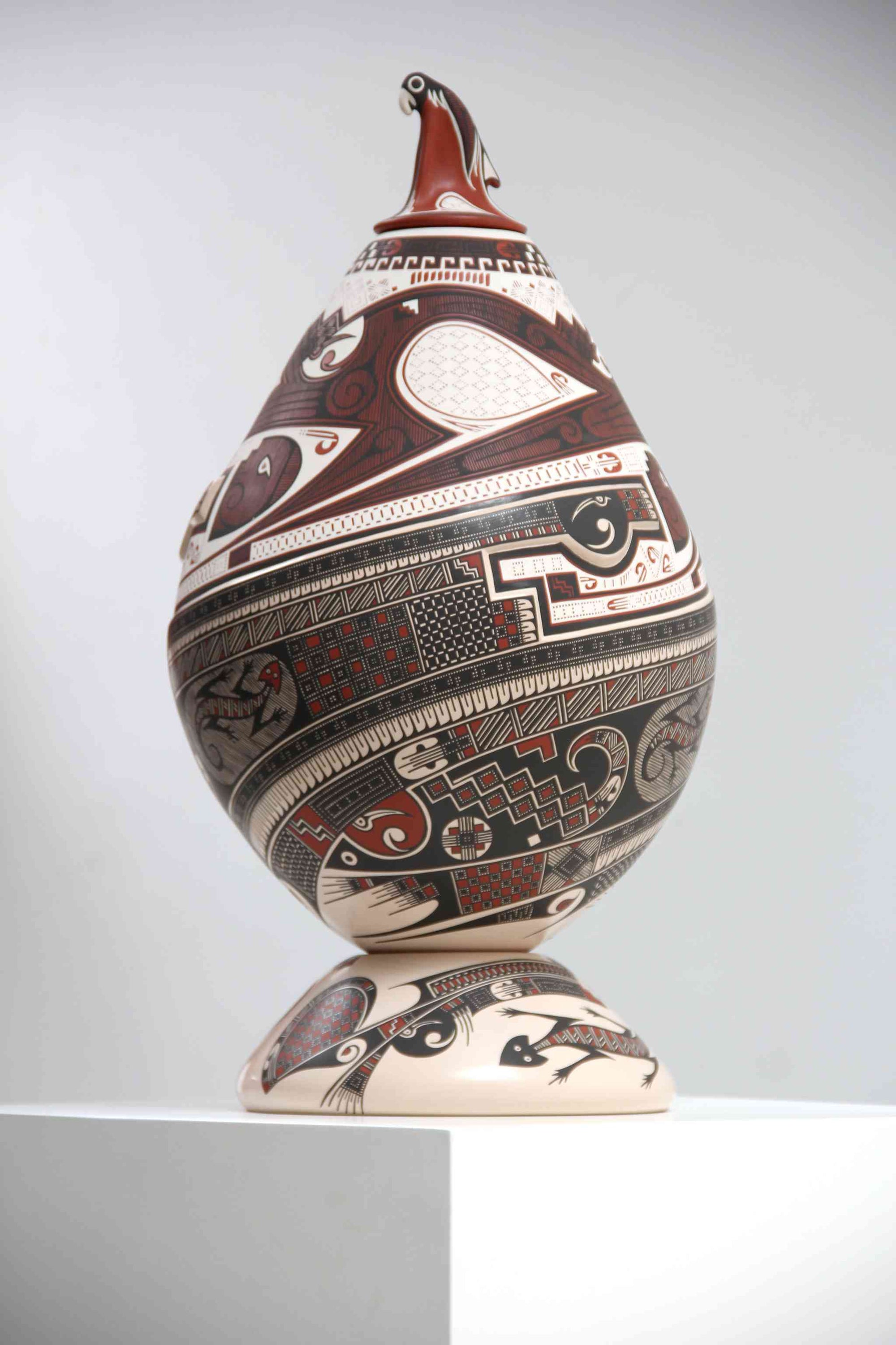 • Jesús Octavio Silveira (Mata Ortiz, 1977) aprendió de su madre y padre el oficio de la alfarería, destacando muy pronto por su dedicación, alta calidad, y por la integración en sus piezas de los estilos Quezada y Porvenir. Ha sido reconocido en numerosas ocasiones en el Concurso Anual de Cerámica en Mata Ortiz, destacando en la categoría “Premio a la Excelencia” en 2019. A través de la Casa de las Artesanías, fue comisionado por el Gobierno del Estado de Chihuahua para producir una pieza cerámica para el Papa Francisco en su visita a México en 2016, obra que realizó en colaboración con Griselda Ortiz Martínez.