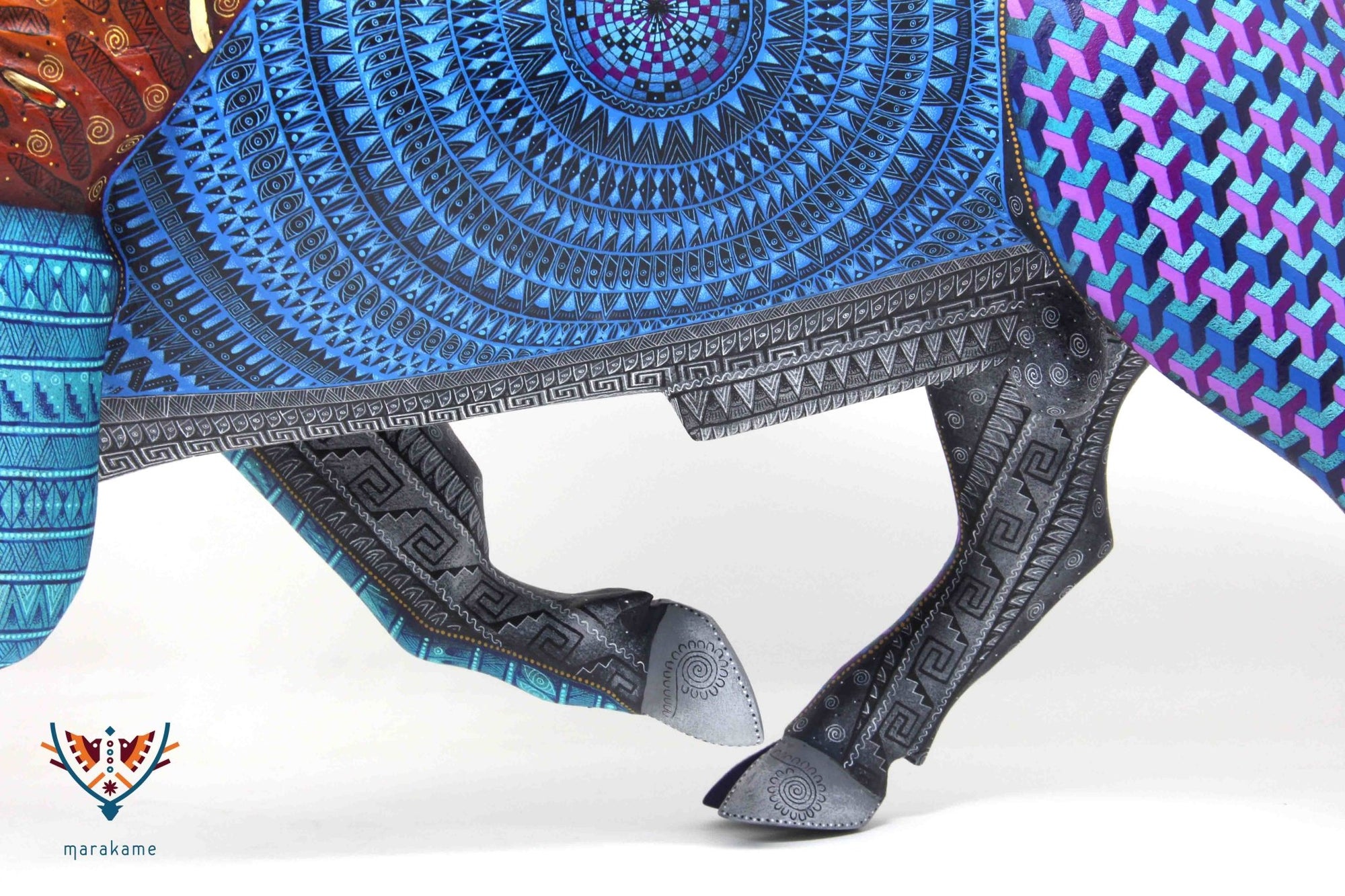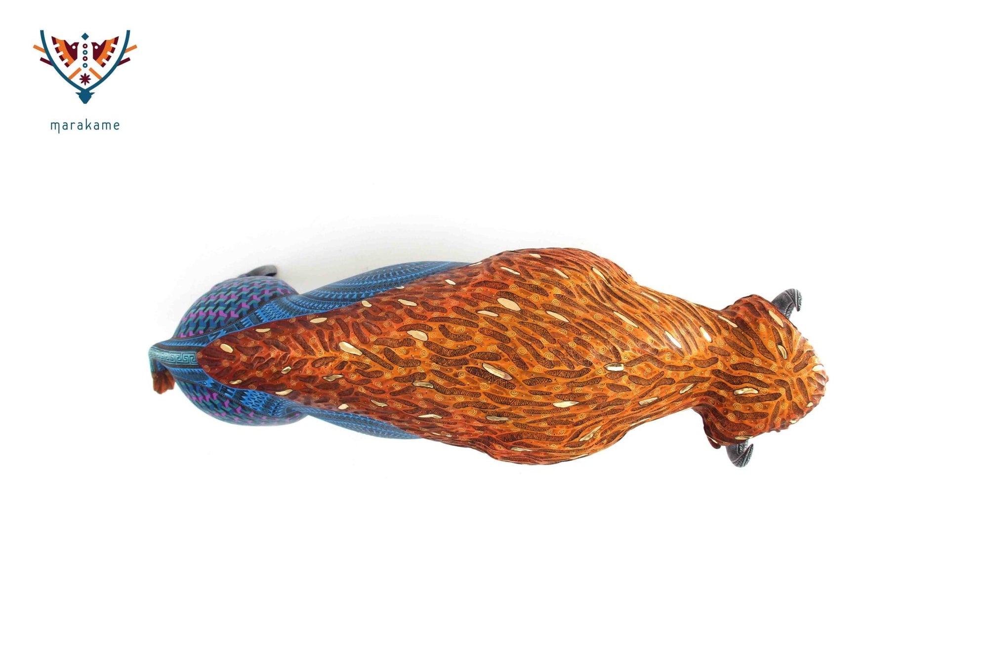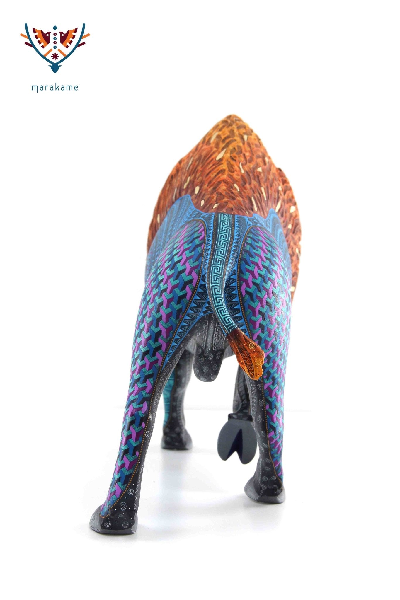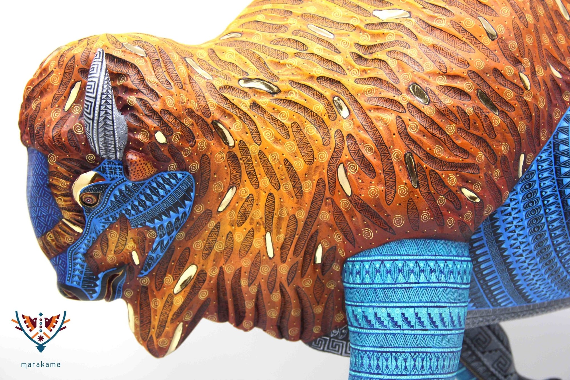 Esta selección especial de Alebrije oaxaqueño comisionada por Marakame a los mejores autores de alebrije moderno, es pintado a mano sobre talla en madera del árbol de copal (Bursera, spp), el cual crece a los alrededores de la comunidad de San Martín Tilcajete, localidad de la región Zapoteca del Estado de Oaxaca, en el Sur de México.
