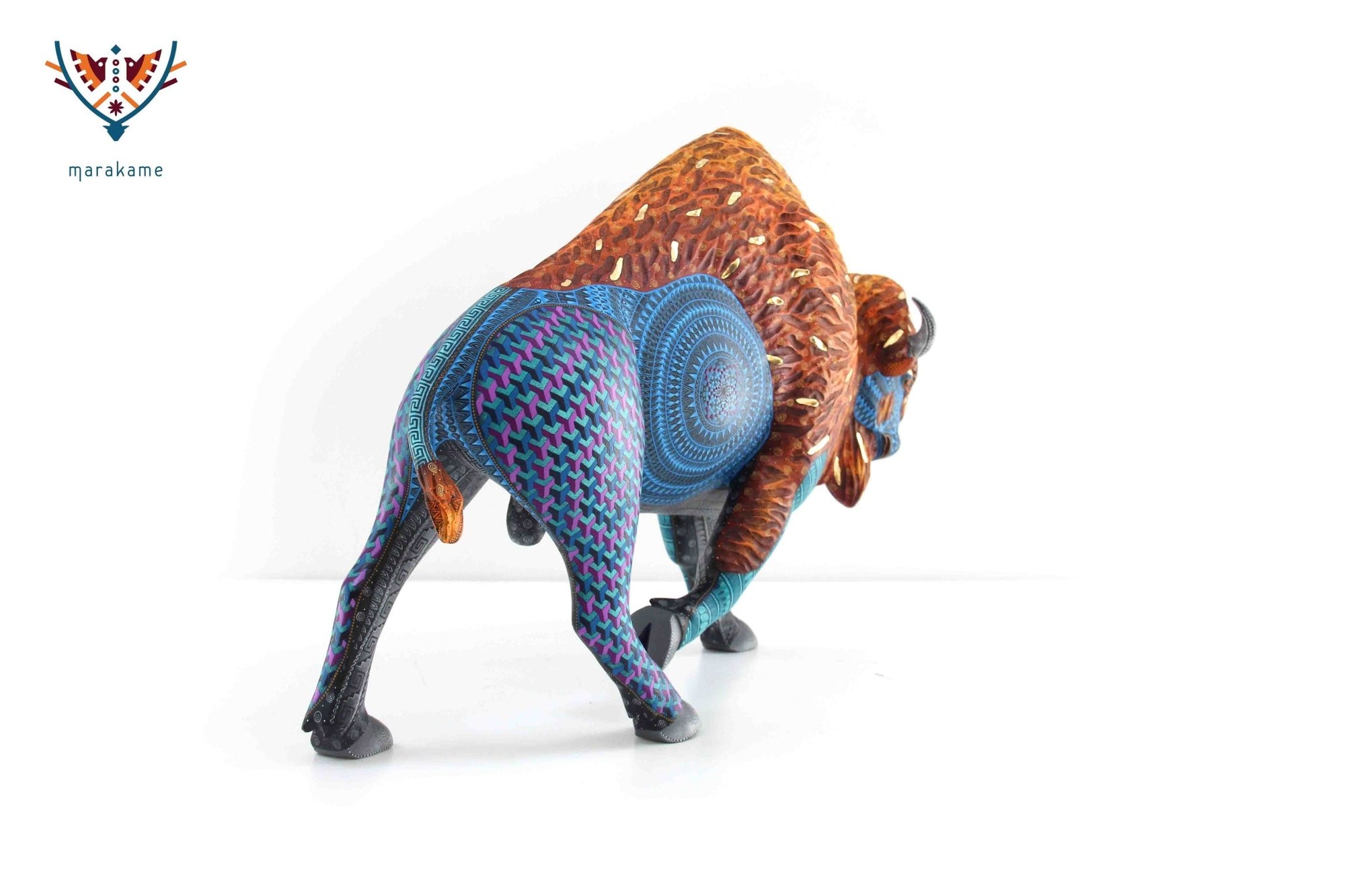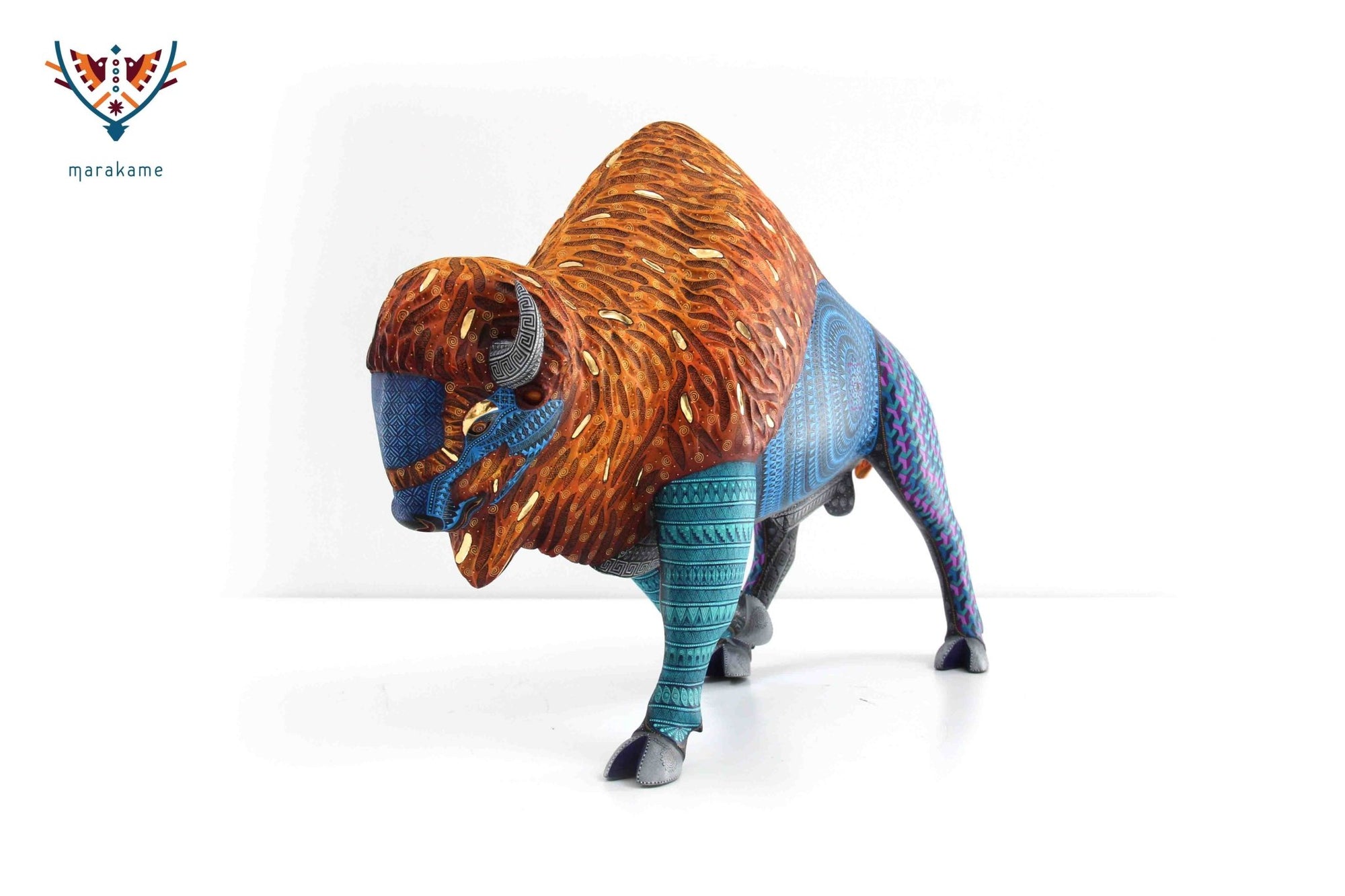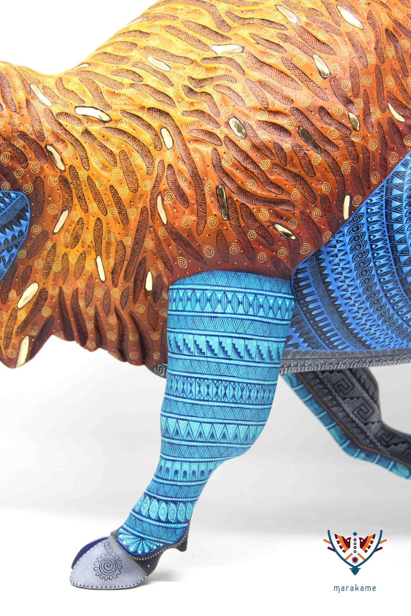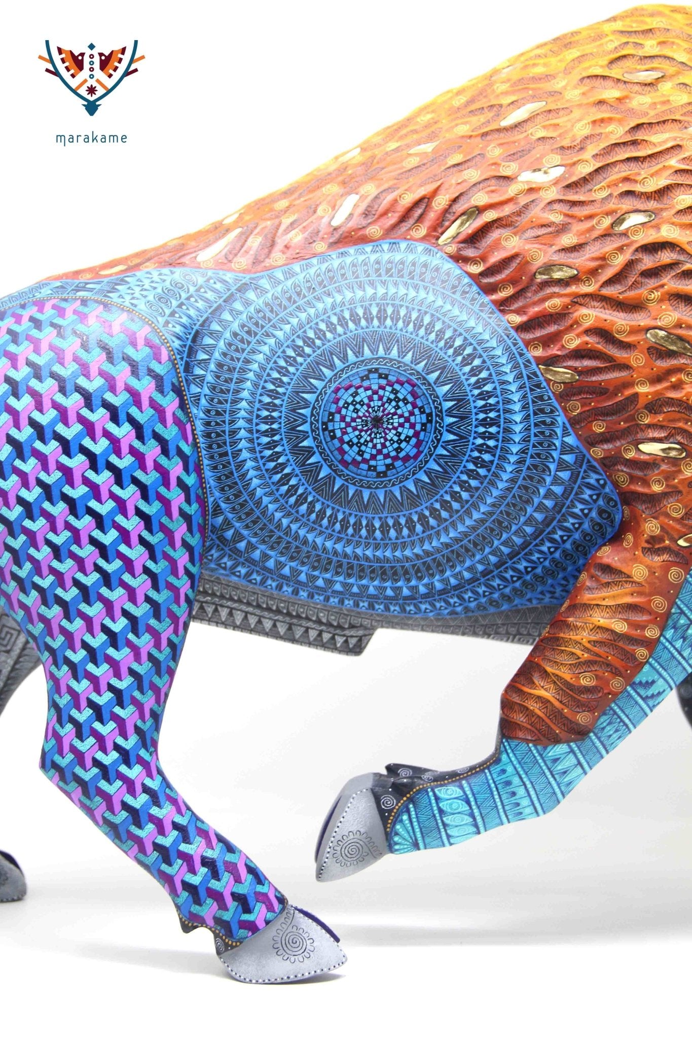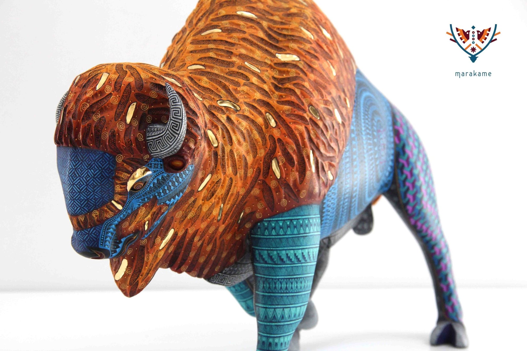 Esta selección especial de Alebrije oaxaqueño comisionada por Marakame a los mejores autores de alebrije moderno, es pintado a mano sobre talla en madera del árbol de copal (Bursera, spp), el cual crece a los alrededores de la comunidad de San Martín Tilcajete, localidad de la región Zapoteca del Estado de Oaxaca, en el Sur de México.