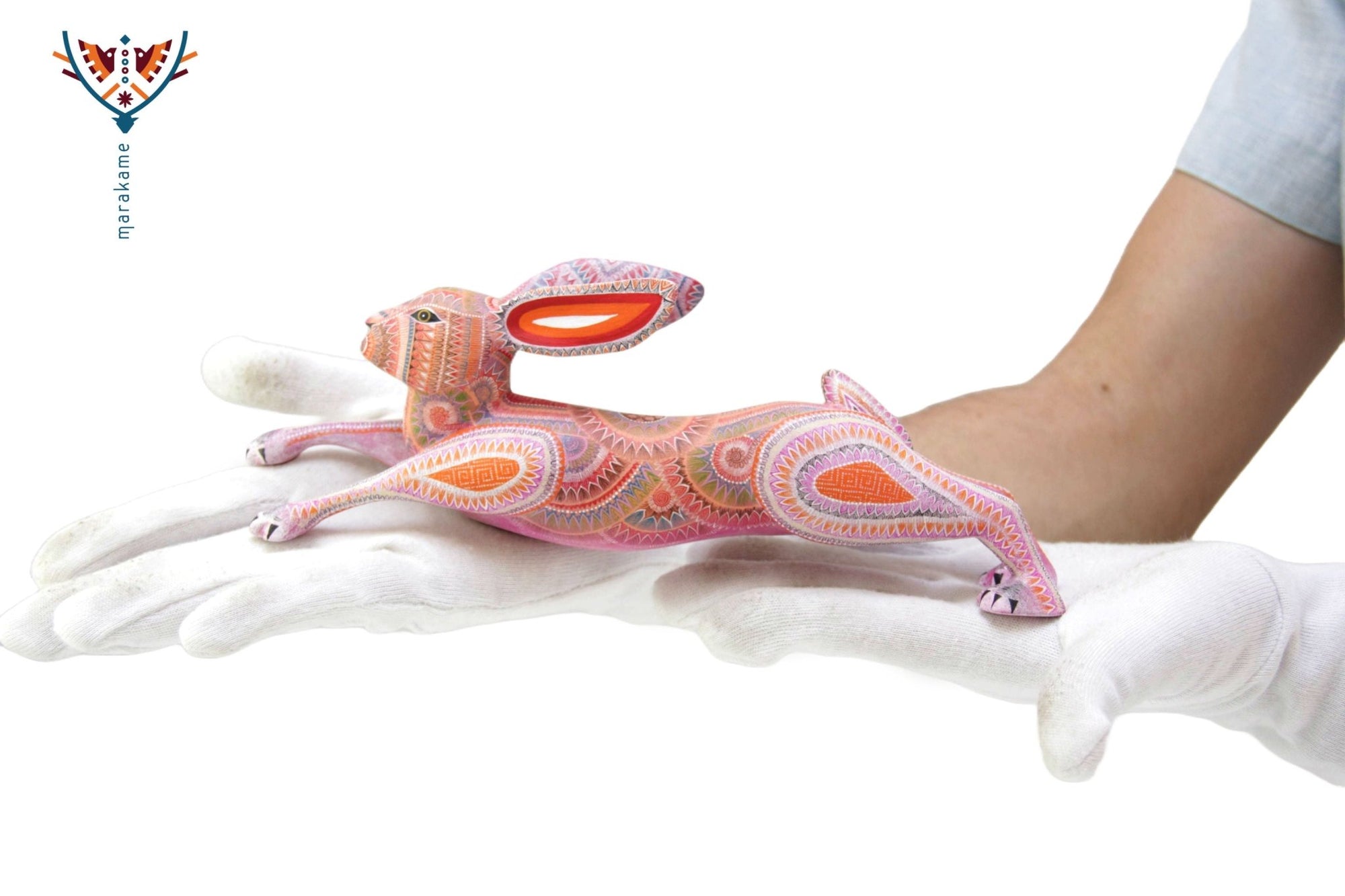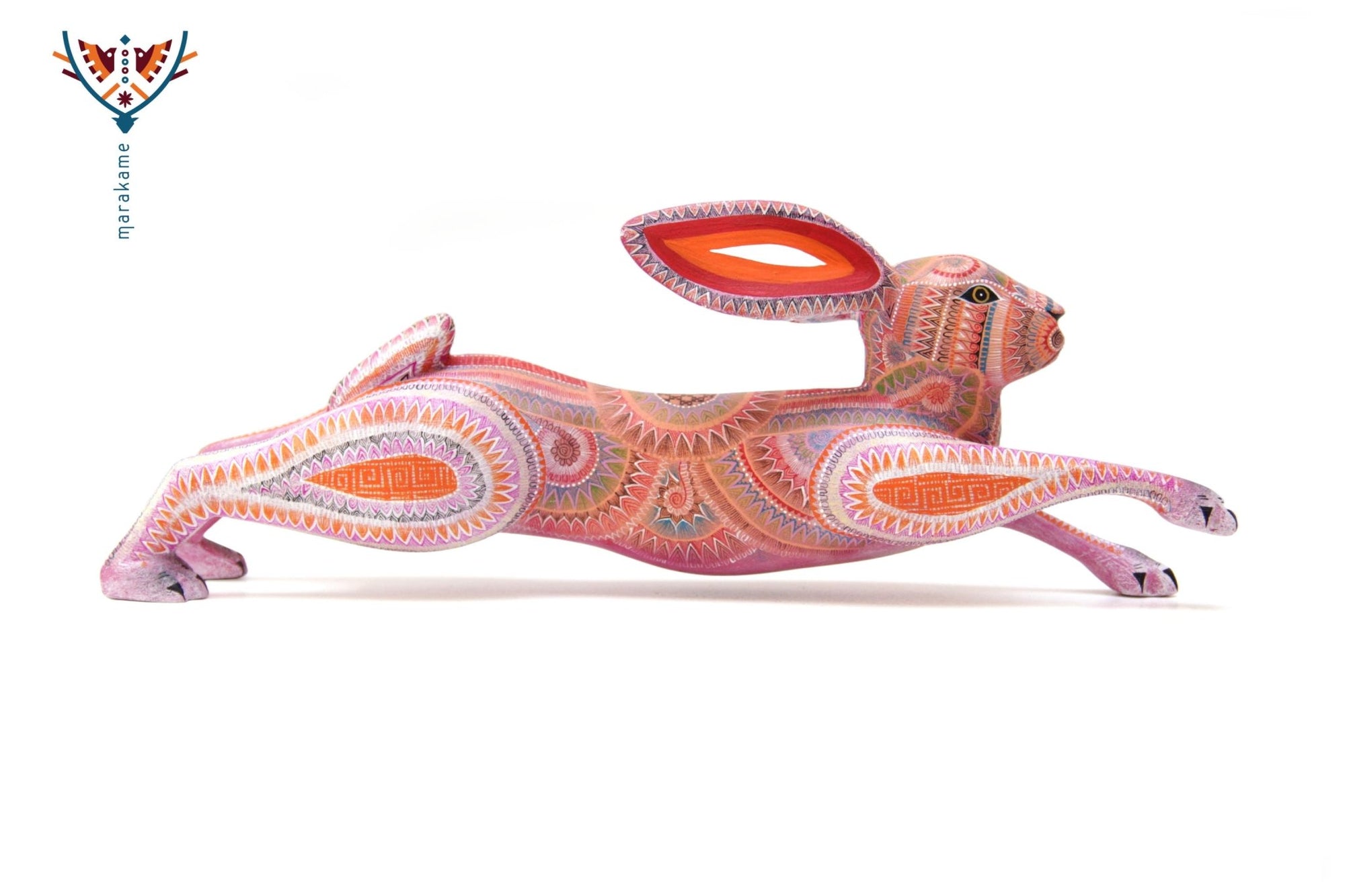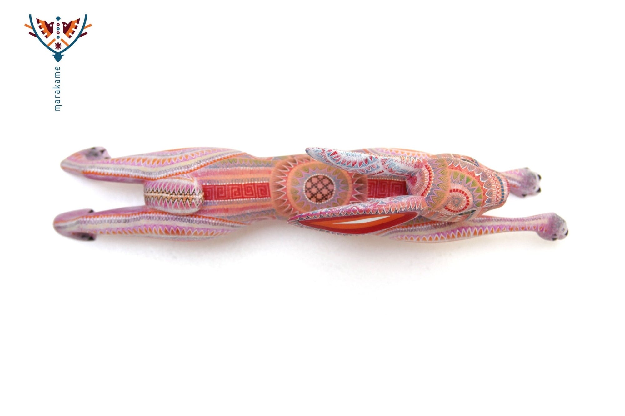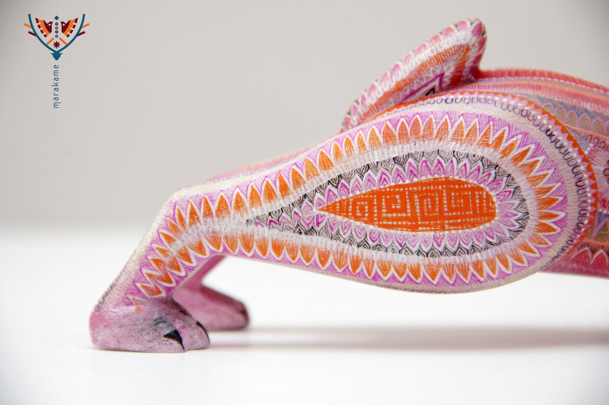 Esta selección especial de Alebrije oaxaqueño comisionada por Marakame a los mejores autores de alebrije moderno, es pintado a mano sobre talla en madera del árbol de copal (Bursera, spp), el cual crece a los alrededores de las comunidades de San Martín Tilcajete y San Antonio Arrazola, localidades de la región Zapoteca del Estado de Oaxaca, en el Sur de México. También se utiliza de forma común la talla en madera de cedro por las características de esta madera.
