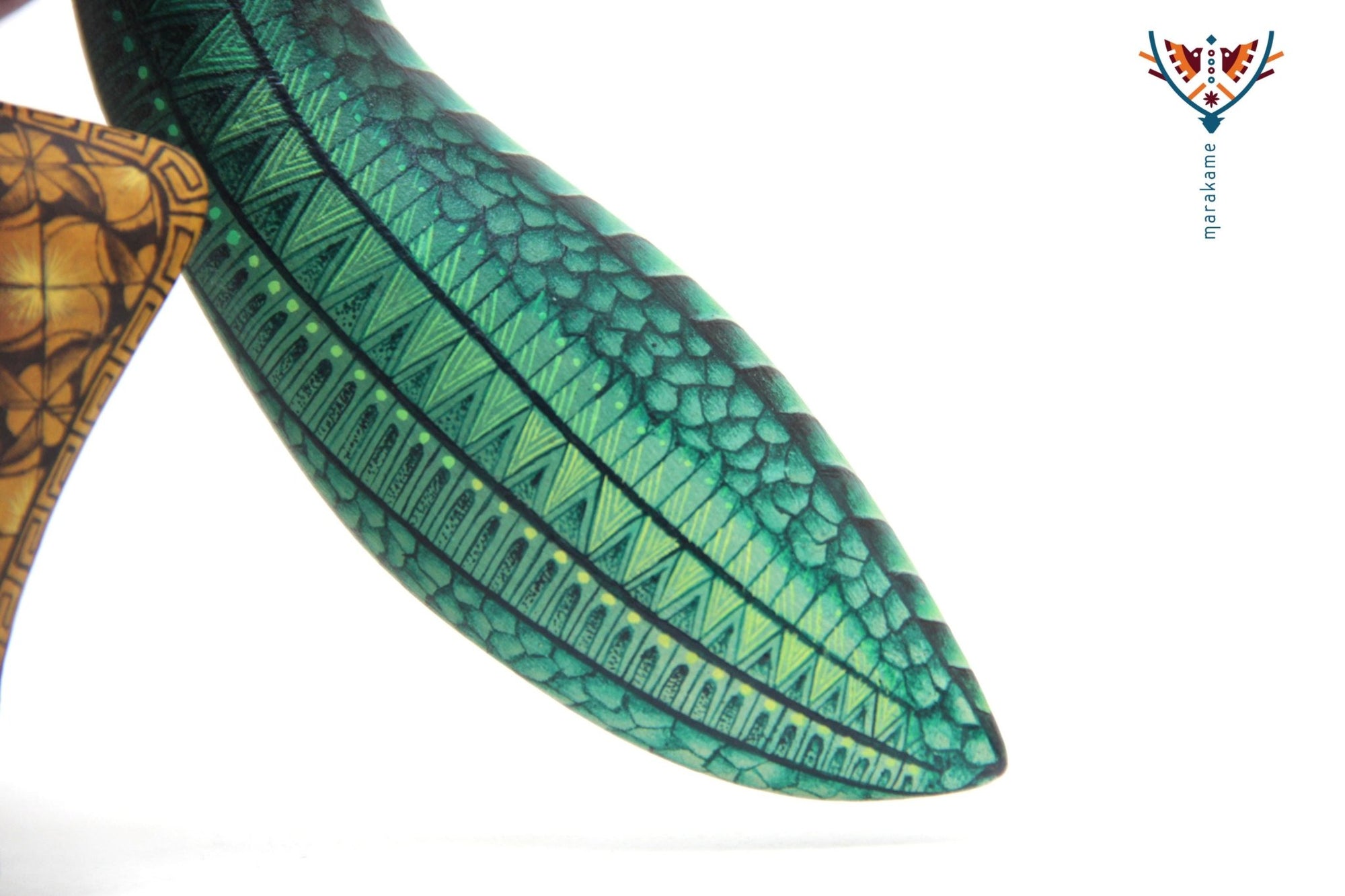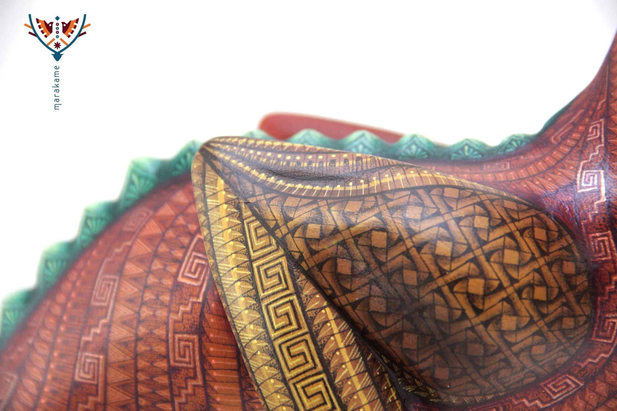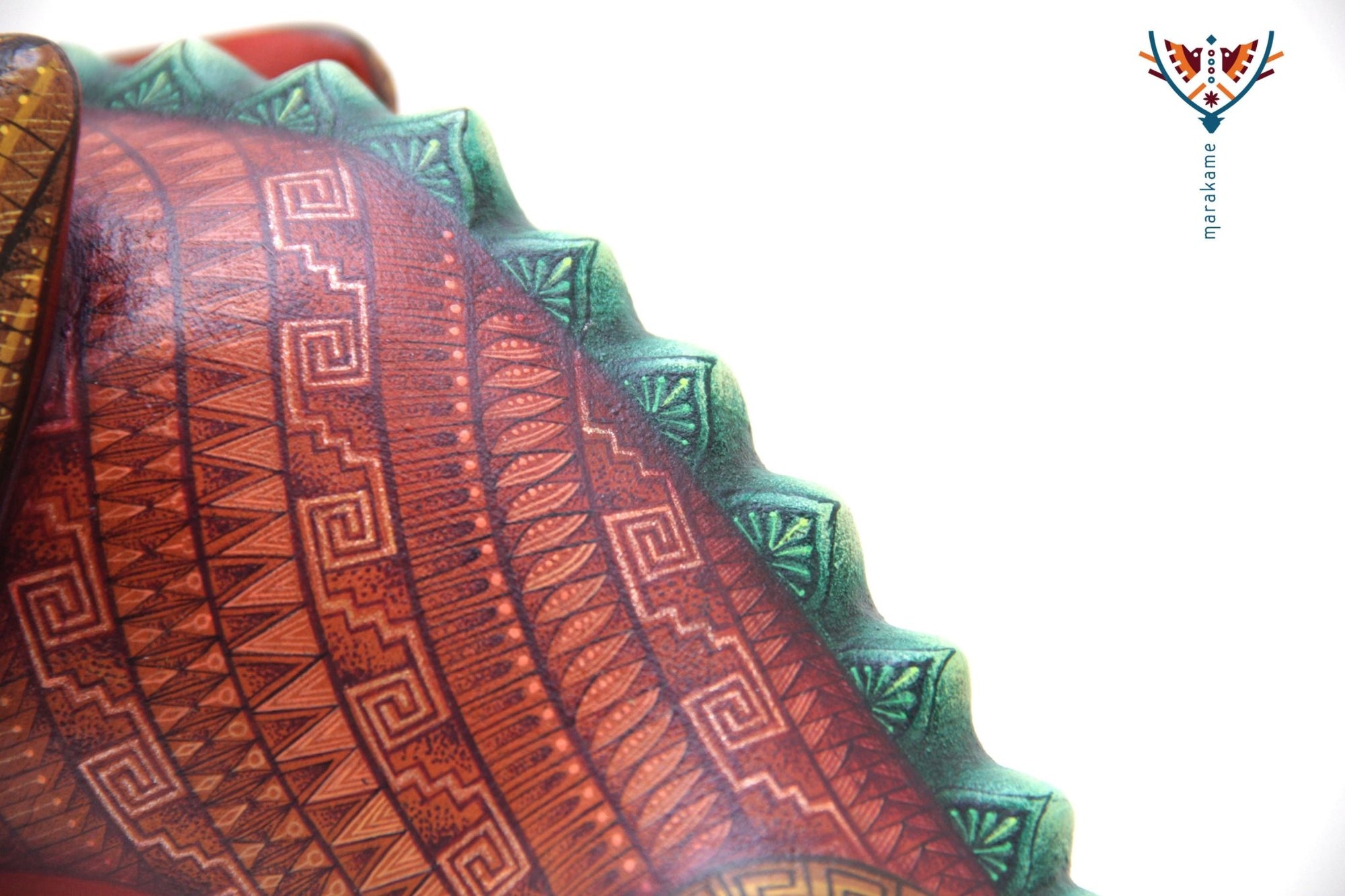 • ◇ Técnica: Pintado a mano sobre talla de madera de copal (Bursera spp.).