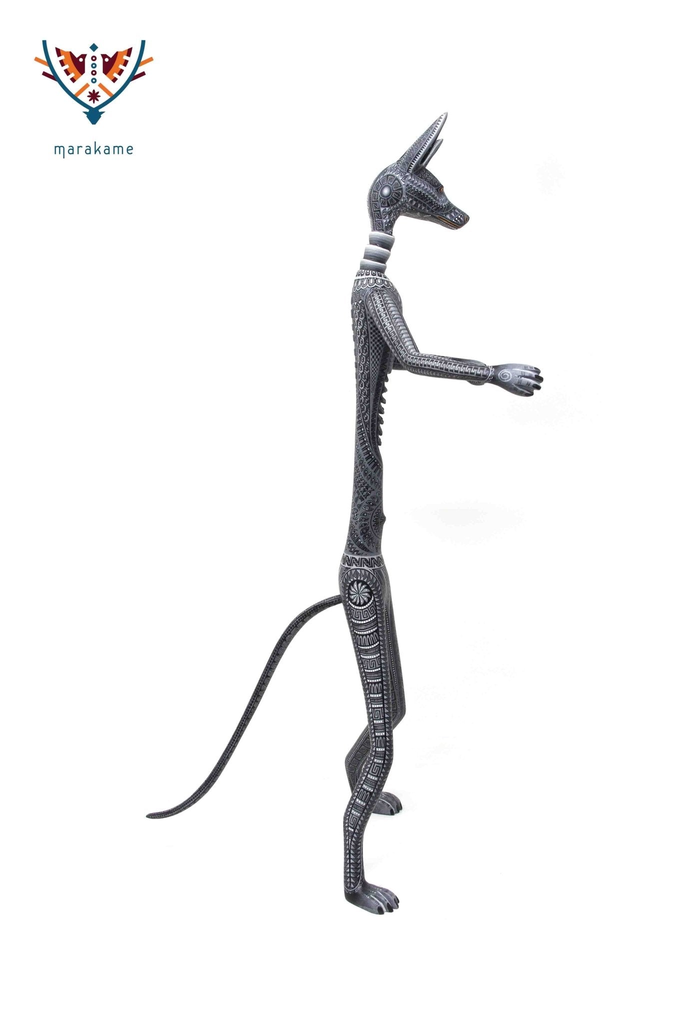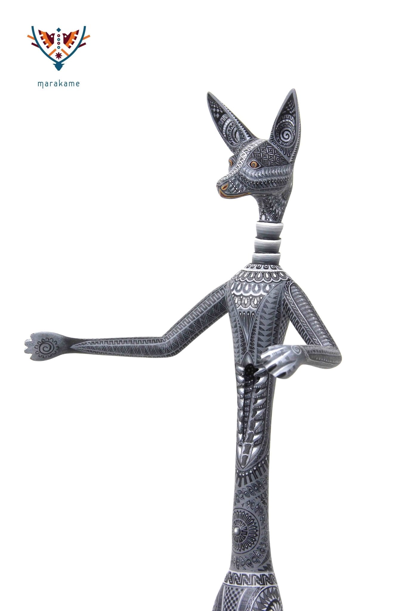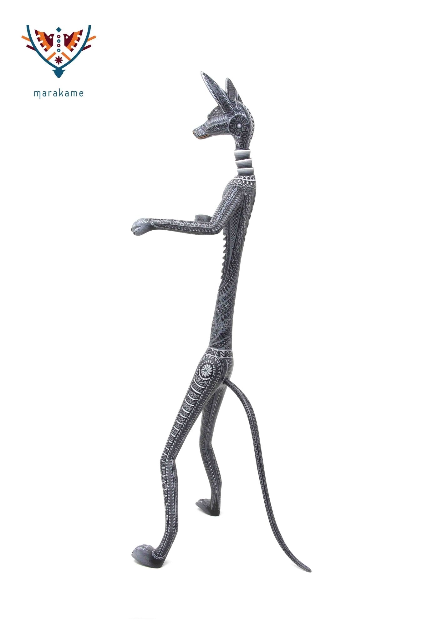 Esta selección especial de Alebrije oaxaqueño comisionada por Marakame a los mejores autores de alebrije moderno, es pintado a mano sobre talla en madera del árbol de copal (Bursera, spp), el cual crece a los alrededores de la comunidad de San Martín Tilcajete, localidad de la región Zapoteca del Estado de Oaxaca, en el Sur de México.