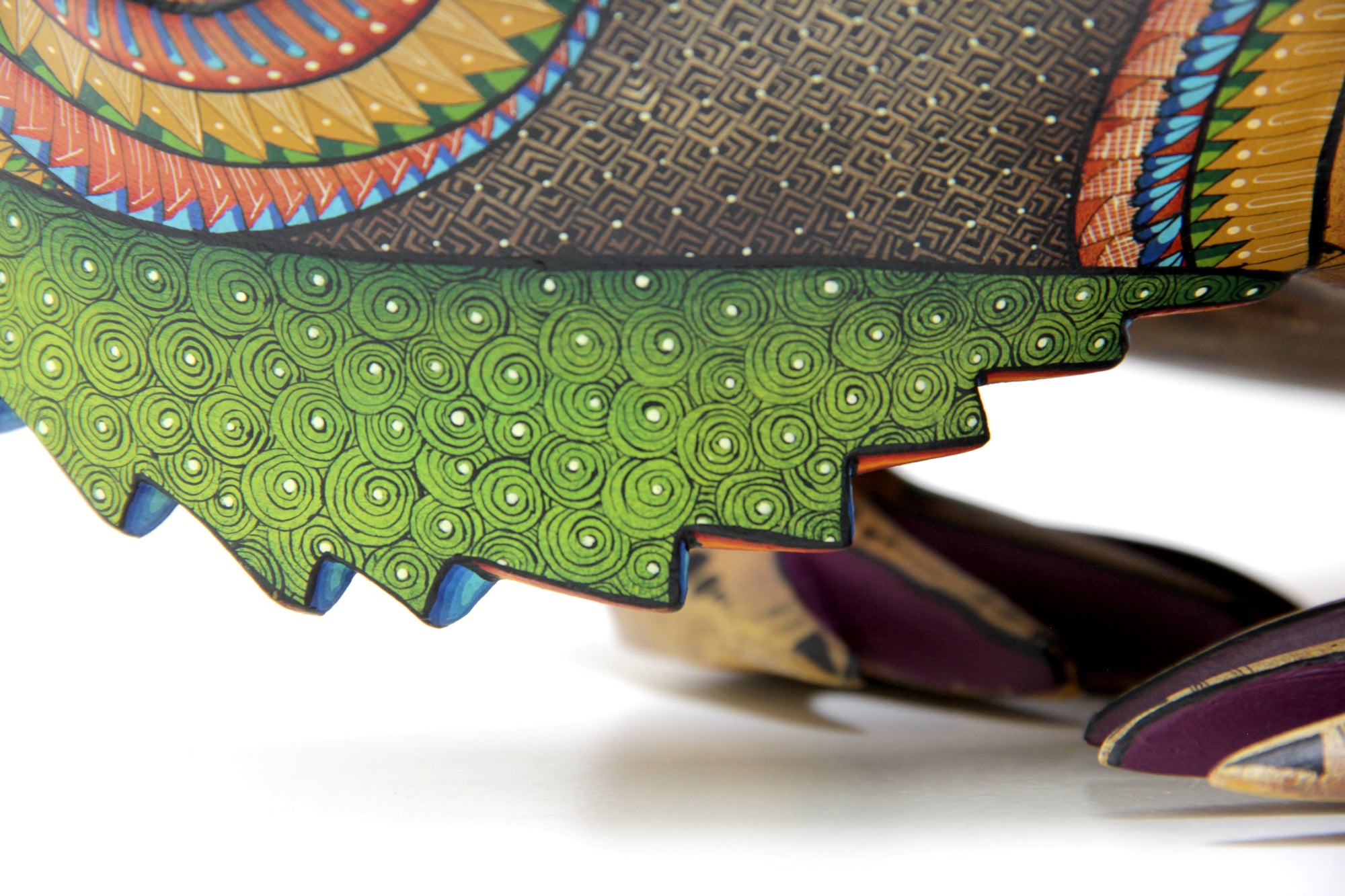 • ◇ Técnica: Pintado a mano sobre talla de madera de copal (Bursera spp.).