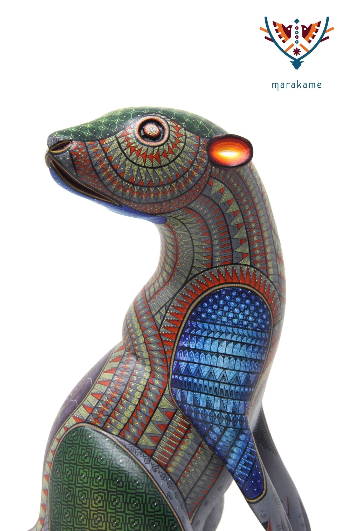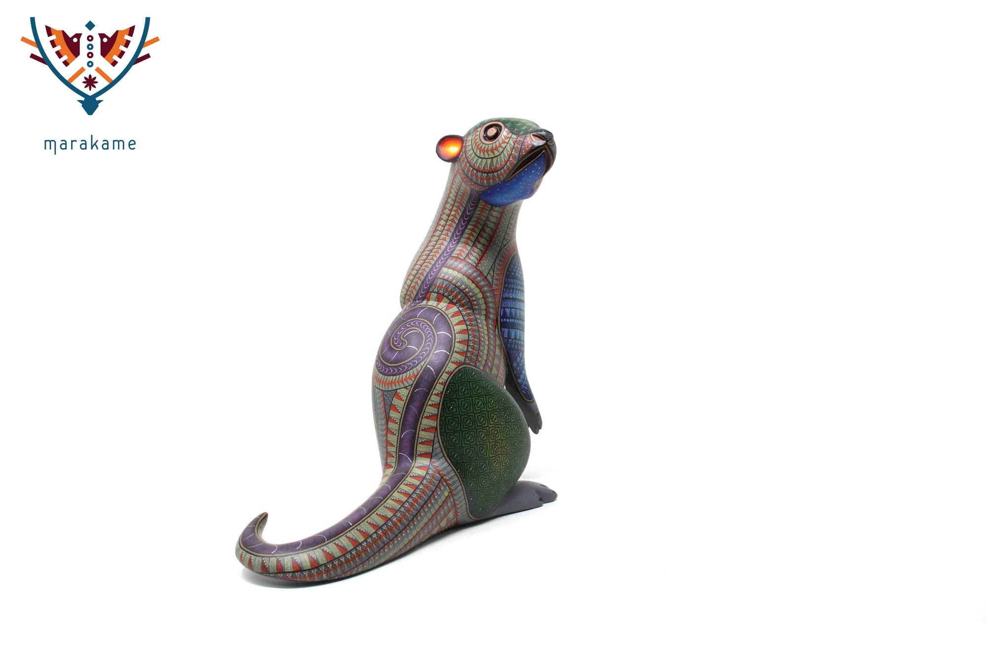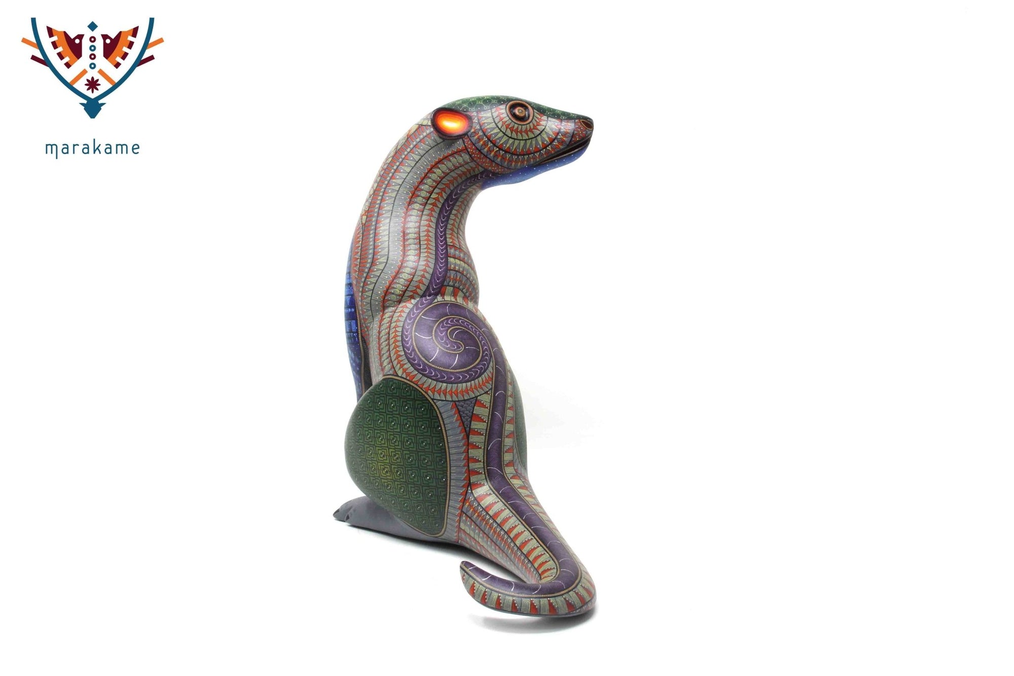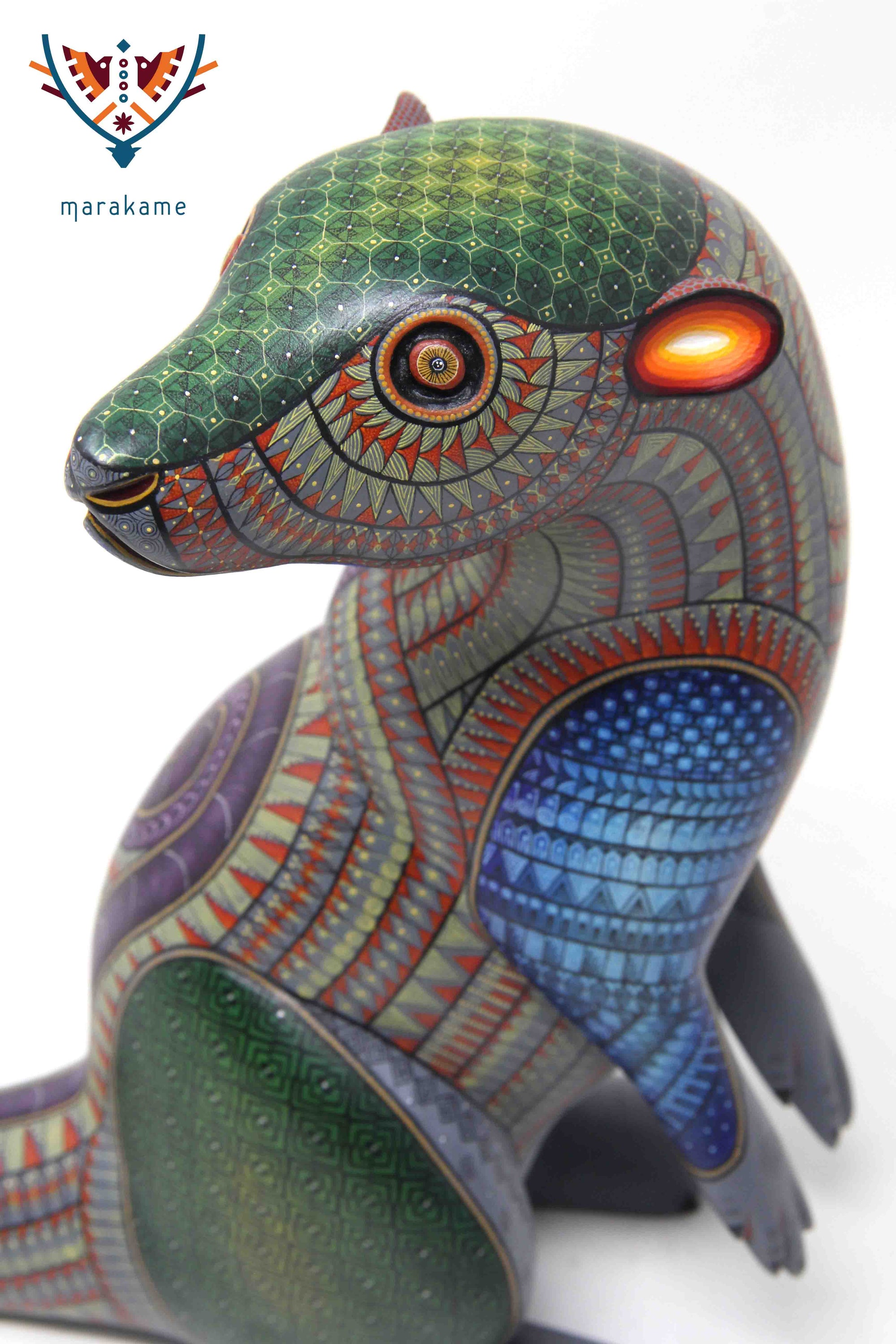 Esta selección especial de Alebrije oaxaqueño comisionada por Marakame a los mejores autores de alebrije moderno, es pintado a mano sobre talla en madera del árbol de copal (Bursera, spp), el cual crece a los alrededores de la comunidad de San Martín Tilcajete, localidad de la región Zapoteca del Estado de Oaxaca, en el Sur de México.