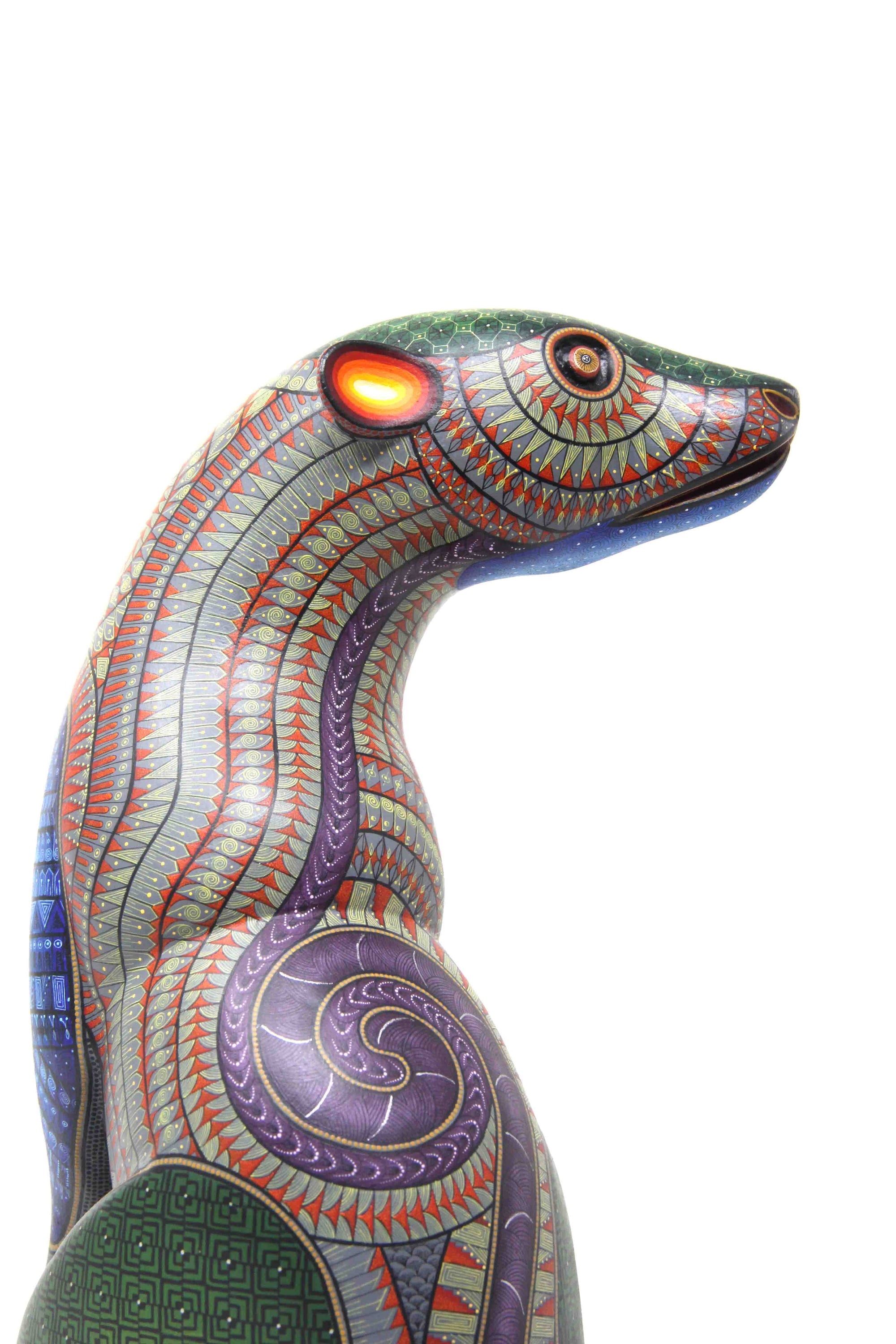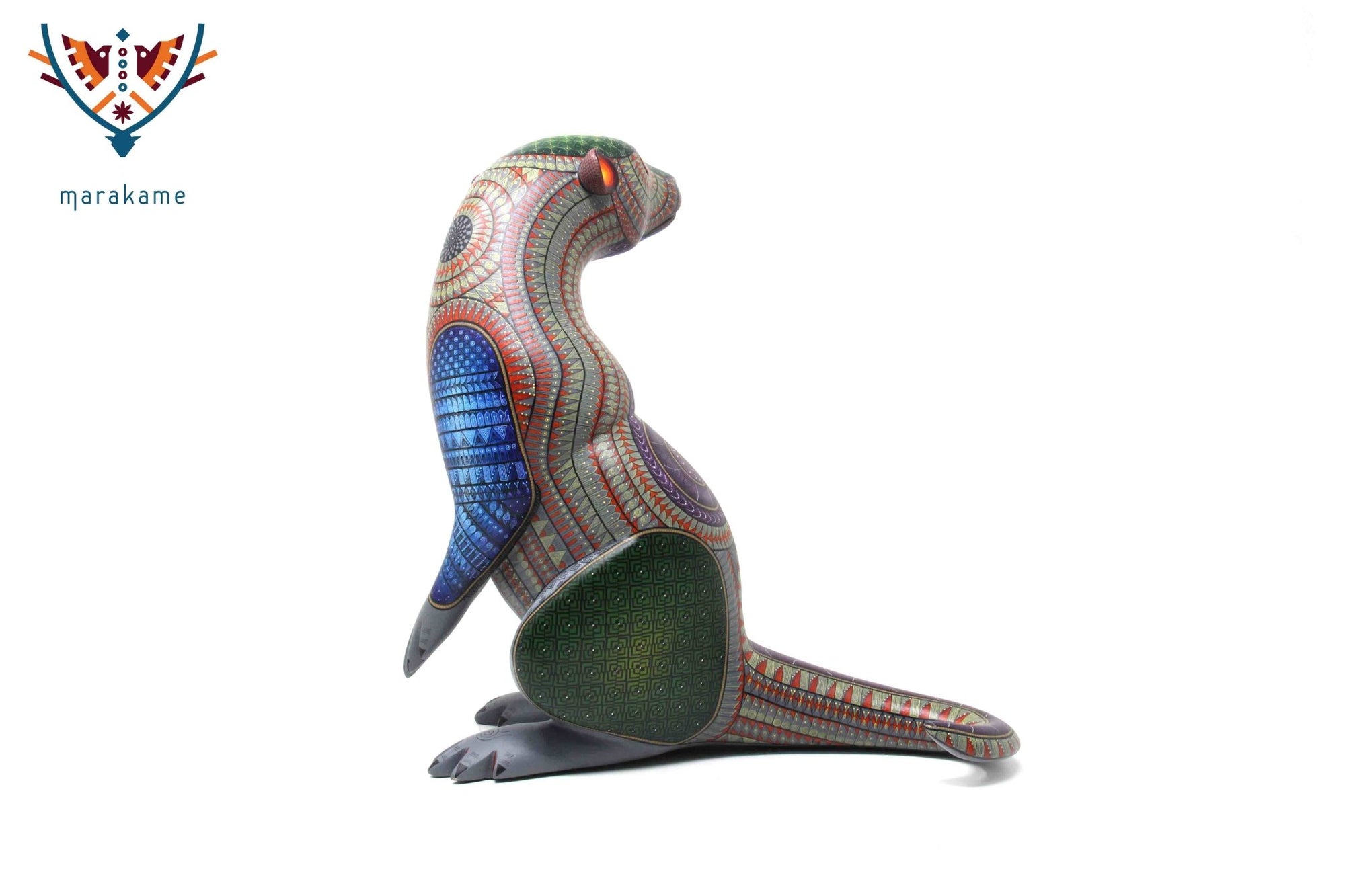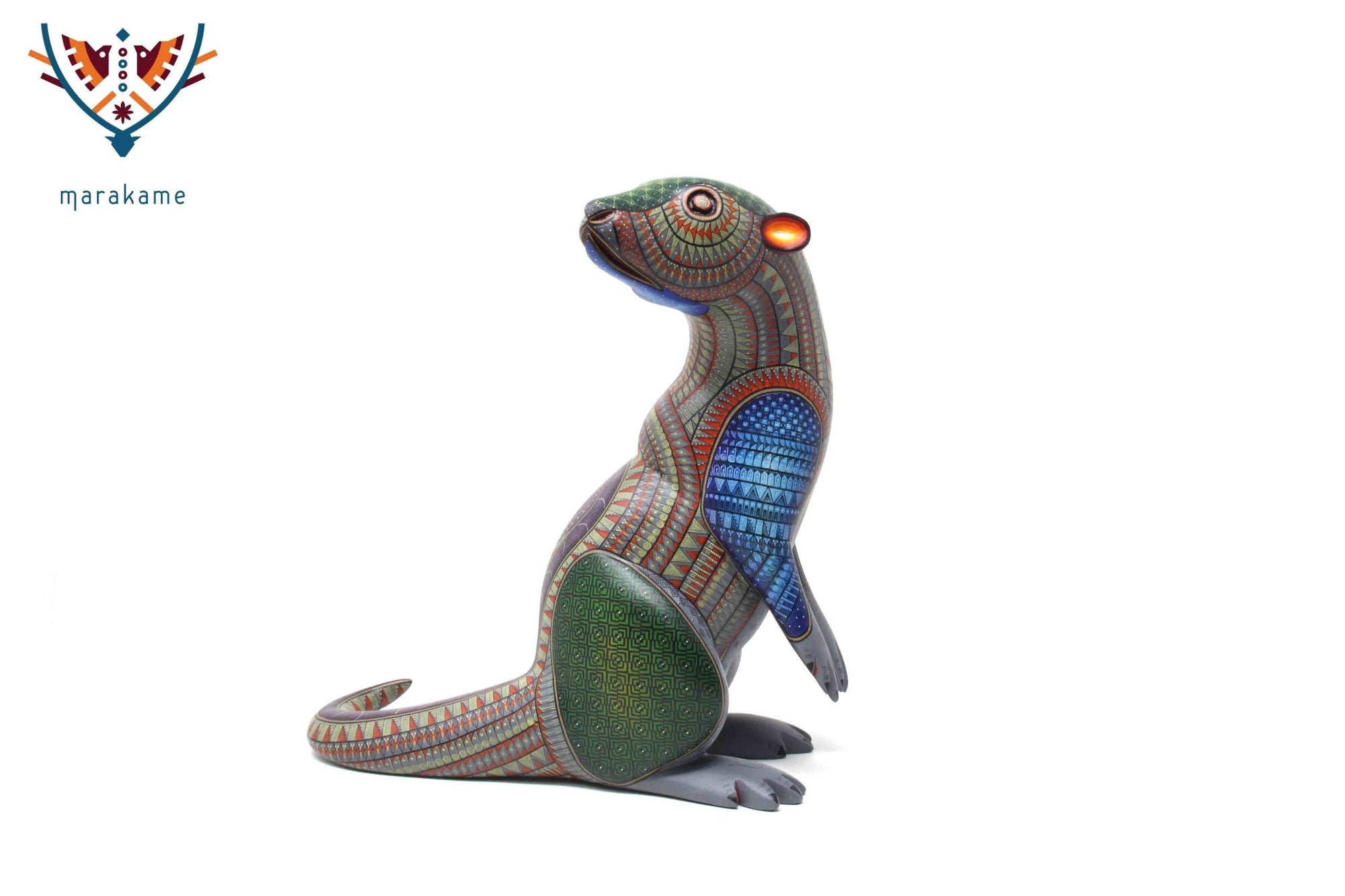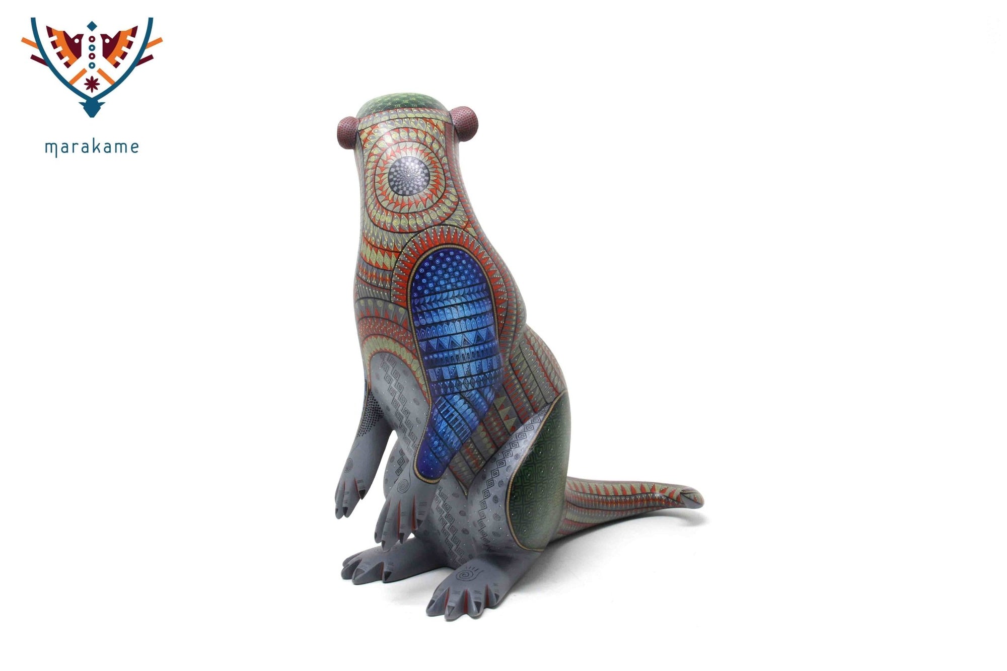 Esta selección especial de Alebrije oaxaqueño comisionada por Marakame a los mejores autores de alebrije moderno, es pintado a mano sobre talla en madera del árbol de copal (Bursera, spp), el cual crece a los alrededores de la comunidad de San Martín Tilcajete, localidad de la región Zapoteca del Estado de Oaxaca, en el Sur de México.