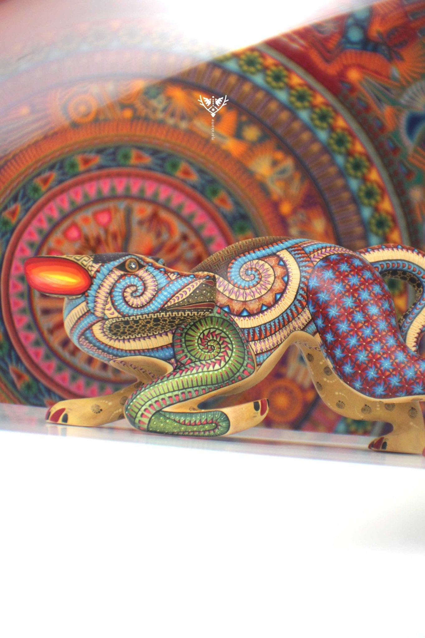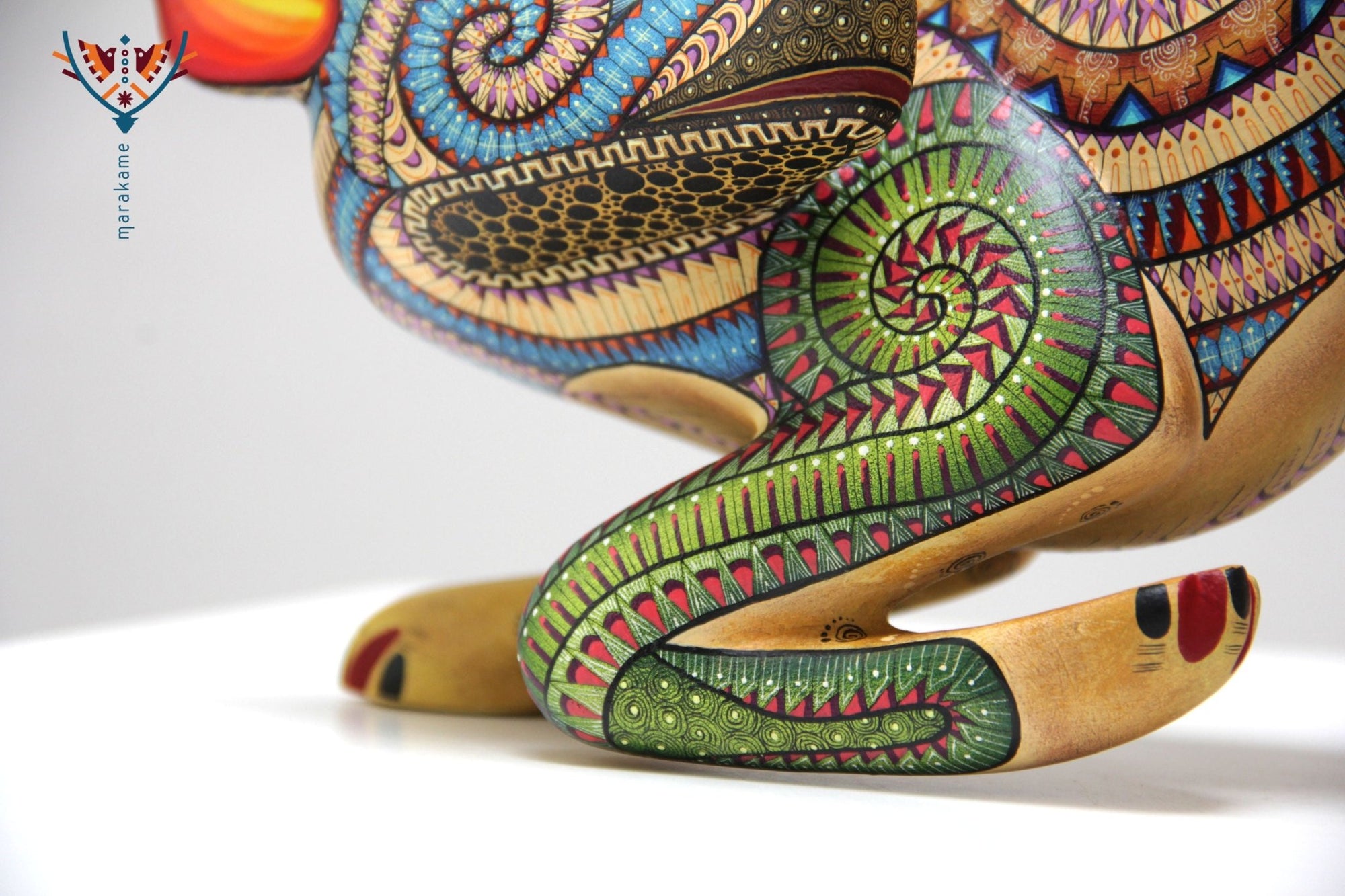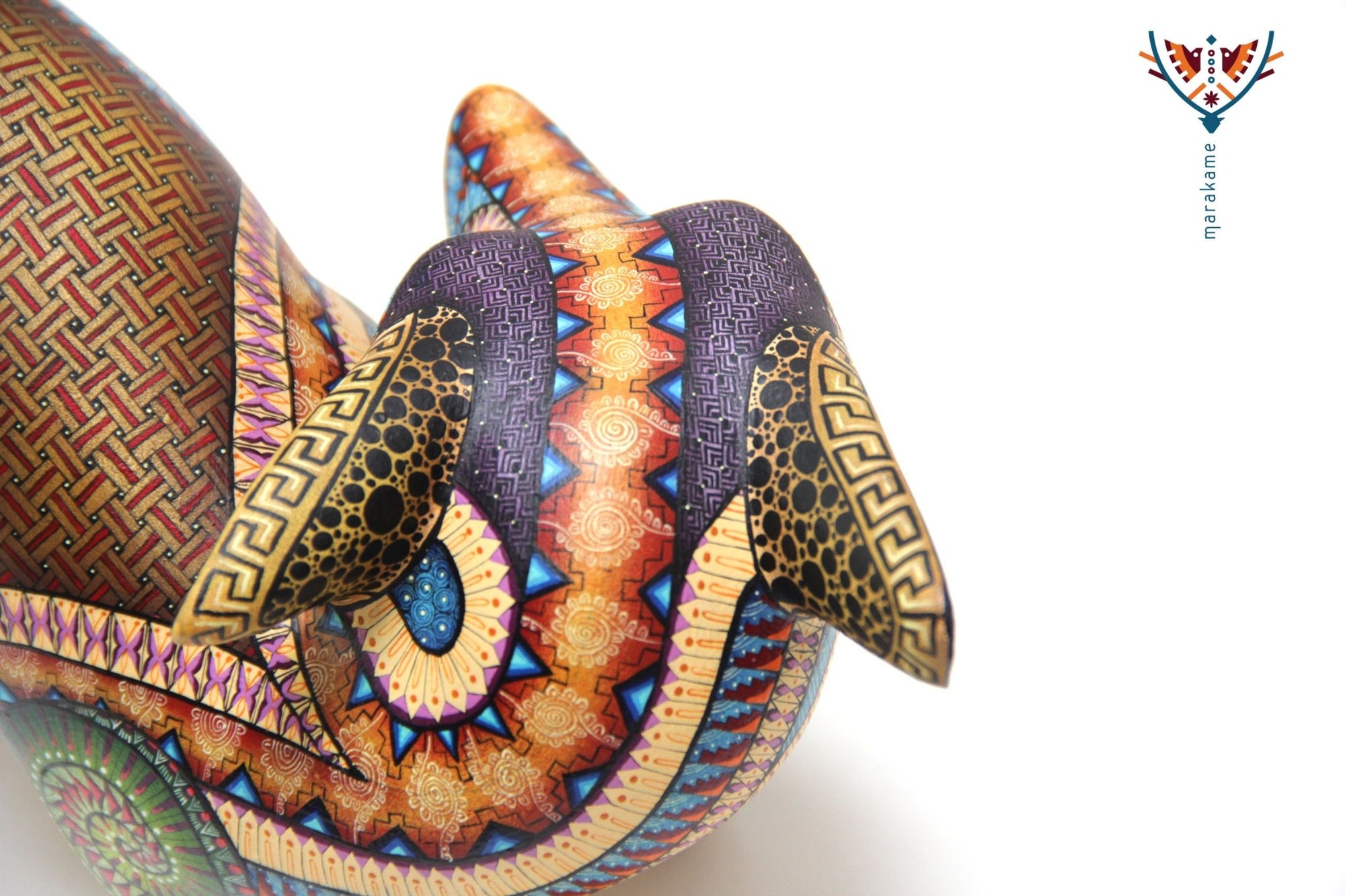 • ◇ Técnica: Pintado a mano sobre talla de madera de copal (Bursera spp.).