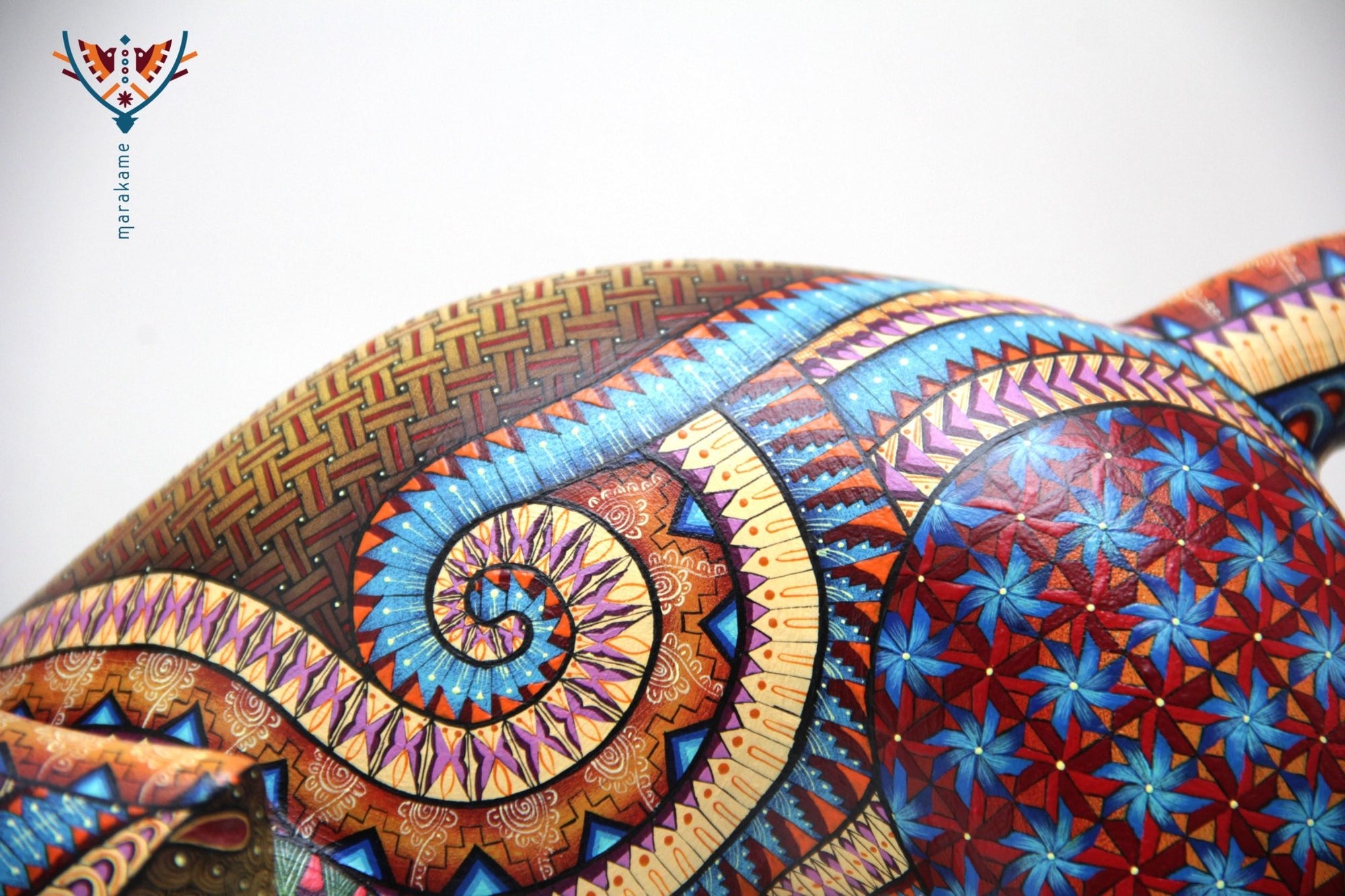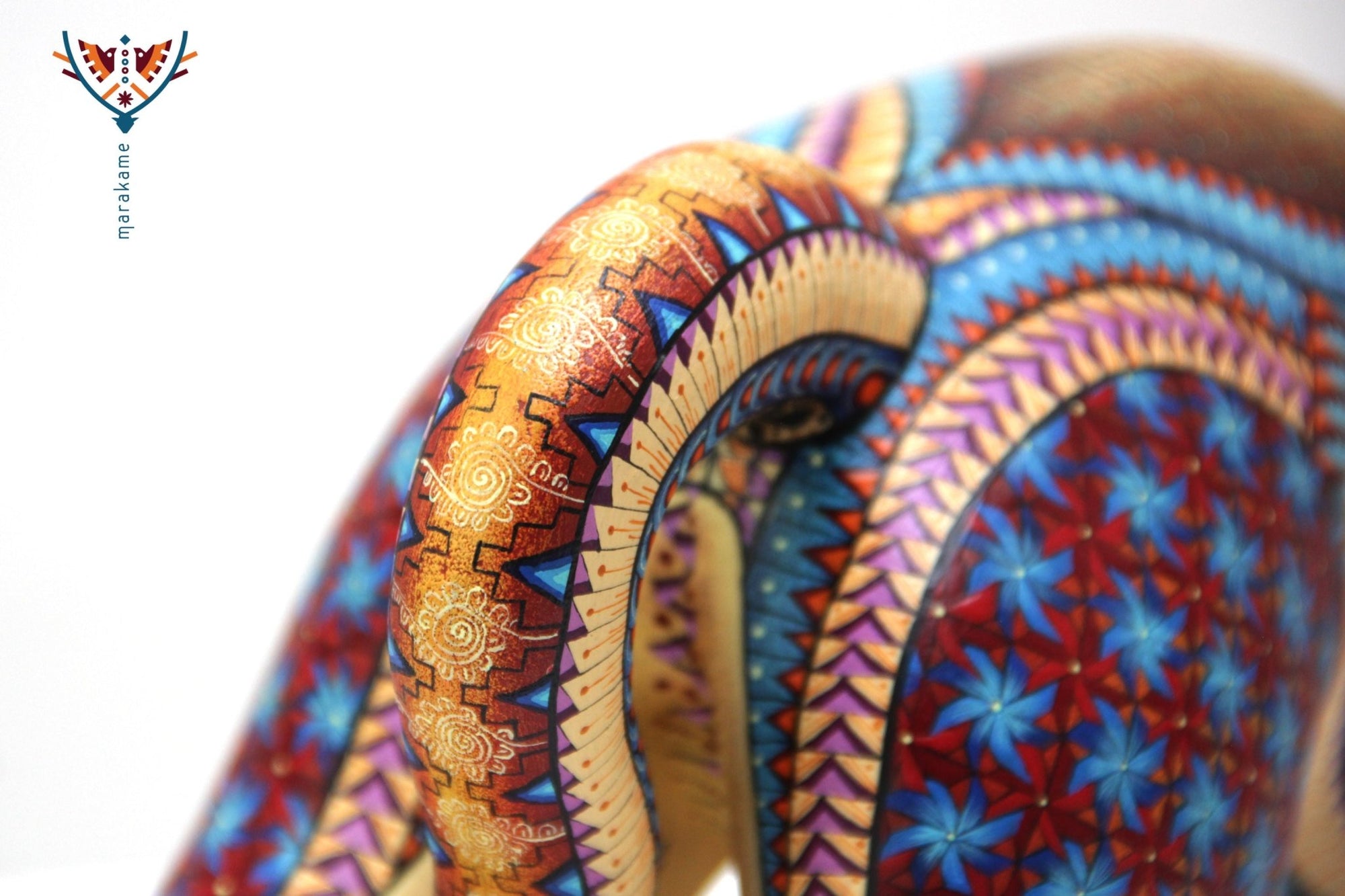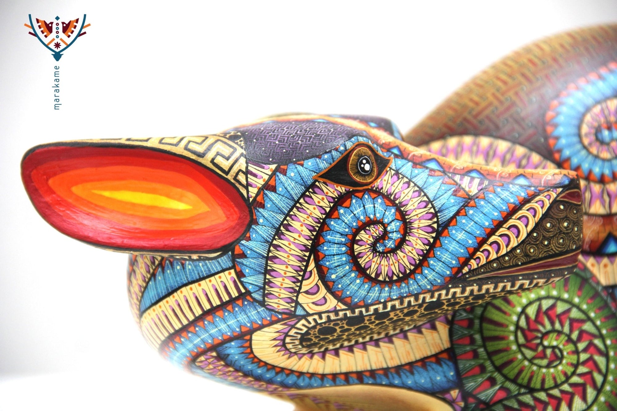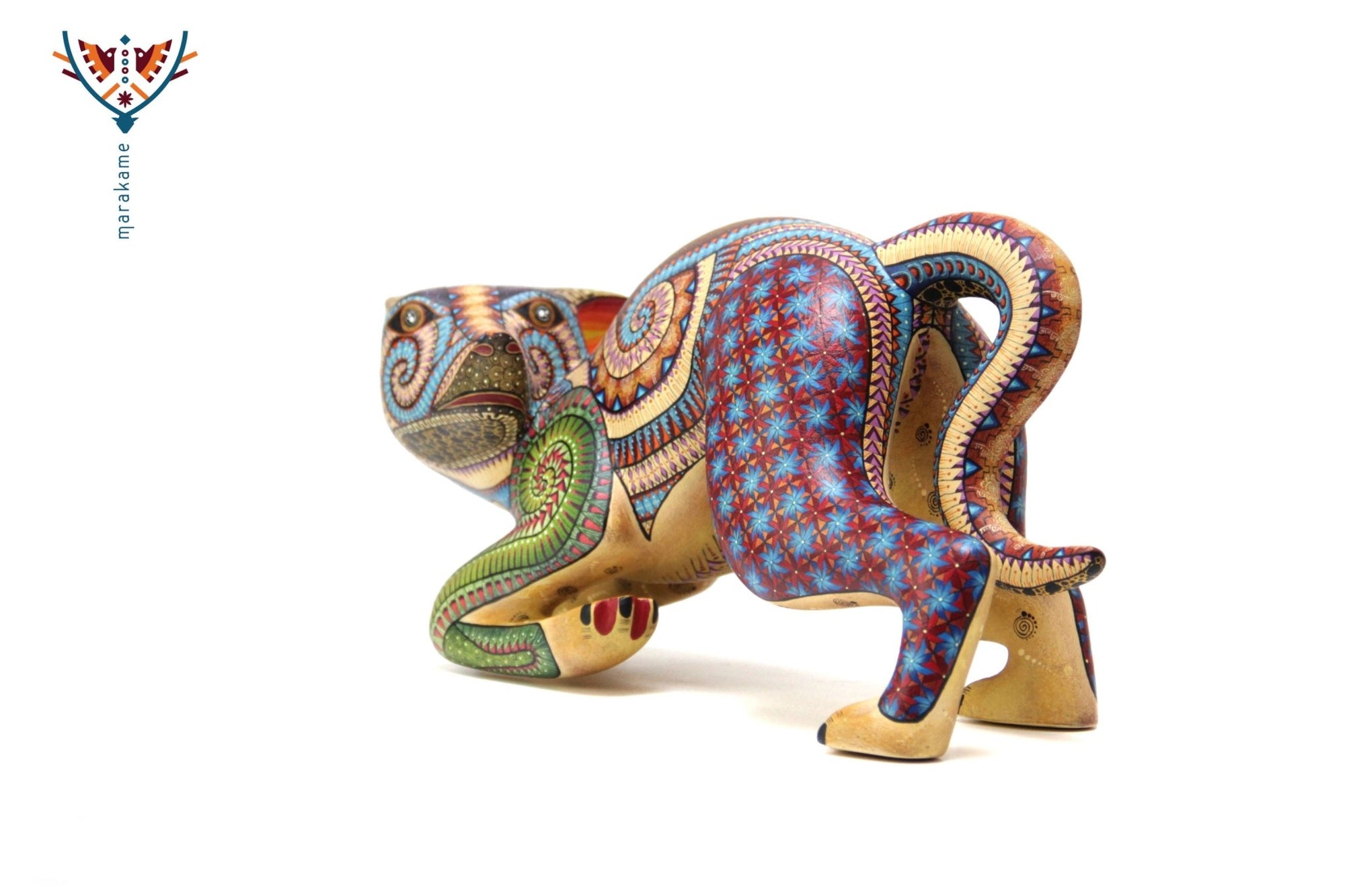• ◇ Técnica: Pintado a mano sobre talla de madera de copal (Bursera spp.).