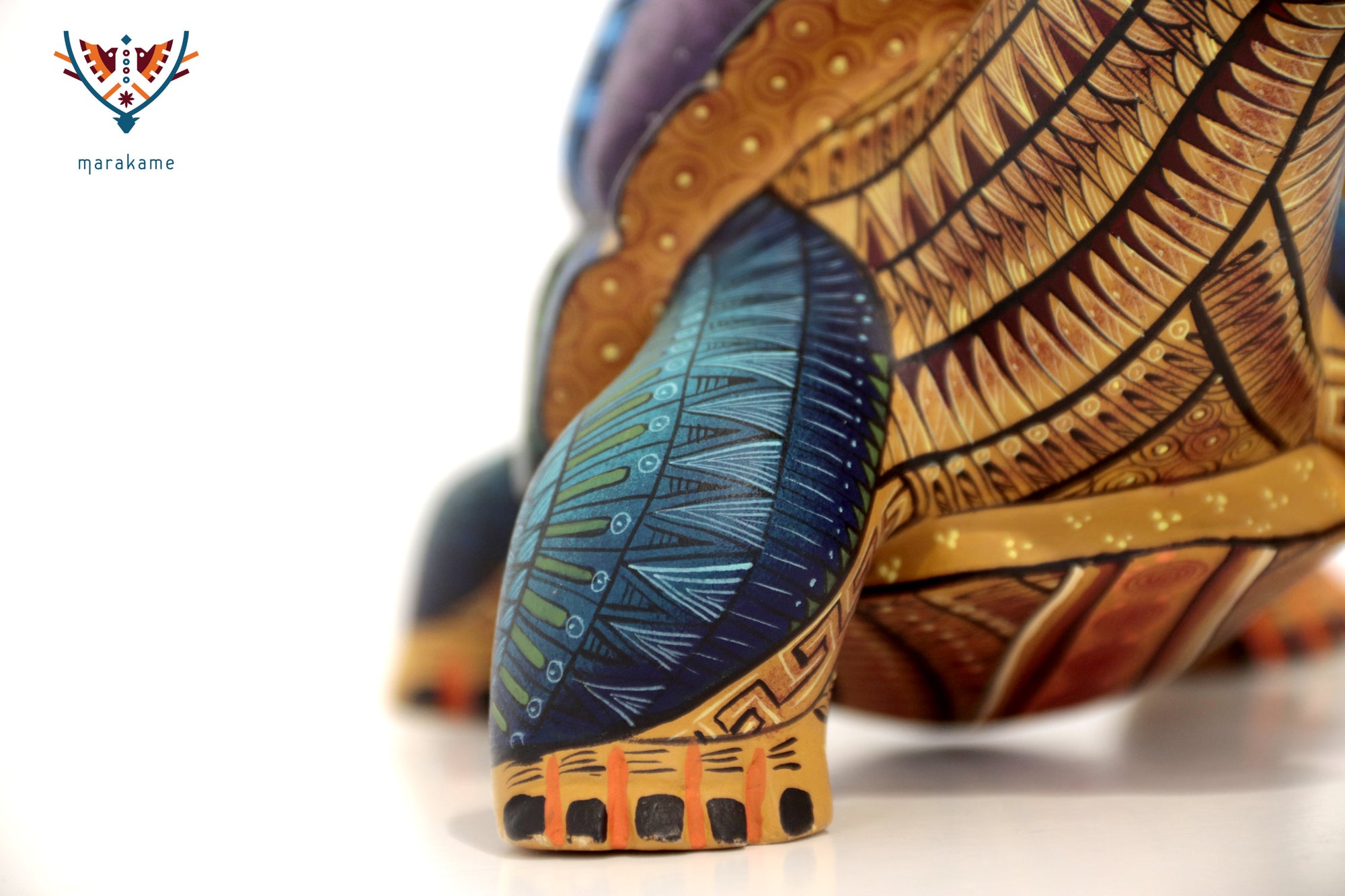 • ◇ Técnica: Pintado a mano sobre talla de madera de copal (Bursera spp.).