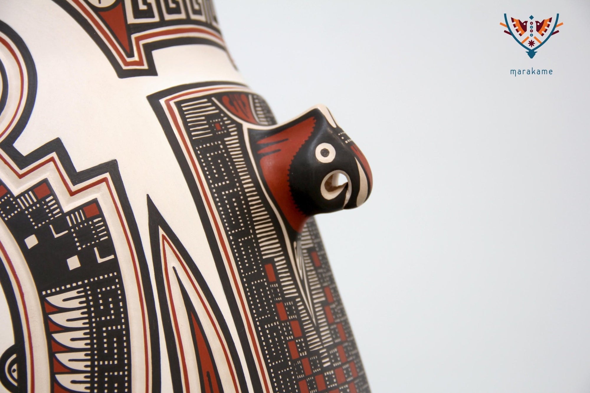 • Jesús Octavio Silveira (Mata Ortiz, 1977) aprendió de su madre y padre el oficio de la alfarería, destacando muy pronto por su dedicación, alta calidad, y por la integración en sus piezas de los estilos Quezada y Porvenir. Ha sido reconocido en numerosas ocasiones en el Concurso Anual de Cerámica en Mata Ortiz, destacando en la categoría “Premio a la Excelencia” en 2019. A través de la Casa de las Artesanías, fue comisionado por el Gobierno del Estado de Chihuahua para producir una pieza cerámica para el Papa Francisco en su visita a México en 2016, obra que realizó en colaboración con Griselda Ortiz Martínez.
