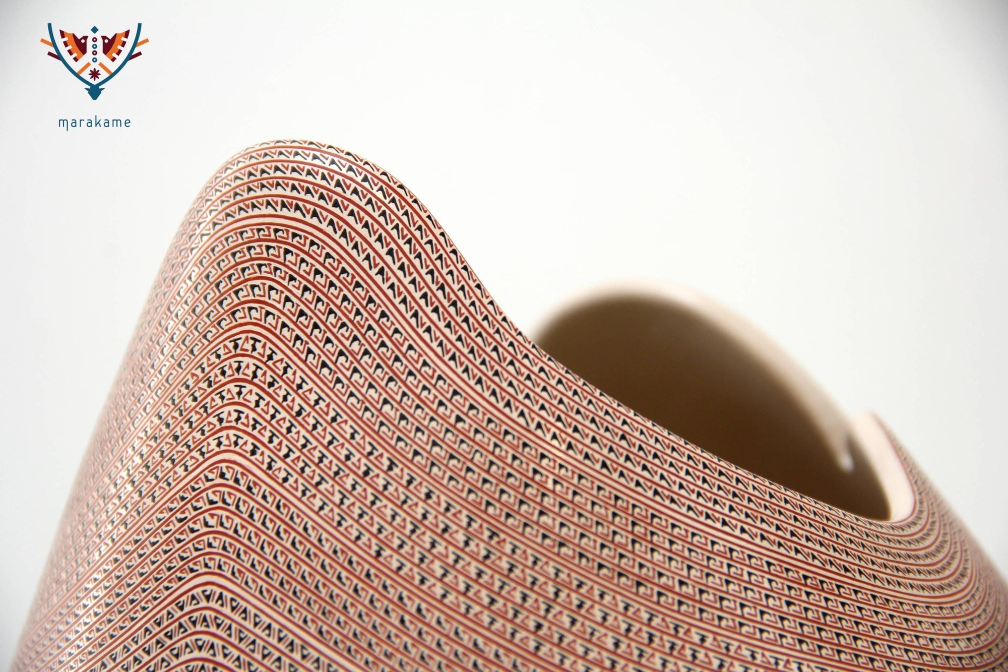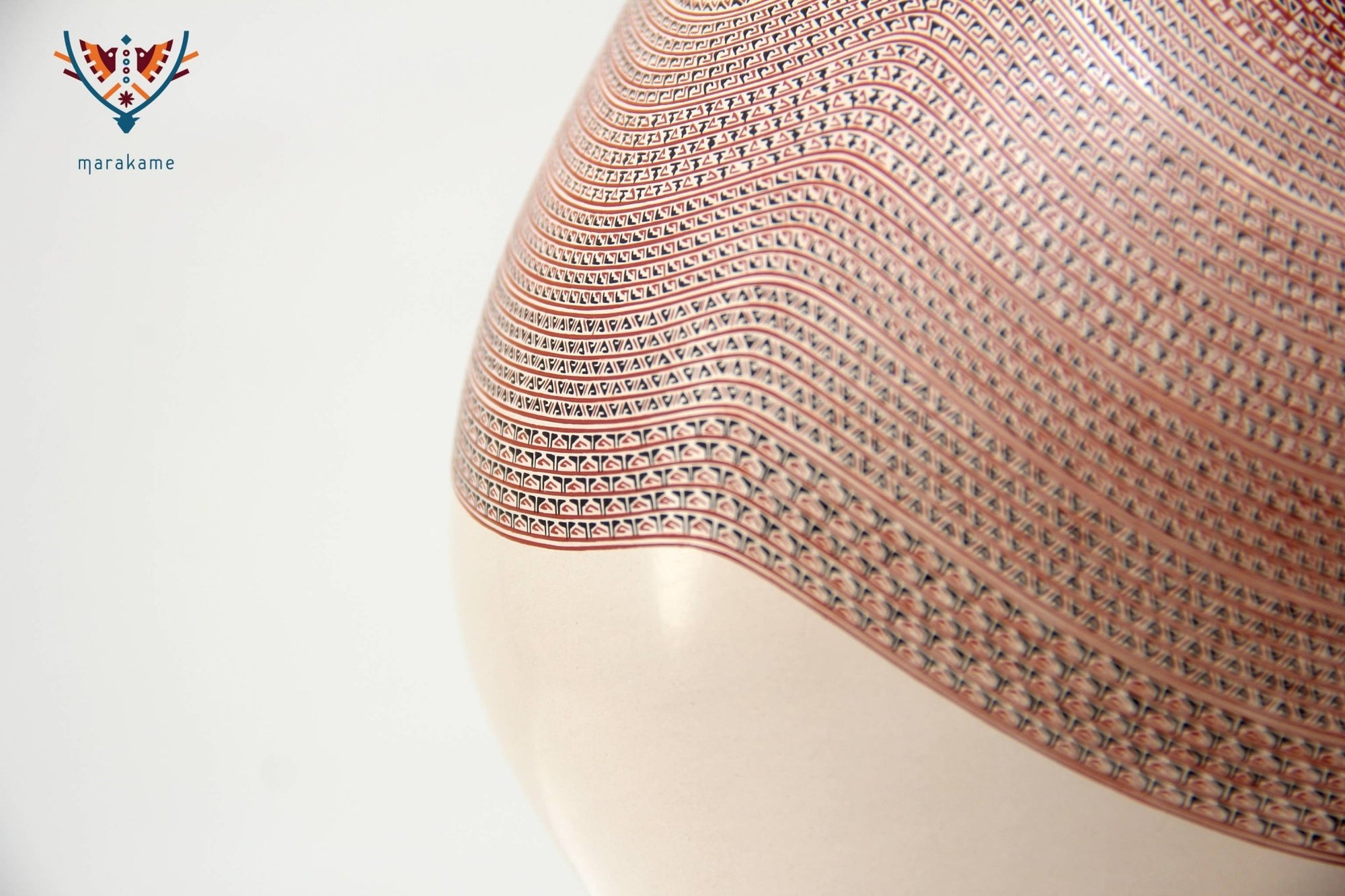 Una pareja de guacamayas permanecerá junta para toda la vida, se trata de una especie de ave que tiene un comportamiento conservador en sus vínculos. El patrón pictórico rodea la caprichosa boca de la olla y el medallón que le adorna, adaptándose y enriqueciendo la superficie de esta pieza ligera y firme. Sus valores son el amor y el cuidado.