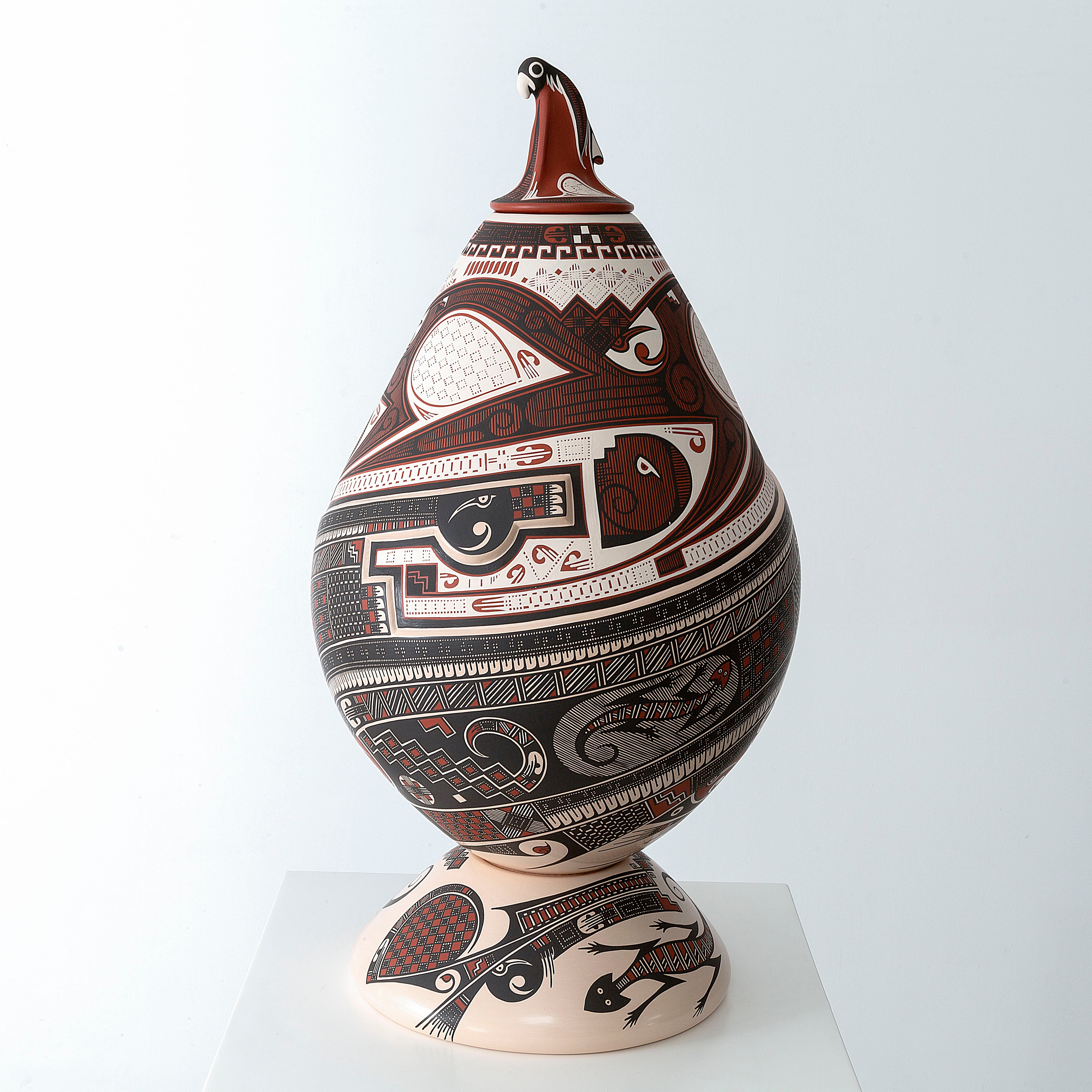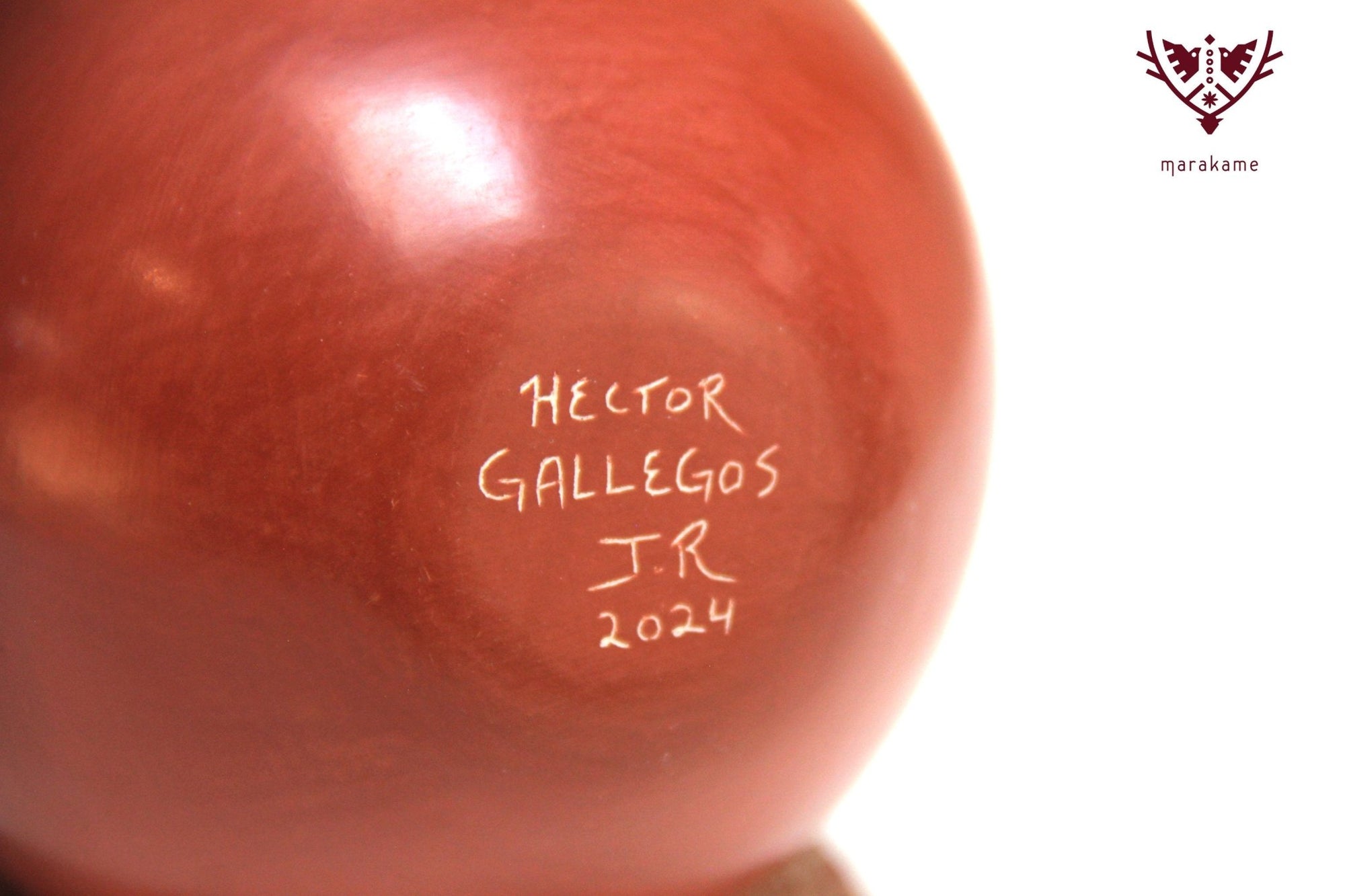 • Héctor Gallegos Martínez (Chihuahua capital, 1981) es heredero de una tradición cerámica familiar muy reconocida. En el empeño por desarrollar un camino propio, abandonó la pintura por patrones geométricos para experimentar con un lenguaje de temática animal. Domina todos los procesos de manufactura cerámica. Frecuentemente realiza obras colaborativas con Laura Burgarini. Juntos promueven la tradición contemporánea en Mata Ortiz a nivel nacional e internacional.