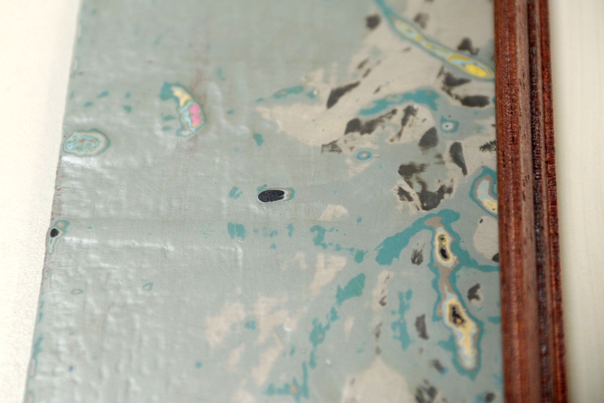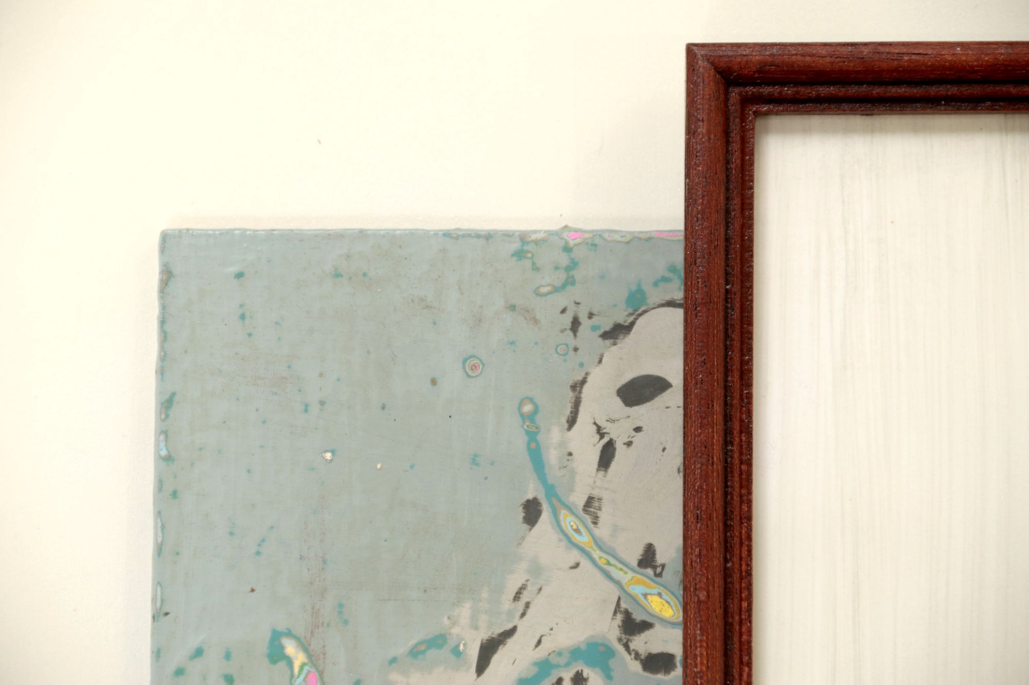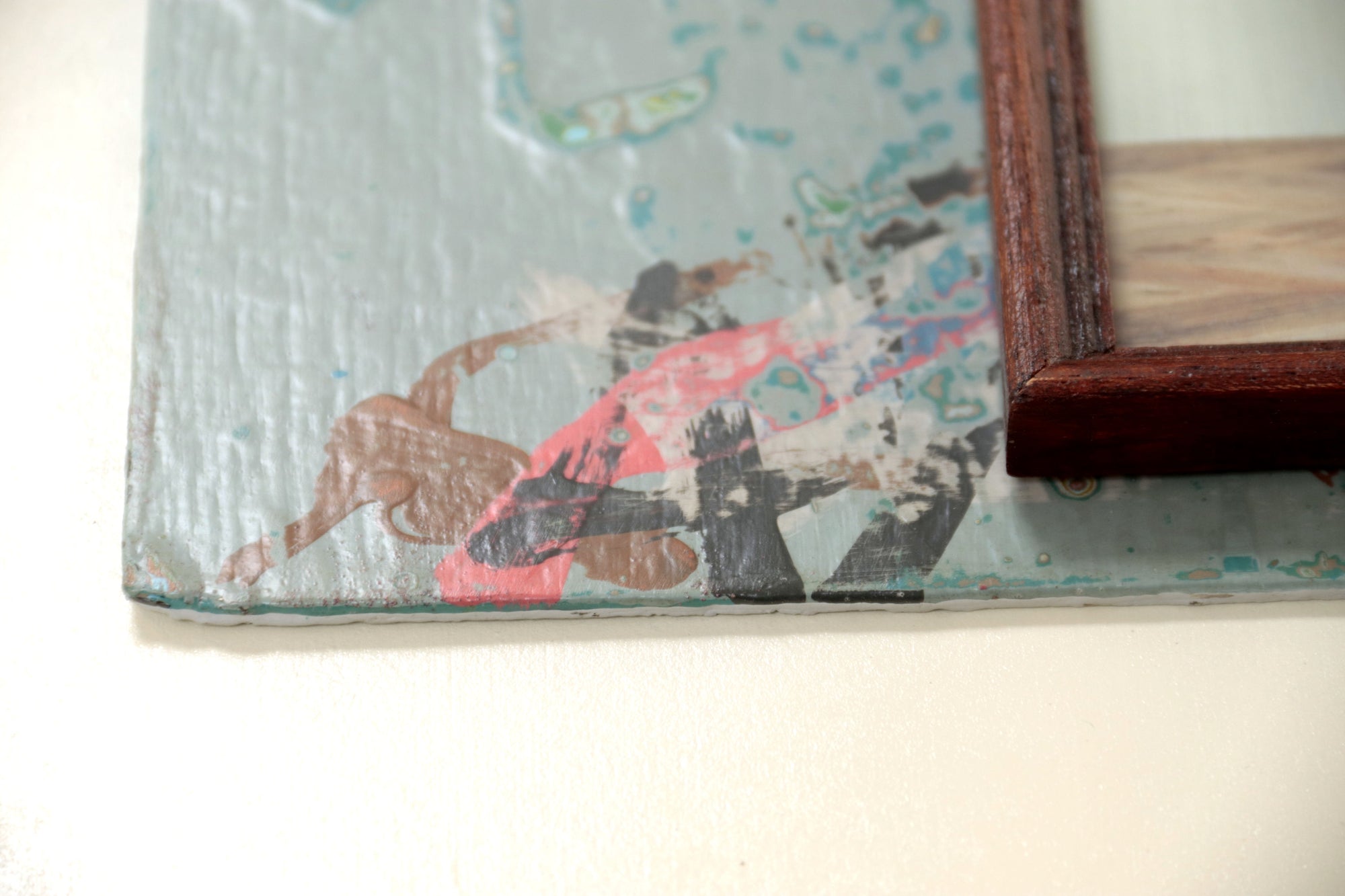 Material: Pinturas acrílicas sobre tabla, fotografías y marco de madera.