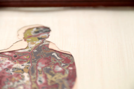 El cuerpo se convierte en una superficie donde el color sustituye la piel y revela la materia emocional del ser. Las capas pictóricas, entrelazadas con la fotografía, construyen un diálogo entre lo visible y lo interno: lo que el ojo percibe y lo que el alma contiene. En esta obra, la figura se disuelve en su propio entorno, recordando que toda identidad es una síntesis de huellas, memorias y silencios.