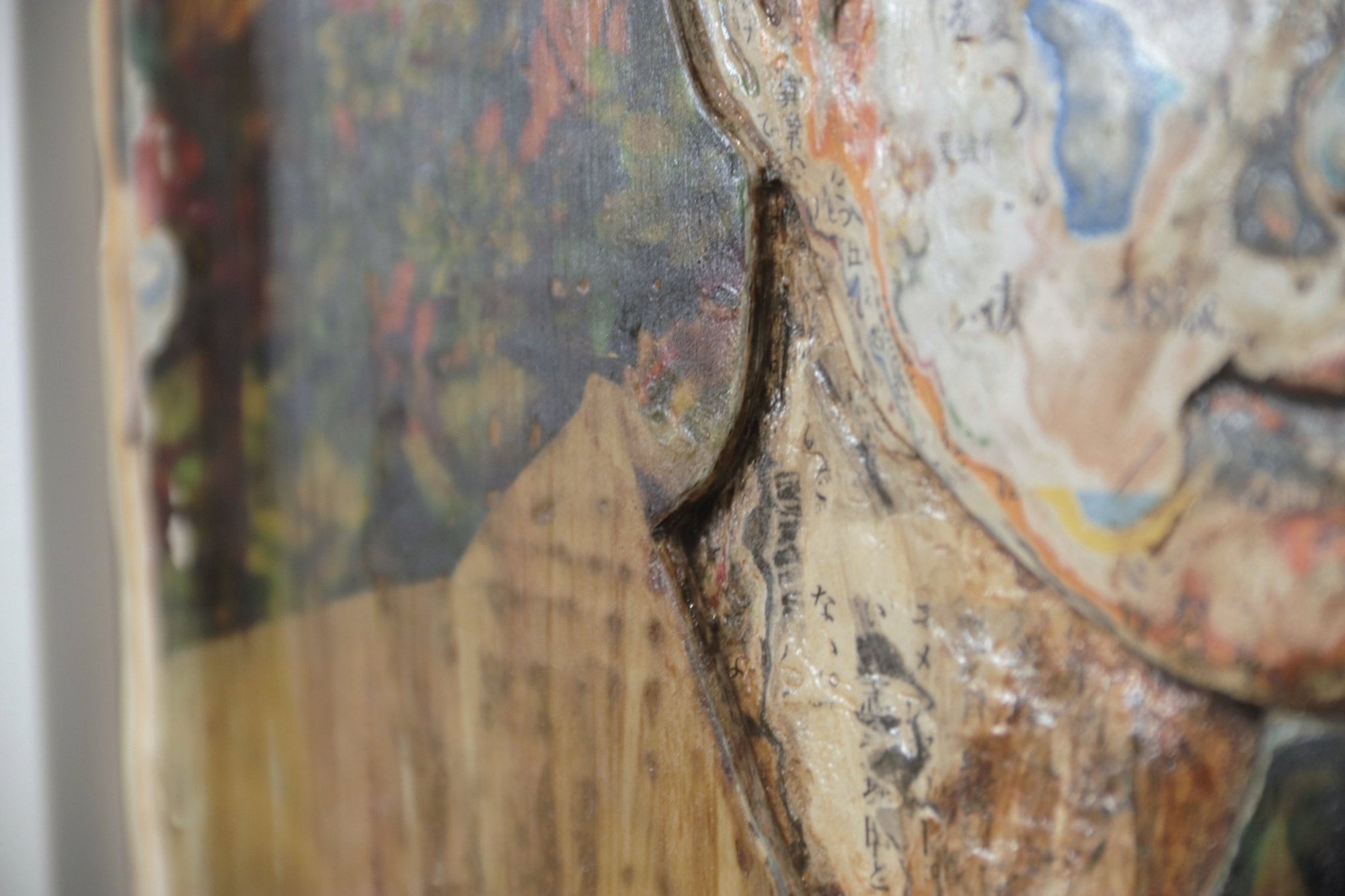 El acabado en resina transparente no solo protege la obra, sino que agrega una profundidad visual única, creando una sensación de capas que invitan al espectador a descubrir significados ocultos. La elección de Hoshino como figura central puede interpretarse como una reflexión sobre la identidad y la imagen pública en la sociedad moderna japonesa. La obra, al emplear materiales cotidianos como páginas de revistas, también cuestiona la efimeridad de la fama y el consumo cultural, mientras que la resina encapsula este momento fugaz, preservándolo como algo atemporal.