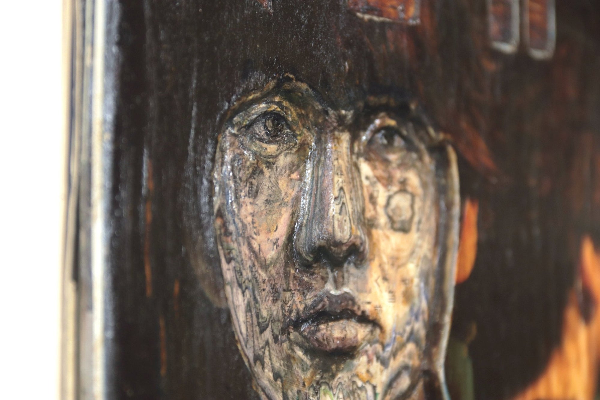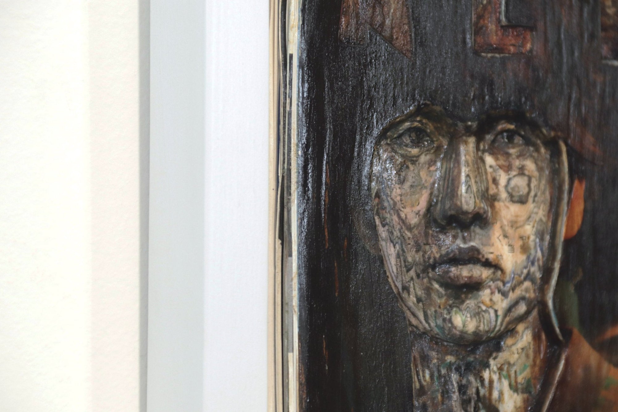 Material: Revista, pegamento, óleo y laca japonesa.