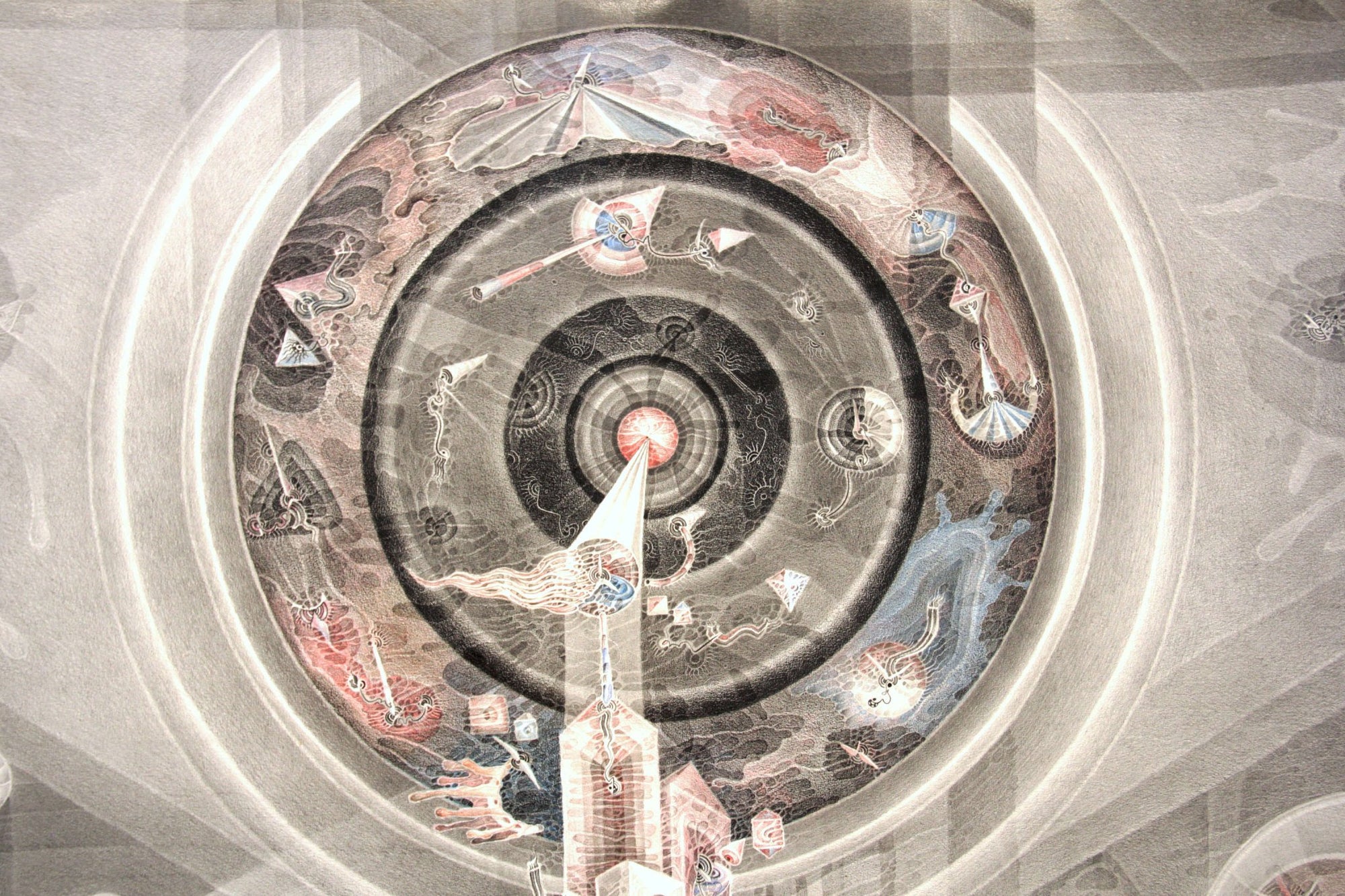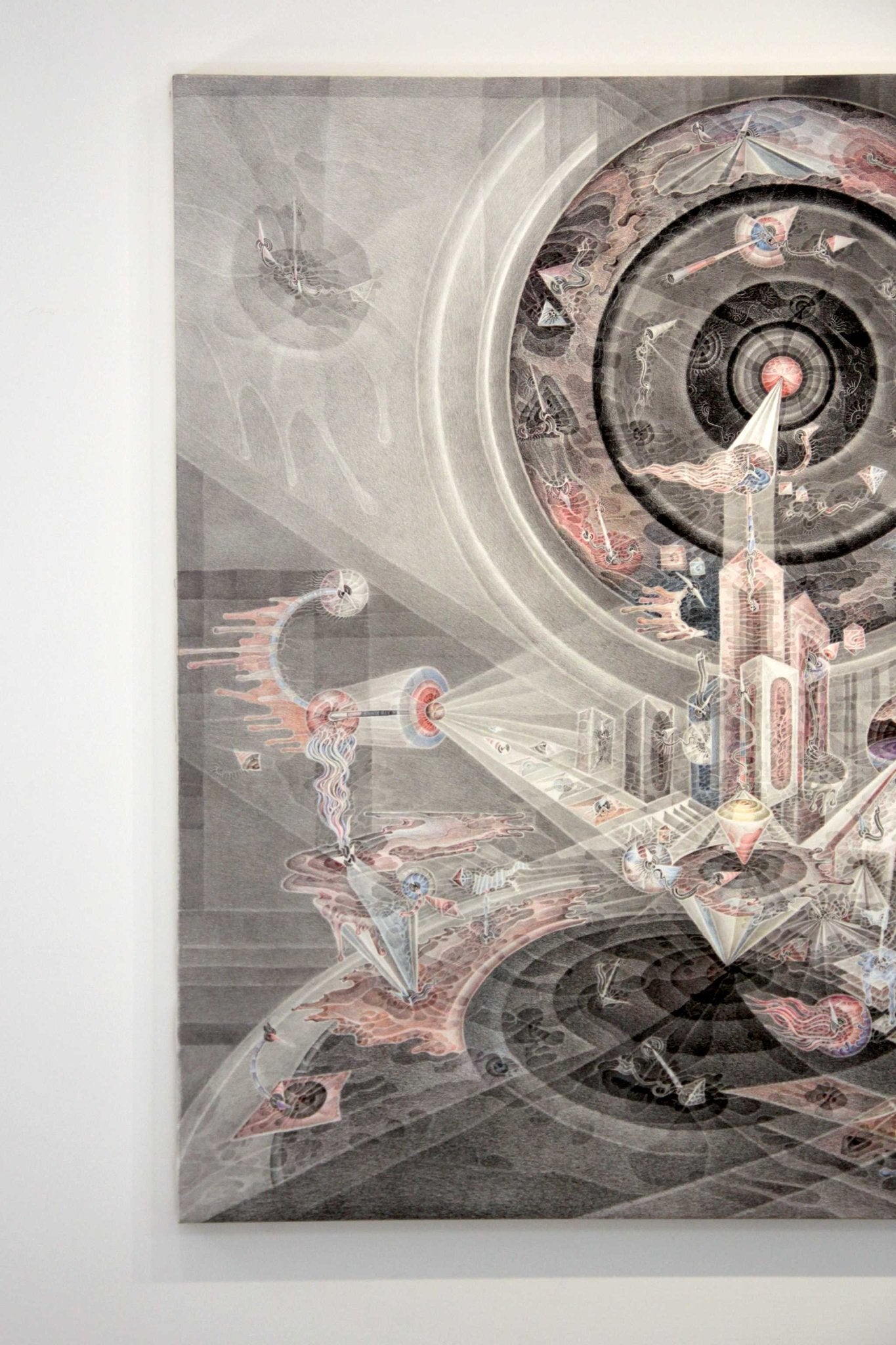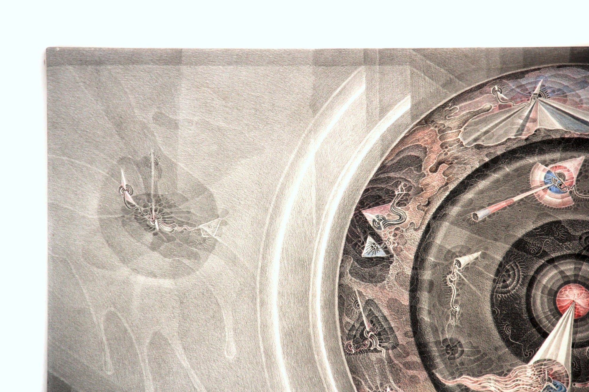 El trabajo de Wirantawan, aunque moderno, resuena con la perspectiva filosófica hindú balinesa y se caracteriza por la geometría sagrada, donde líneas armoniosas crean símbolos que impactan en el subconsciente. Los círculos, representando la perfección de la naturaleza, son recurrentes en su obra, reflejando patrones cíclicos de la vida. Su arte contrasta dualidades de luz y oscuridad, creando profundidad y dimensión en formas surrealistas.