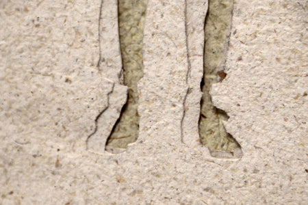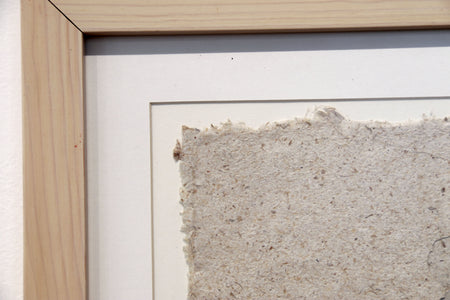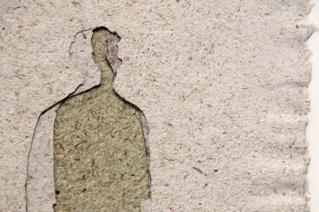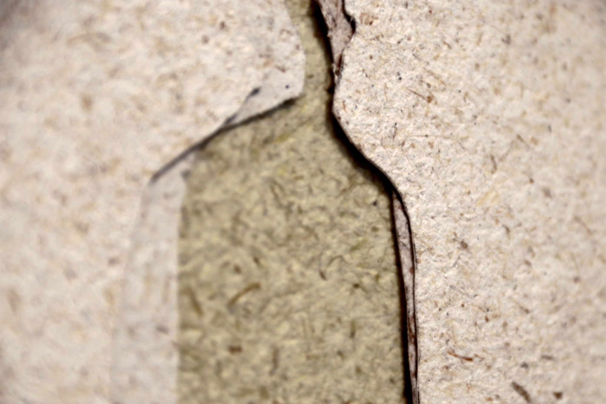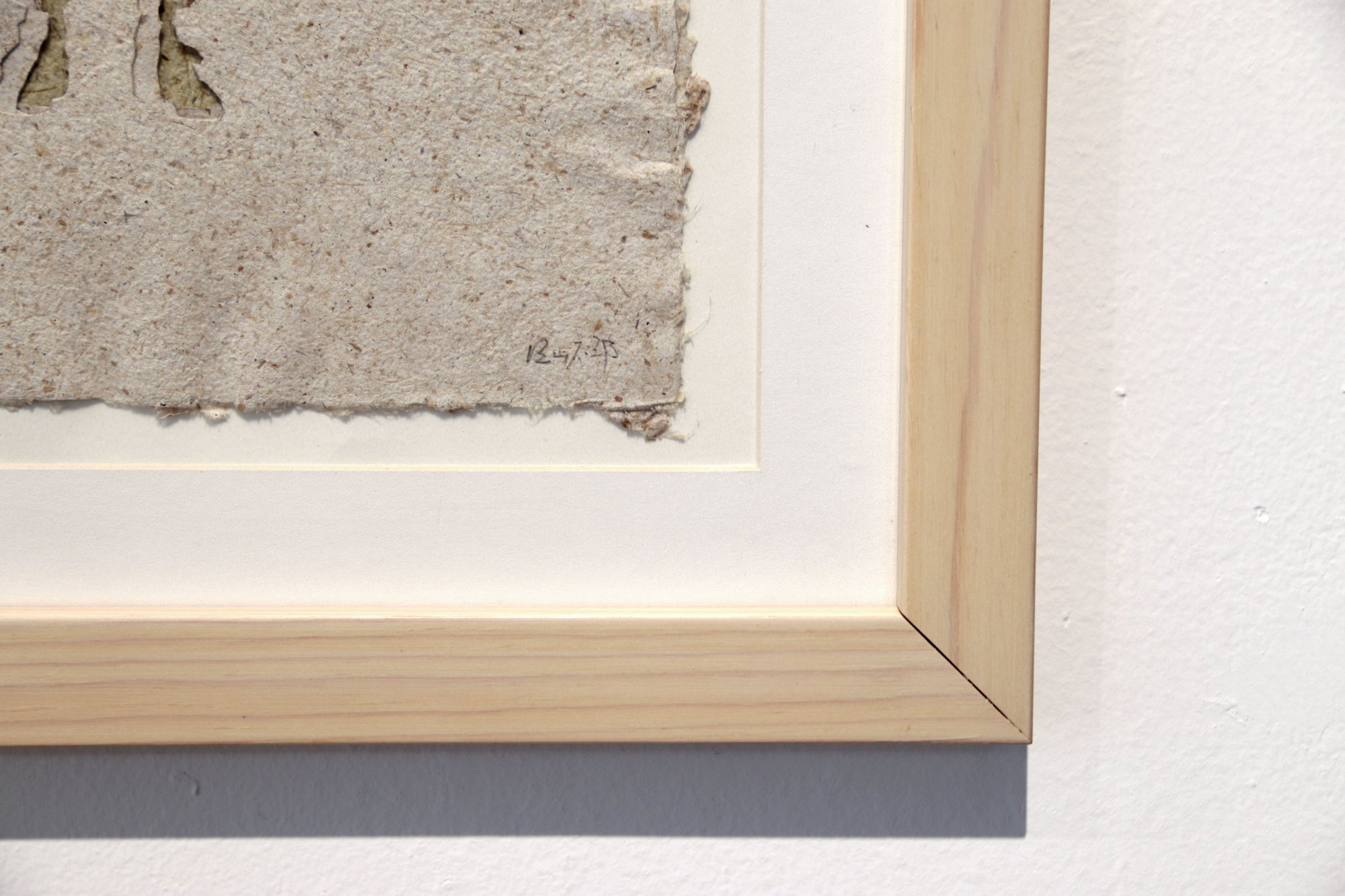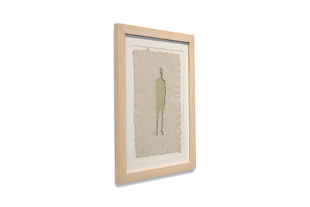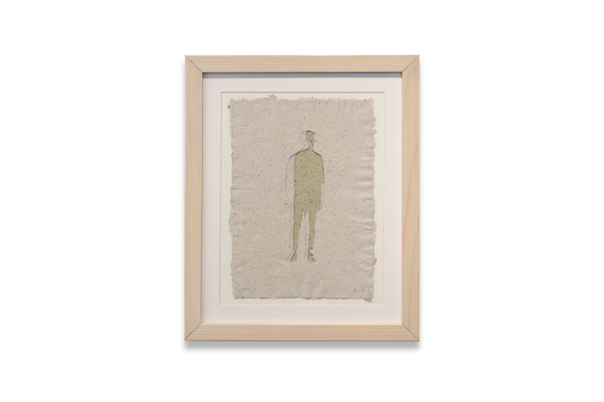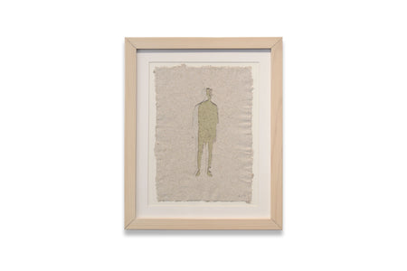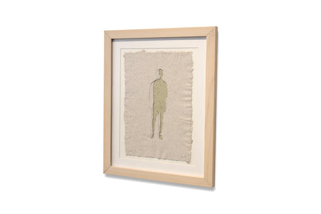 La figura emerge apenas perceptible desde la textura orgánica del papel, como si el ser estuviera hecho de la misma materia efímera que lo sostiene. En esta obra, la identidad se confunde con la superficie, y lo humano se vuelve parte del ciclo natural. La silueta se insinúa entre fibras de lirio, recordando que toda presencia es también una huella del tiempo, una sombra suspendida entre la existencia y su disolución.