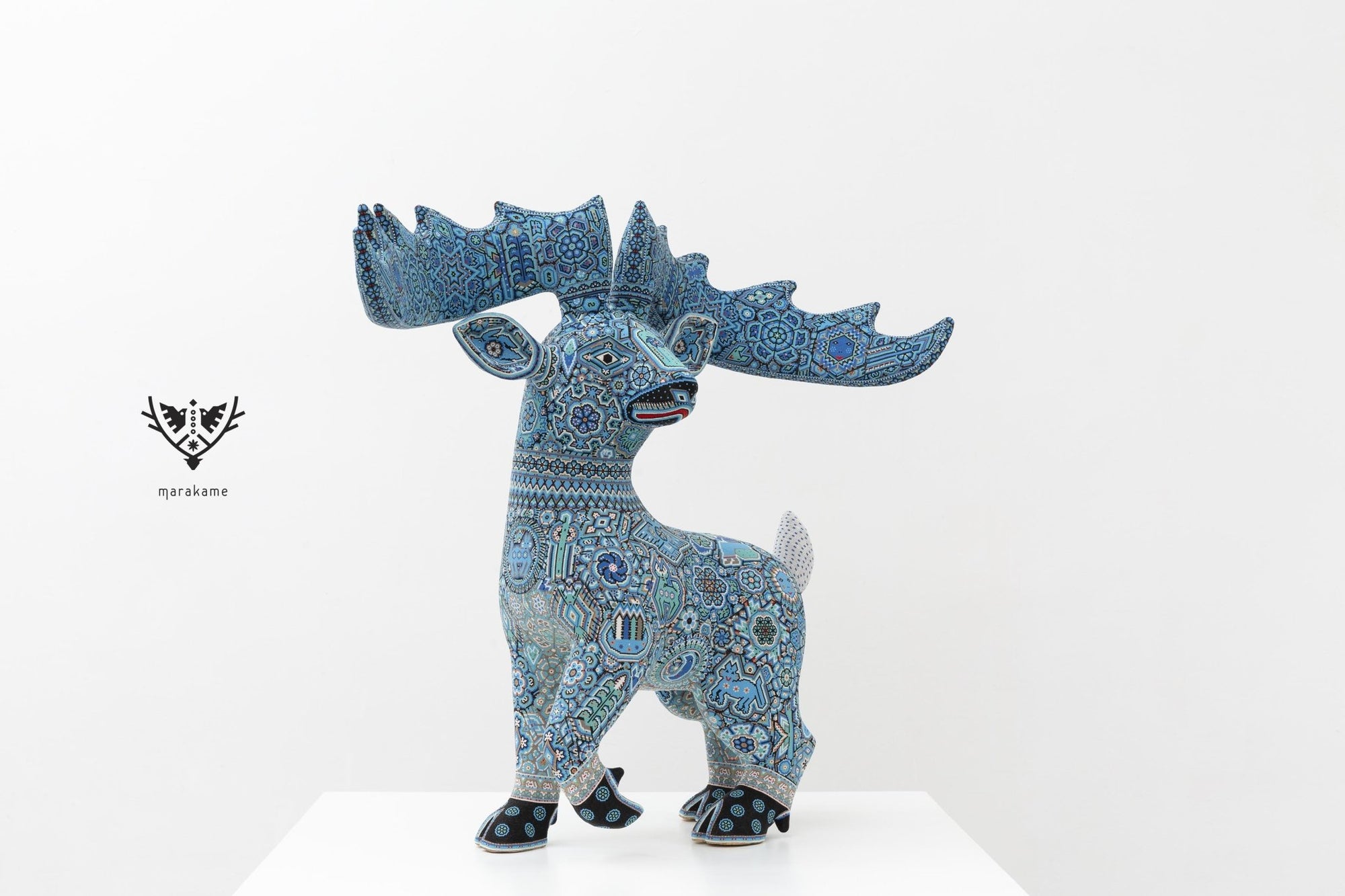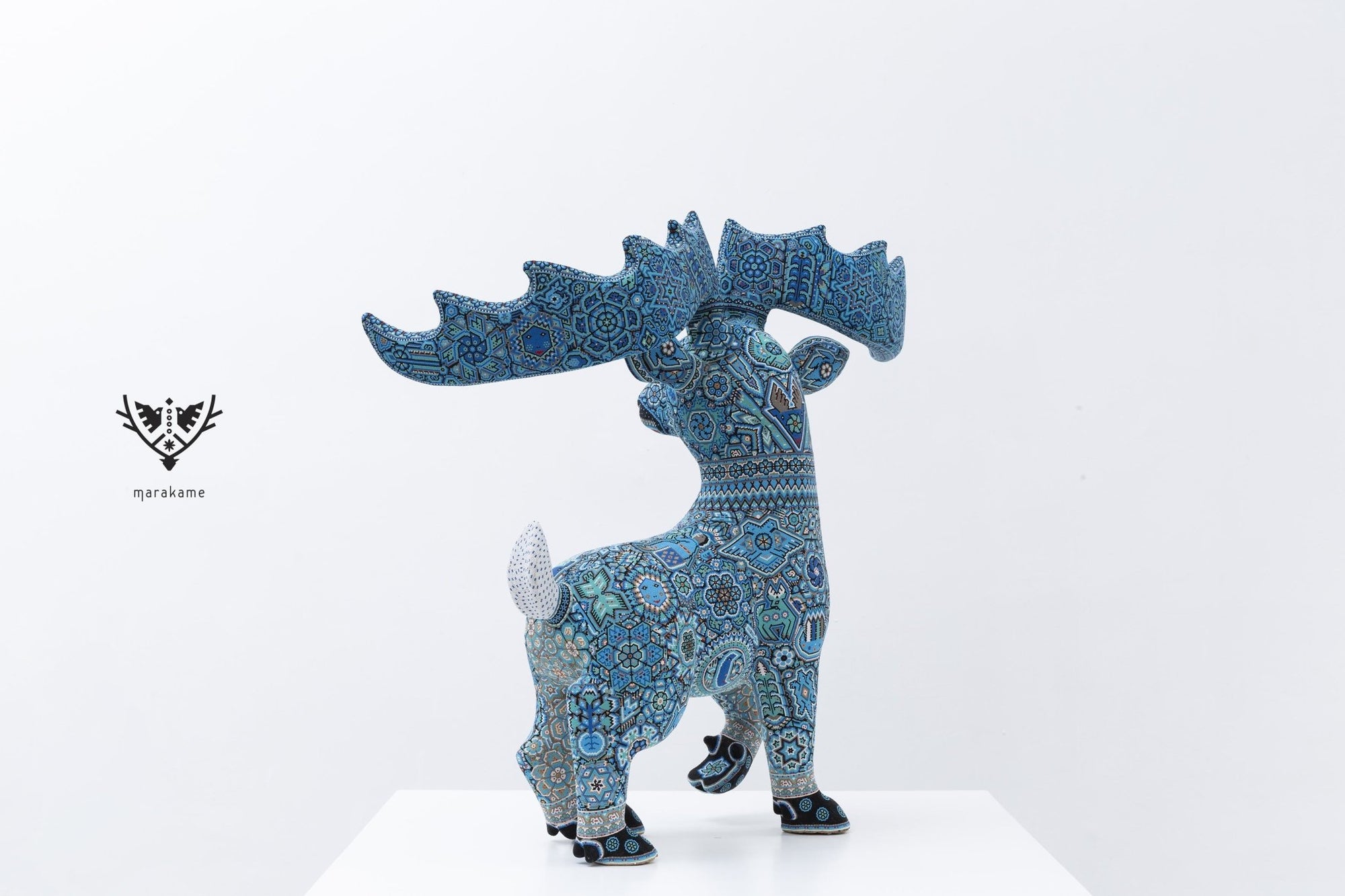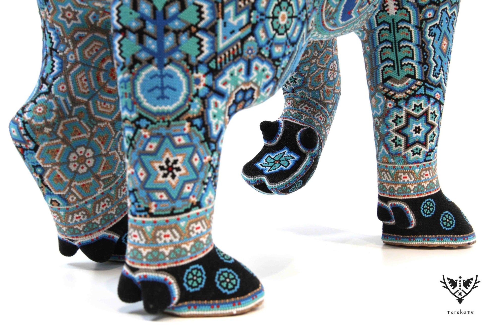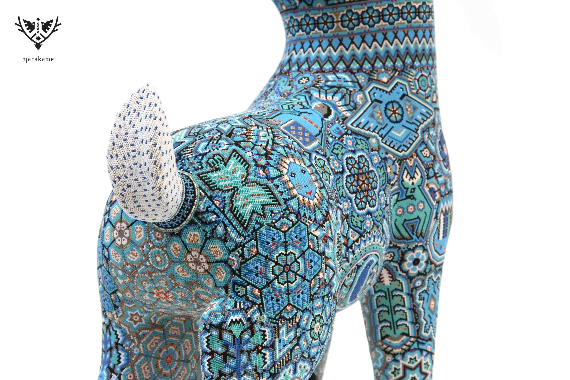 Marakame innova e integra las habilidades de los artistas Zapotecas, fusionando las piezas logradas por ellos con la destreza visual y manual de los Wixárika al pegar chaquiras de tamaño diminuto una a una (más de 250 mil cristales en esta pieza) durante períodos que van de entre 15 y 300 días.