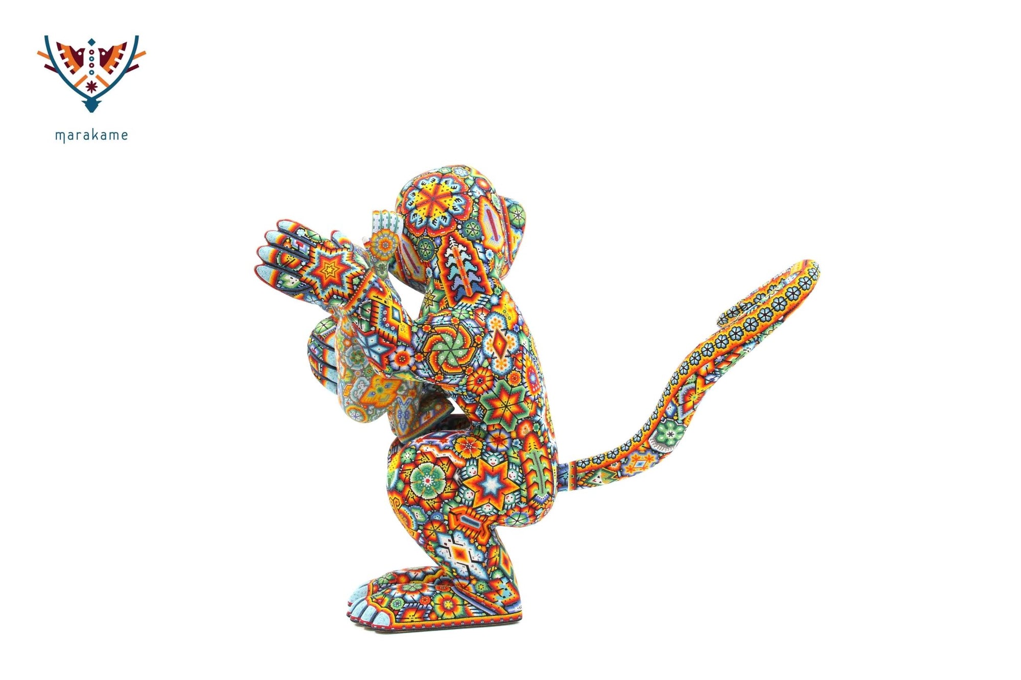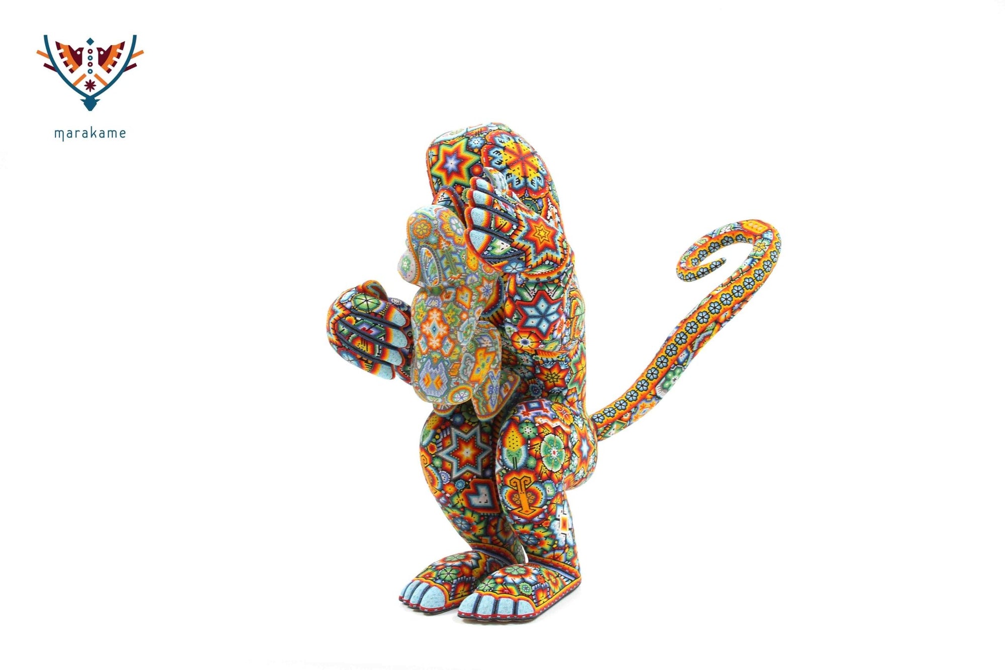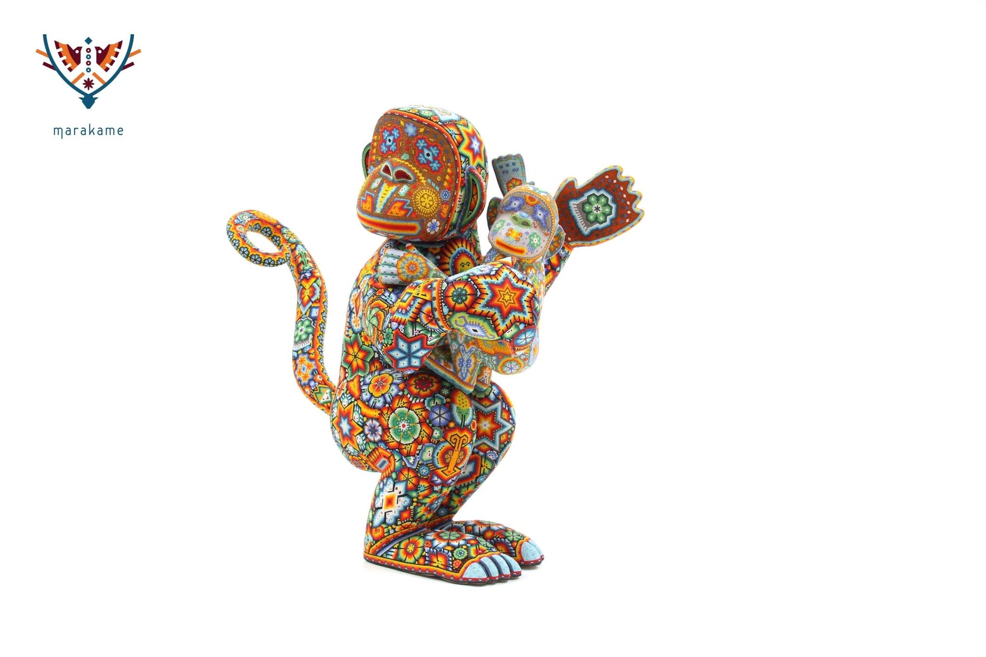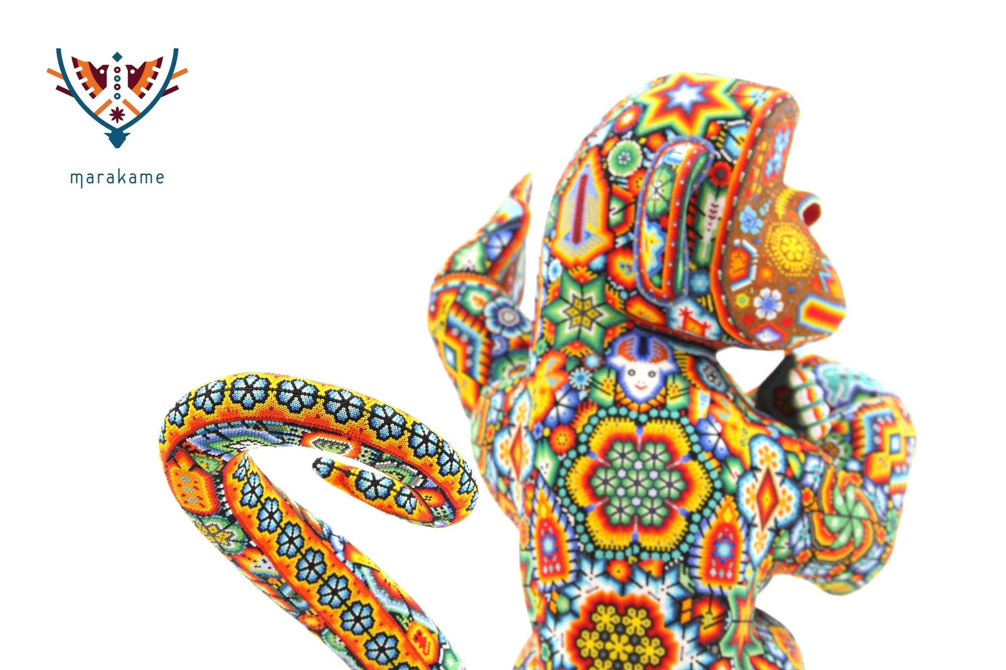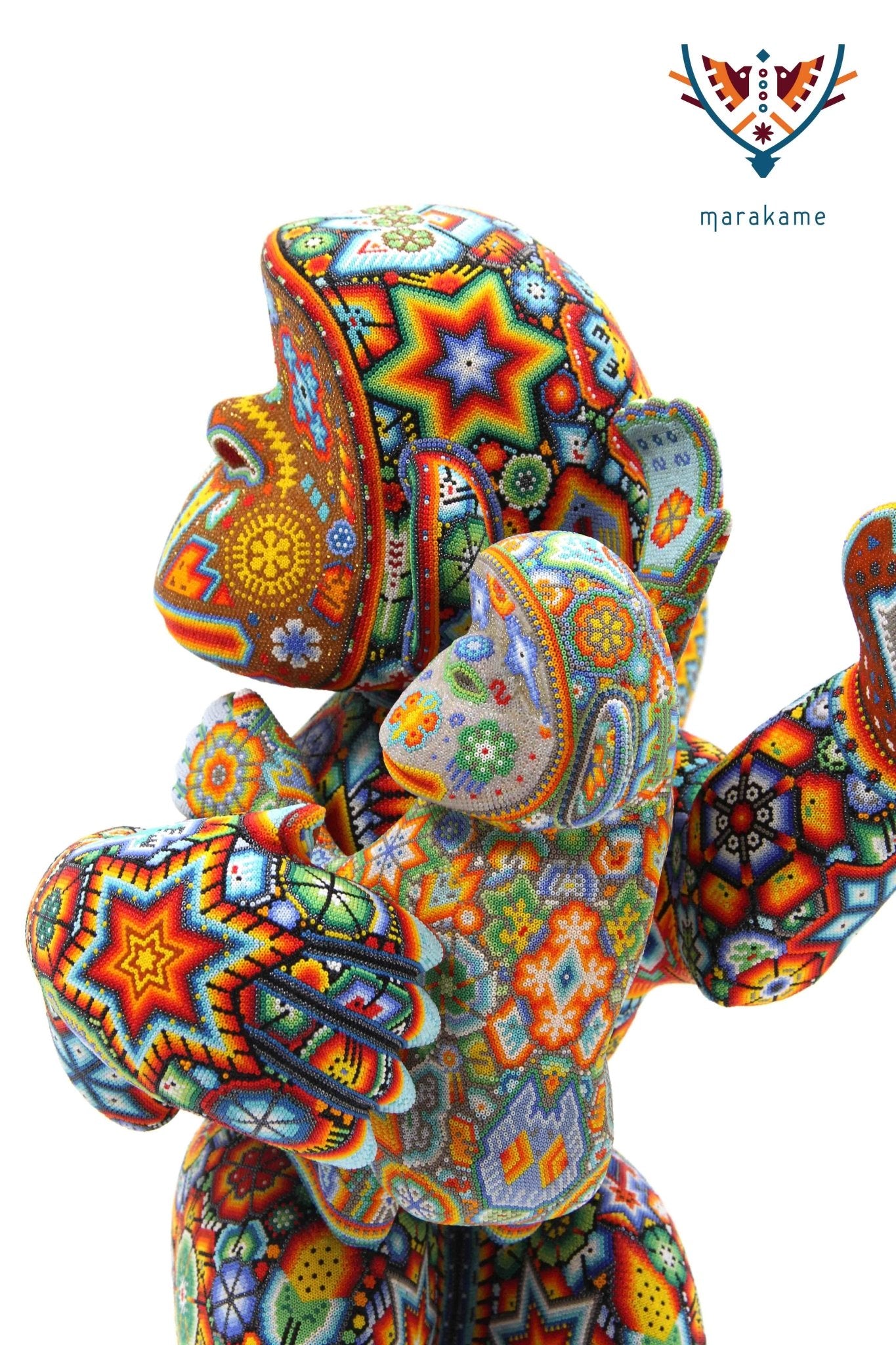 Marakame innova e integra las habilidades de los artistas Zapotecas, fusionando las piezas logradas por ellos con la destreza visual y manual de los Wixárika al pegar chaquiras de tamaño diminuto una a una, desde 20 mil hasta más de 500 mil (más de 200 mil en esta pieza), durante períodos que van de entre 15 y 300 días.