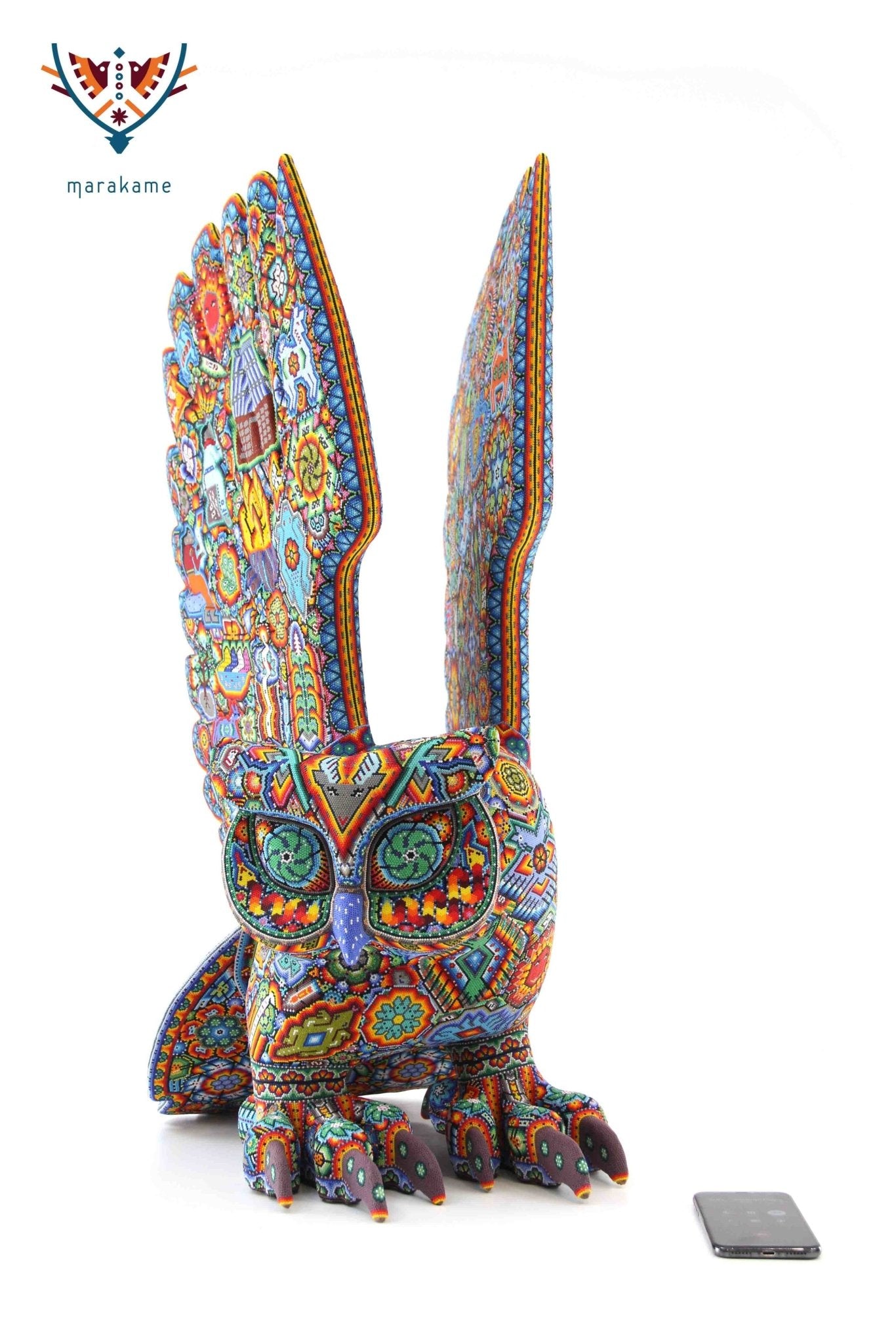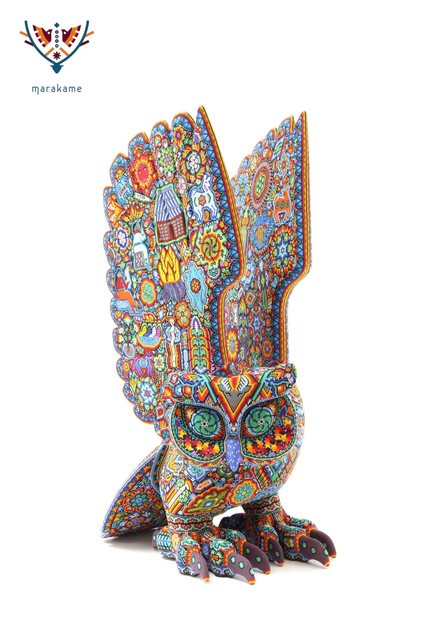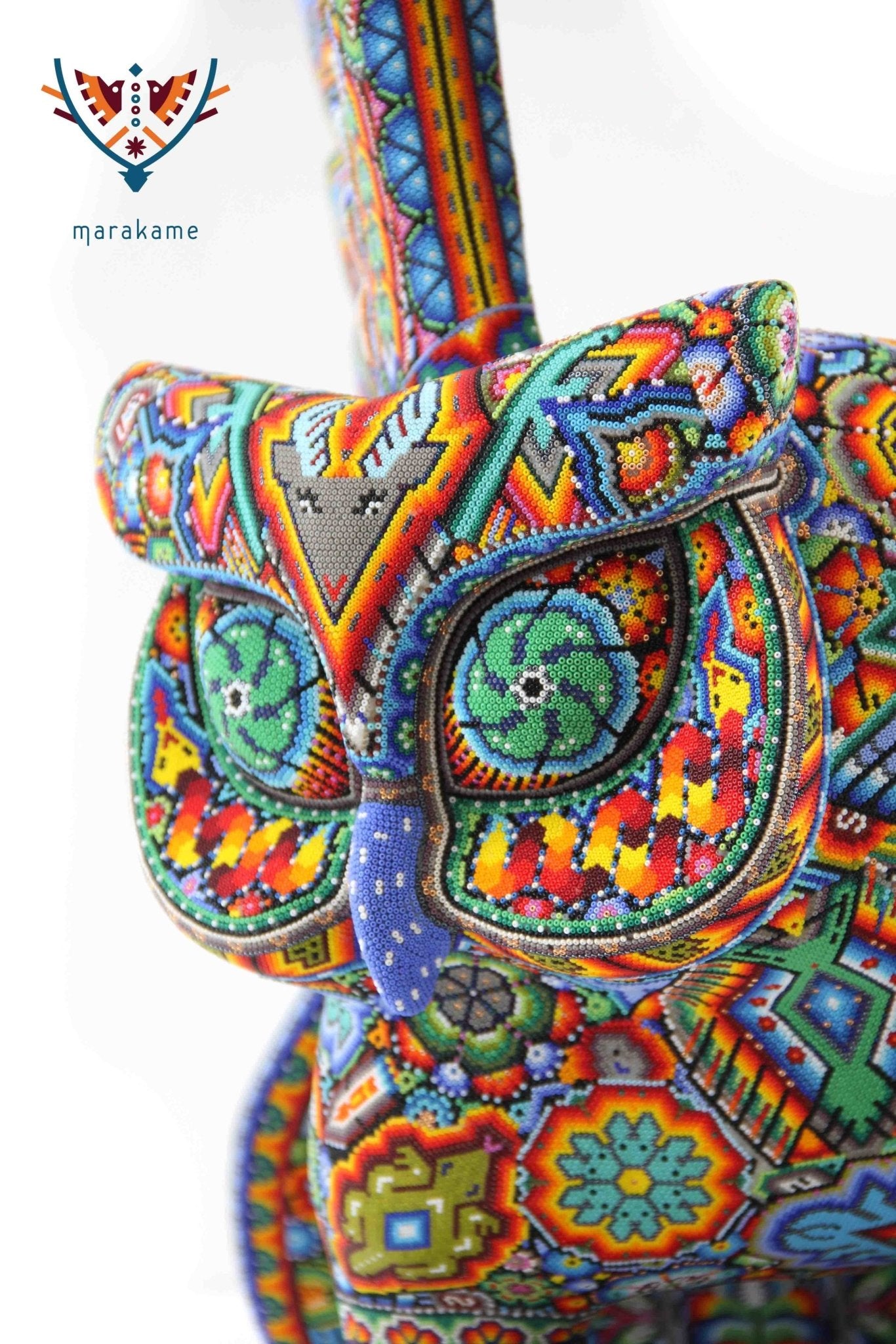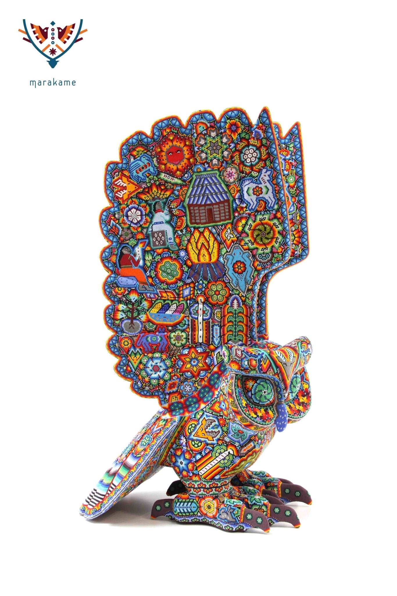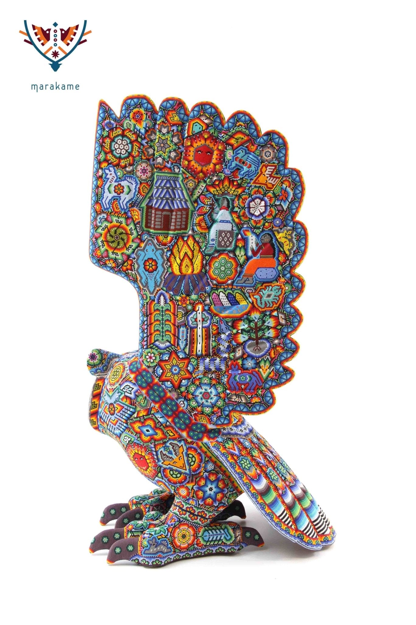 Marakame innova e integra las habilidades de los artistas Zapotecas, fusionando las piezas logradas por ellos con la destreza visual y manual de los Wixárika al pegar chaquiras de tamaño diminuto una a una (entre 25 mil y 40 mil chaquiras por pieza) durante períodos que van de entre 15 y 300 días.