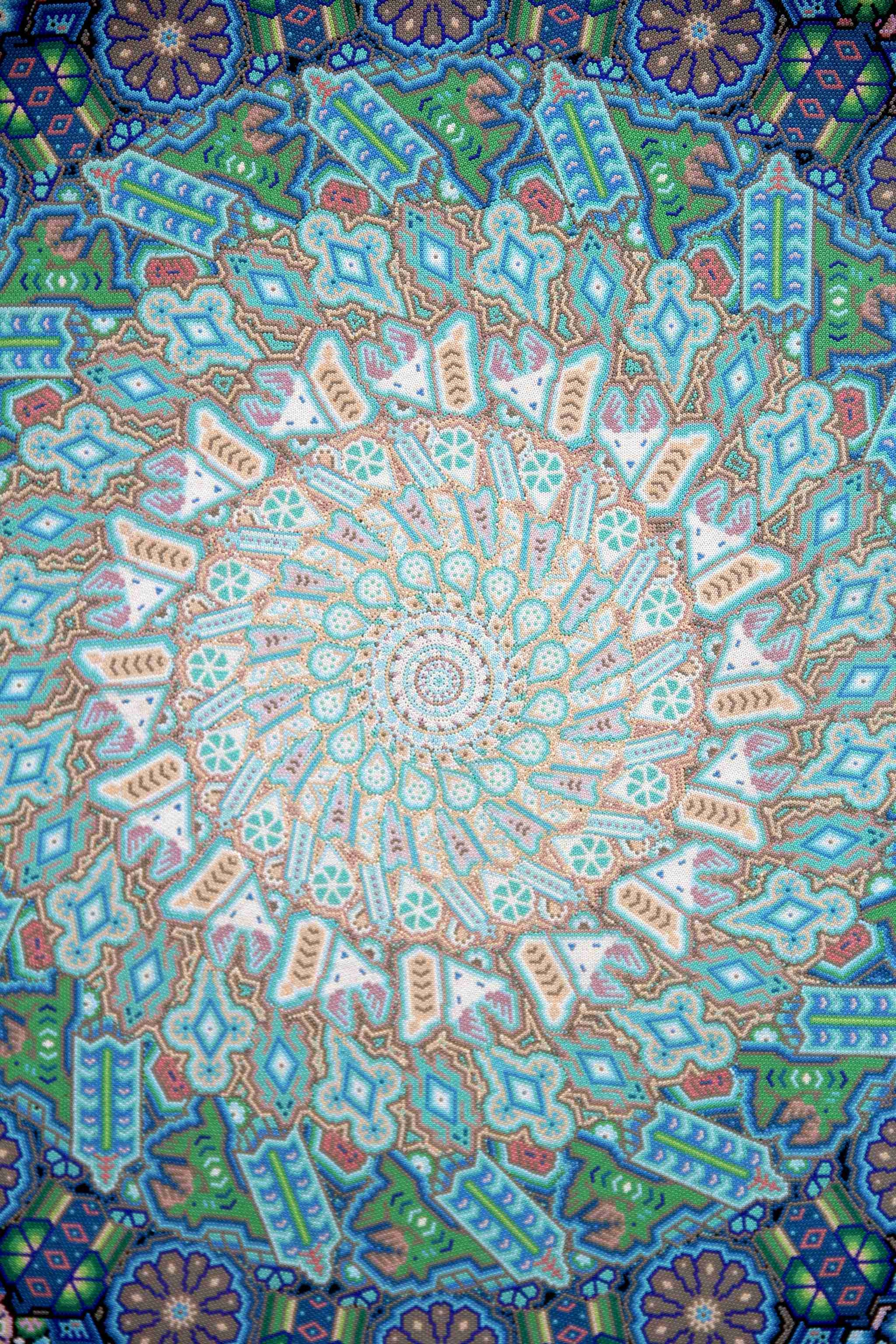 Esta obra maestra del artista visionario wixárika Luis de la Crúz Lopéz de la comunidad de Tatéi-kie, sierra madre occidental mexicana, narra a través de los remolinos de Haramara -lugar sagrado ubicado en el mar, San Blas, Nayarit, México- el nacimiento del la vida, el abuelo fuego, las deidades y varios espiritus y seres representativos de su cosmovisión, según como se los ha enseñado el mismo fuego y el kauyumarie en la practica de su costumbre tradicional con el consumo de peyote -lophophora williamsii-.
