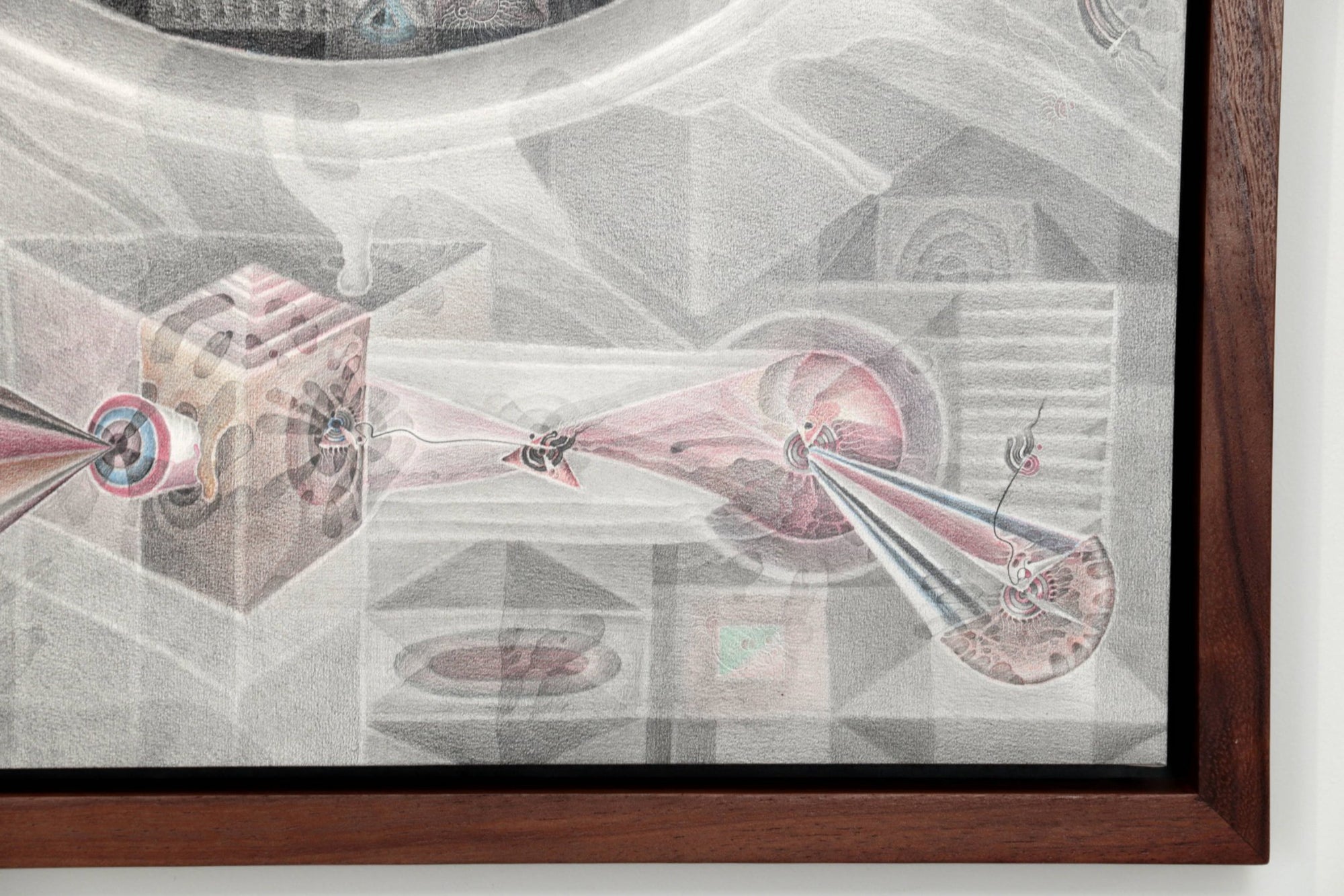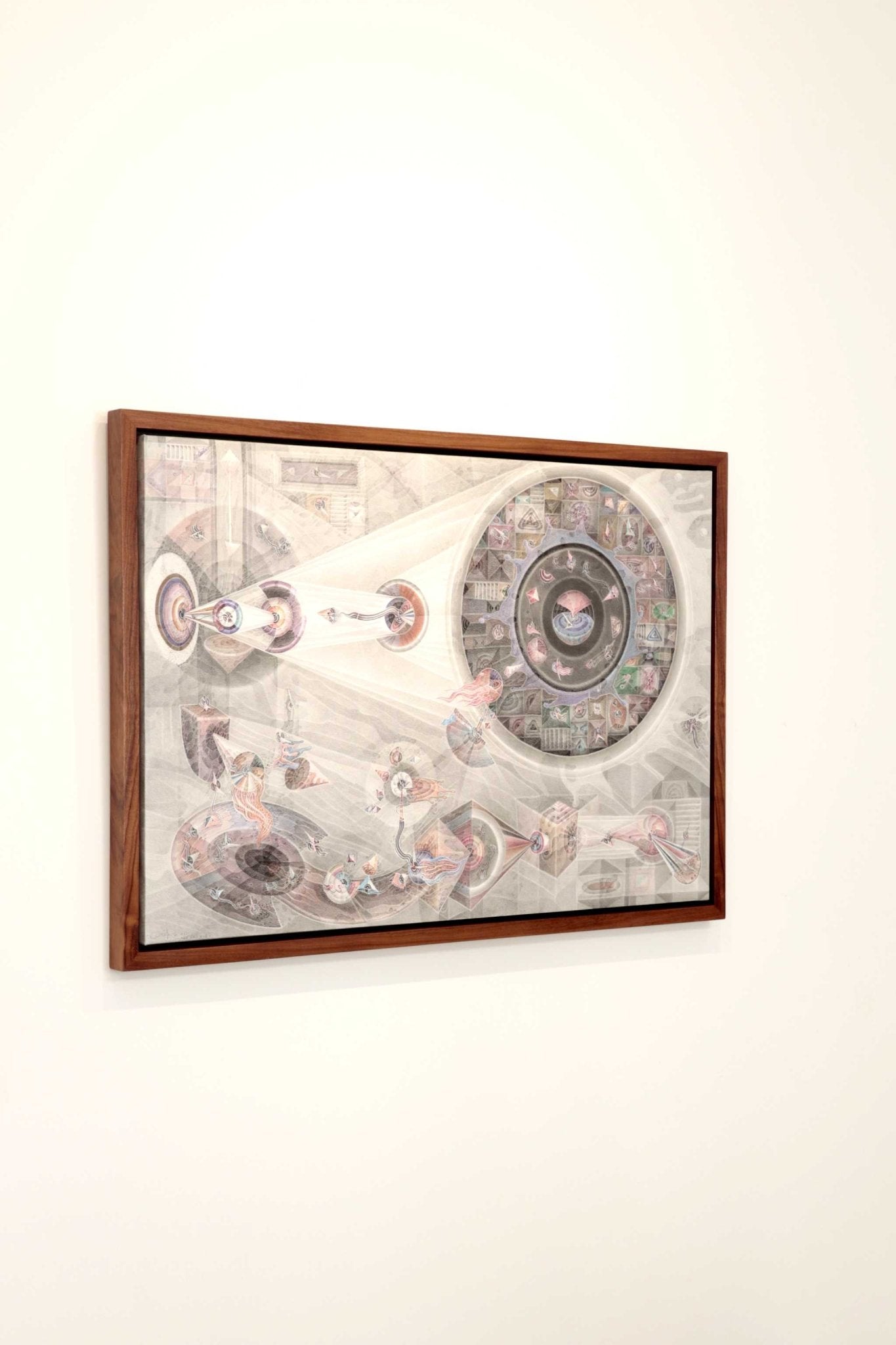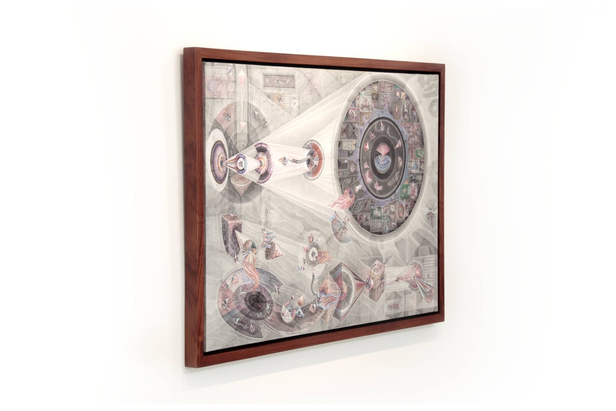El trabajo de Wirantawan, aunque moderno, resuena con la perspectiva filosófica hindú balinesa y se caracteriza por la geometría sagrada, donde líneas armoniosas crean símbolos que impactan en el subconsciente. Los círculos, representando la perfección de la naturaleza, son recurrentes en su obra, reflejando patrones cíclicos de la vida. Su arte contrasta dualidades de luz y oscuridad, creando profundidad y dimensión en formas surrealistas.