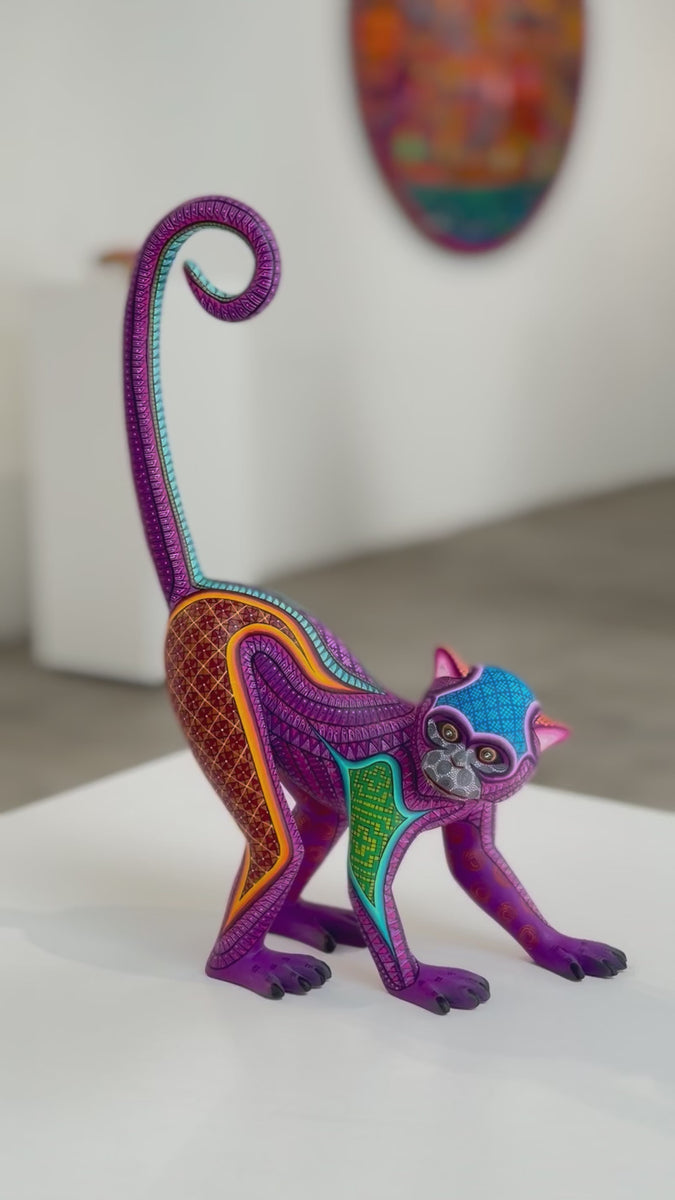 Mono del Viento es una escultura artesanal que transmite ligereza, agilidad y movimiento a través de su postura dinámica y su silueta fluida. Tallado en madera y pintado completamente a mano, cada detalle refleja el alto nivel de técnica y dedicación del artesano.