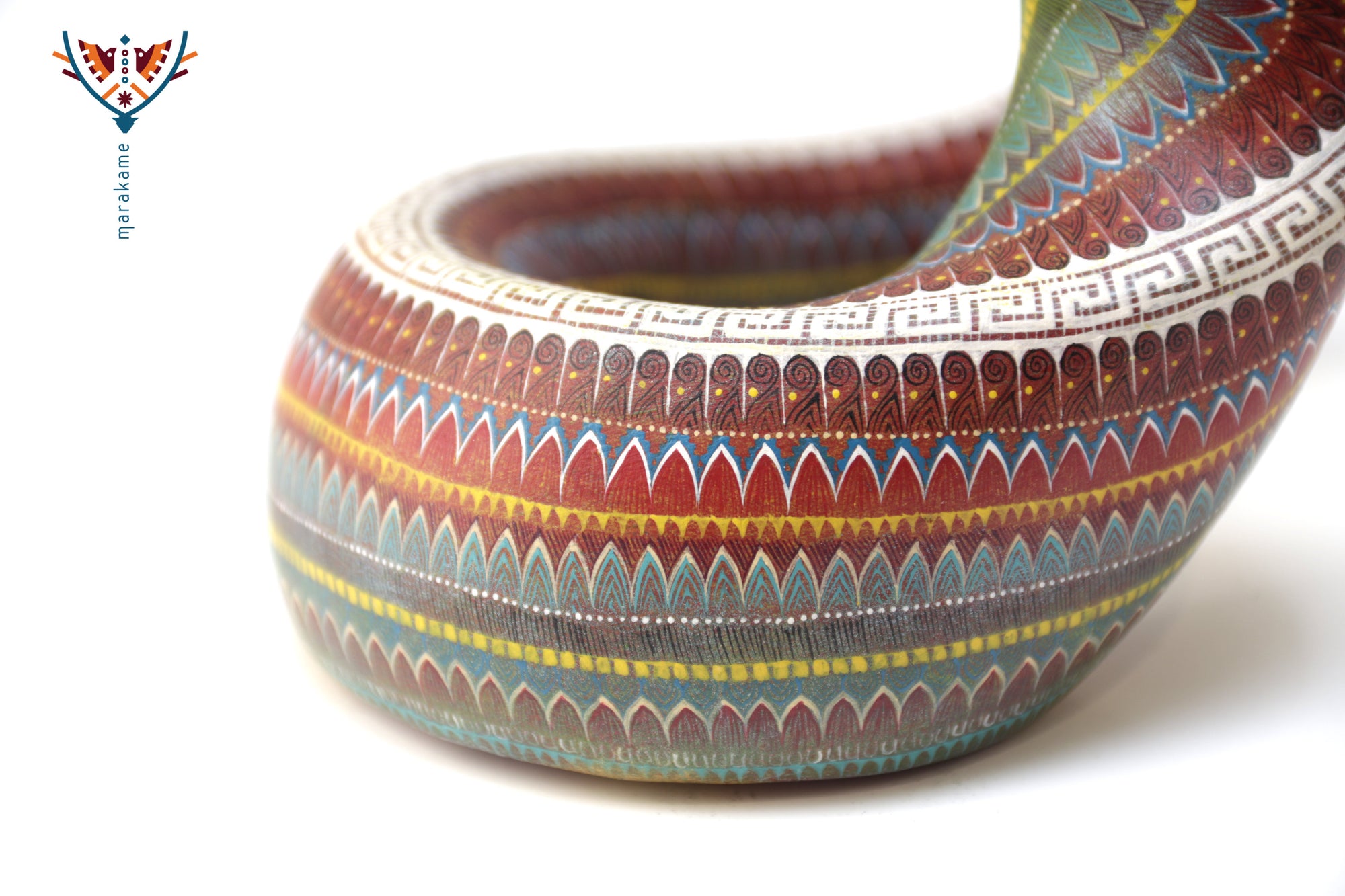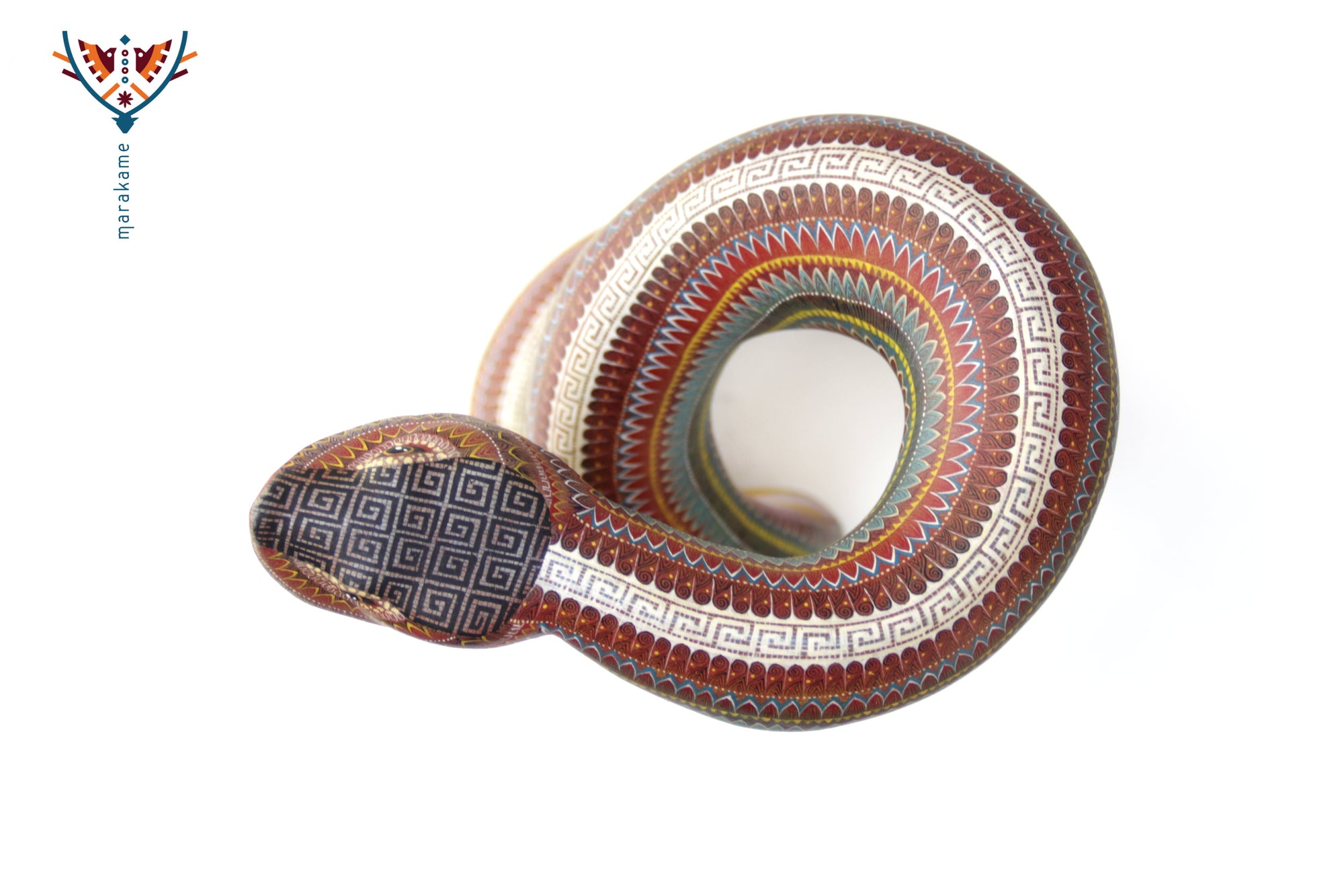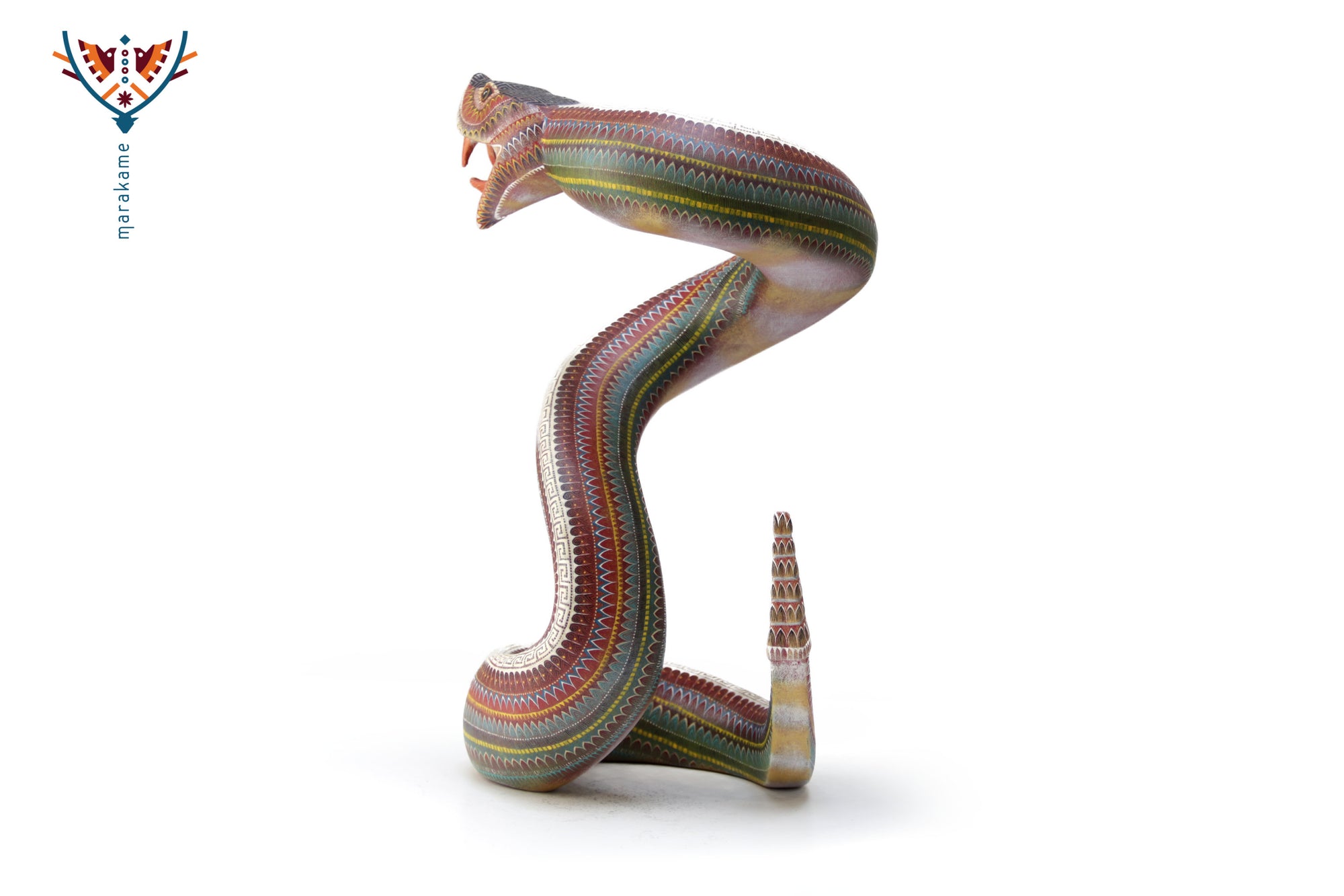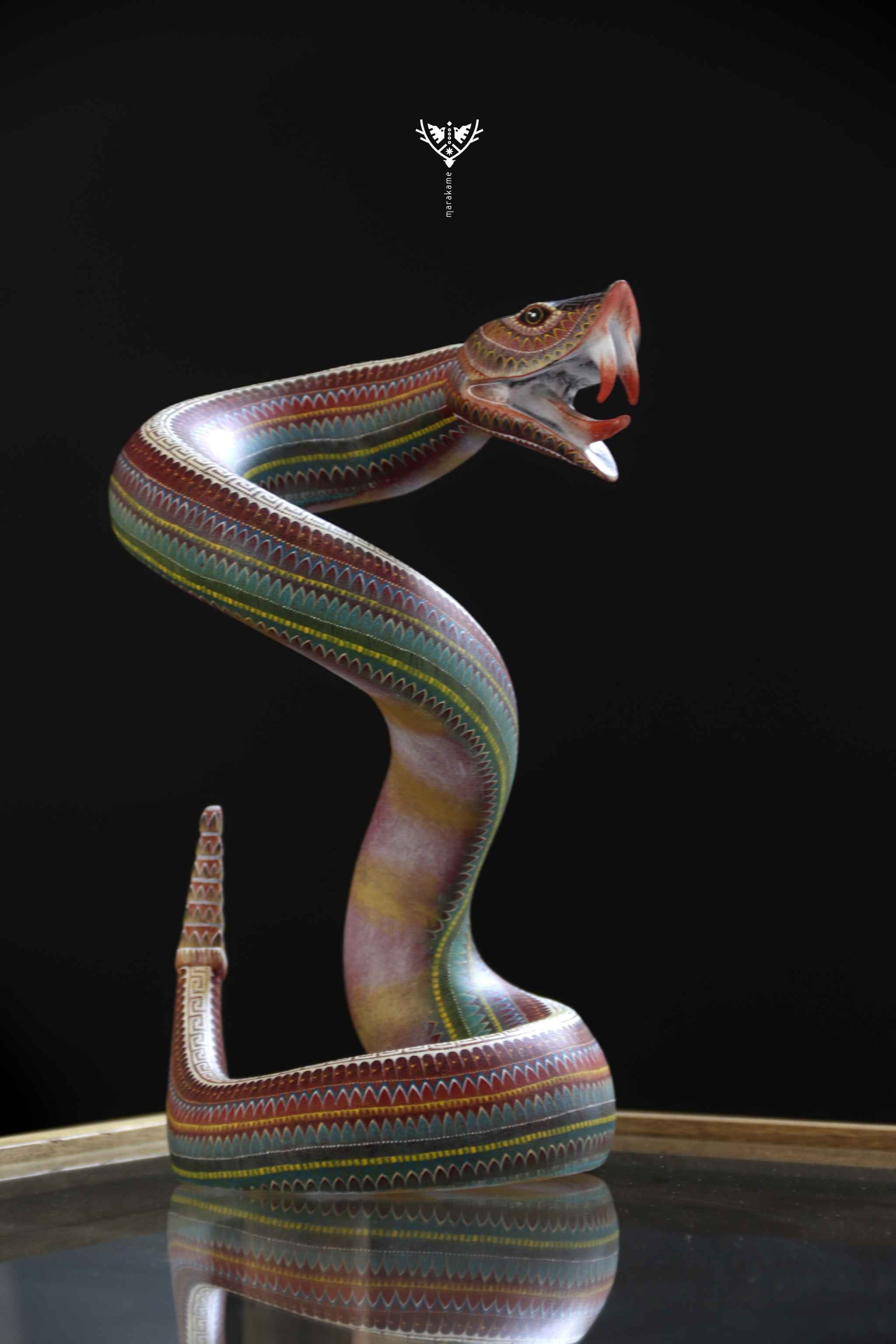 La serpiente parece moverse en el aire, como si estuviera animada por la energía que la rodea. Es un verdadero tesoro artístico, elaborado a mano con precisión y dedicación que reflejan la riqueza cultural y tradicional de la región.