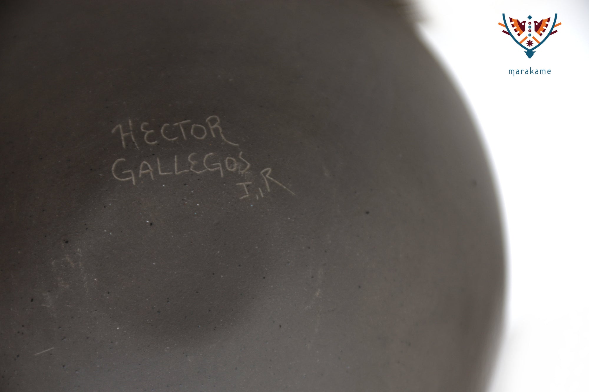 • Héctor Gallegos Martínez (Chihuahua capital, 1981) es heredero de una tradición cerámica familiar muy reconocida. En el empeño por desarrollar un camino propio, abandonó la pintura por patrones geométricos para experimentar con un lenguaje de temática animal. Domina todos los procesos de manufactura cerámica. Frecuentemente realiza obras colaborativas con Laura Burgarini. Juntos promueven la tradición contemporánea en Mata Ortiz a nivel nacional e internacional.