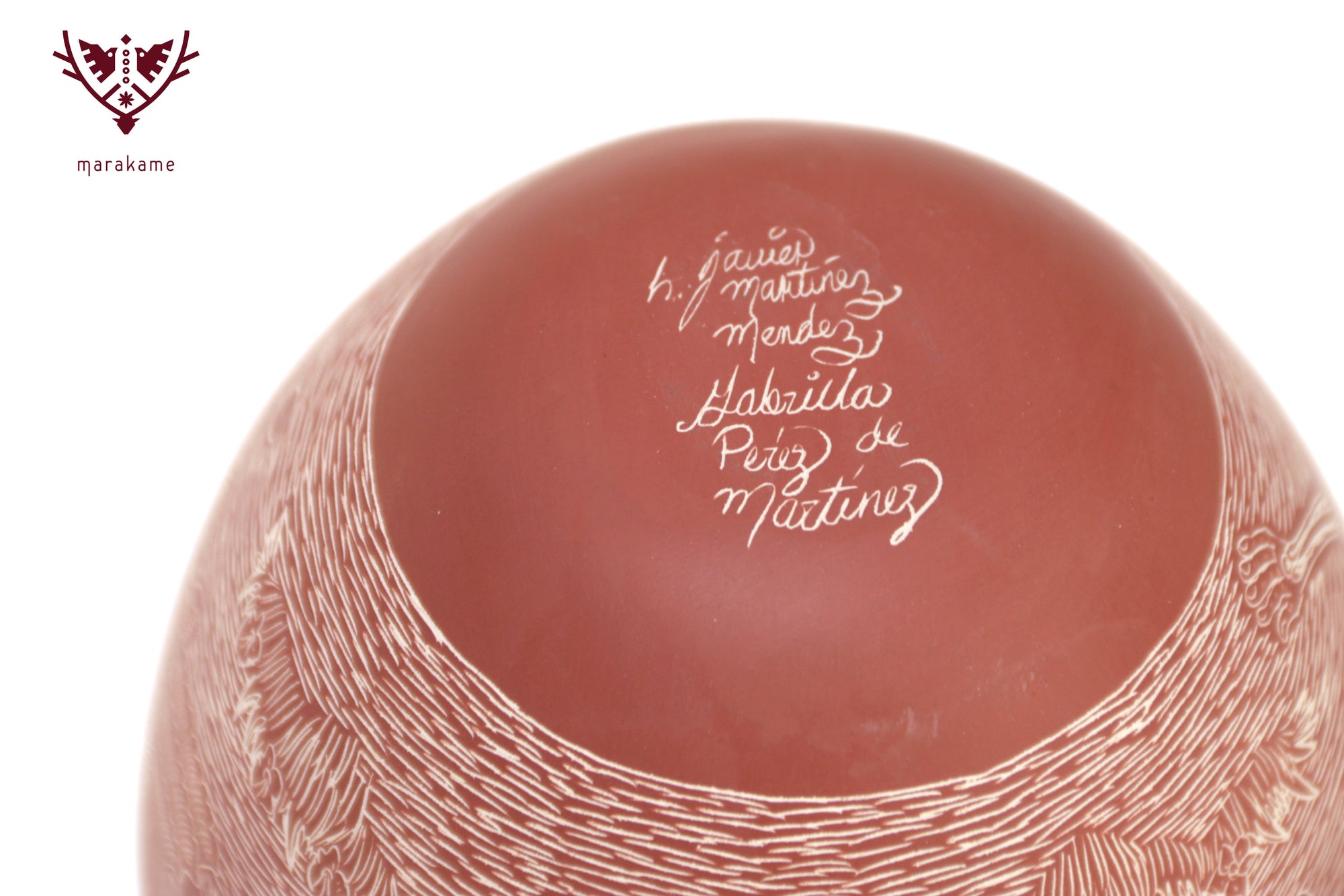 • Héctor Javier Martínez (Mata Ortiz, 1984) irrumpió en la escena alfarera de Mata Ortiz en el año 2008, con el estilo característico que lo distingue hasta el día de hoy: los motivos de la noche y el día de los muertos, en un modelo gráfico muy mexicano y personal. Éste fue resultado de una conversación que él sostuvo con el conocido coleccionista norteamericano Steve Rose. Héctor ha sido ganador del Premio Nacional de Cerámica en Tlaquepaque, Jalisco en 2014, y ha recibido reconocimientos importantes en el Concurso Anual de Cerámica en Mata Ortiz. Continúa con su labor colaborando con su compañera Gabriela Pérez, con quien comparte créditos en la firma de sus piezas.