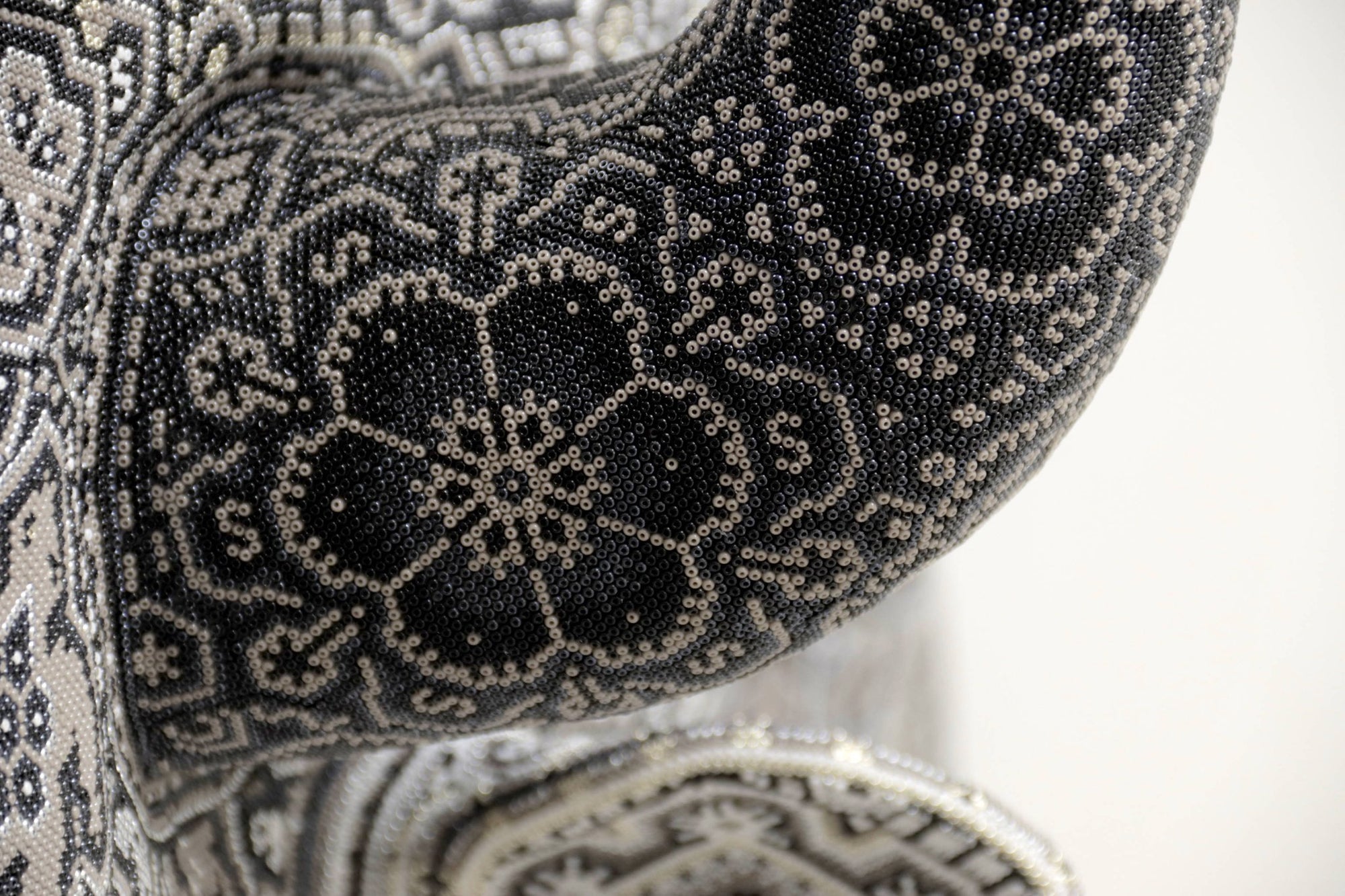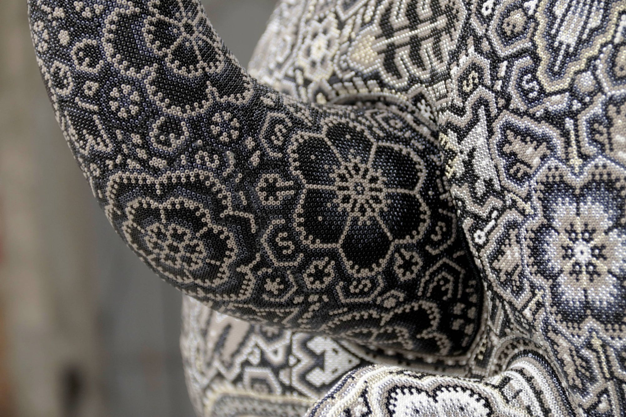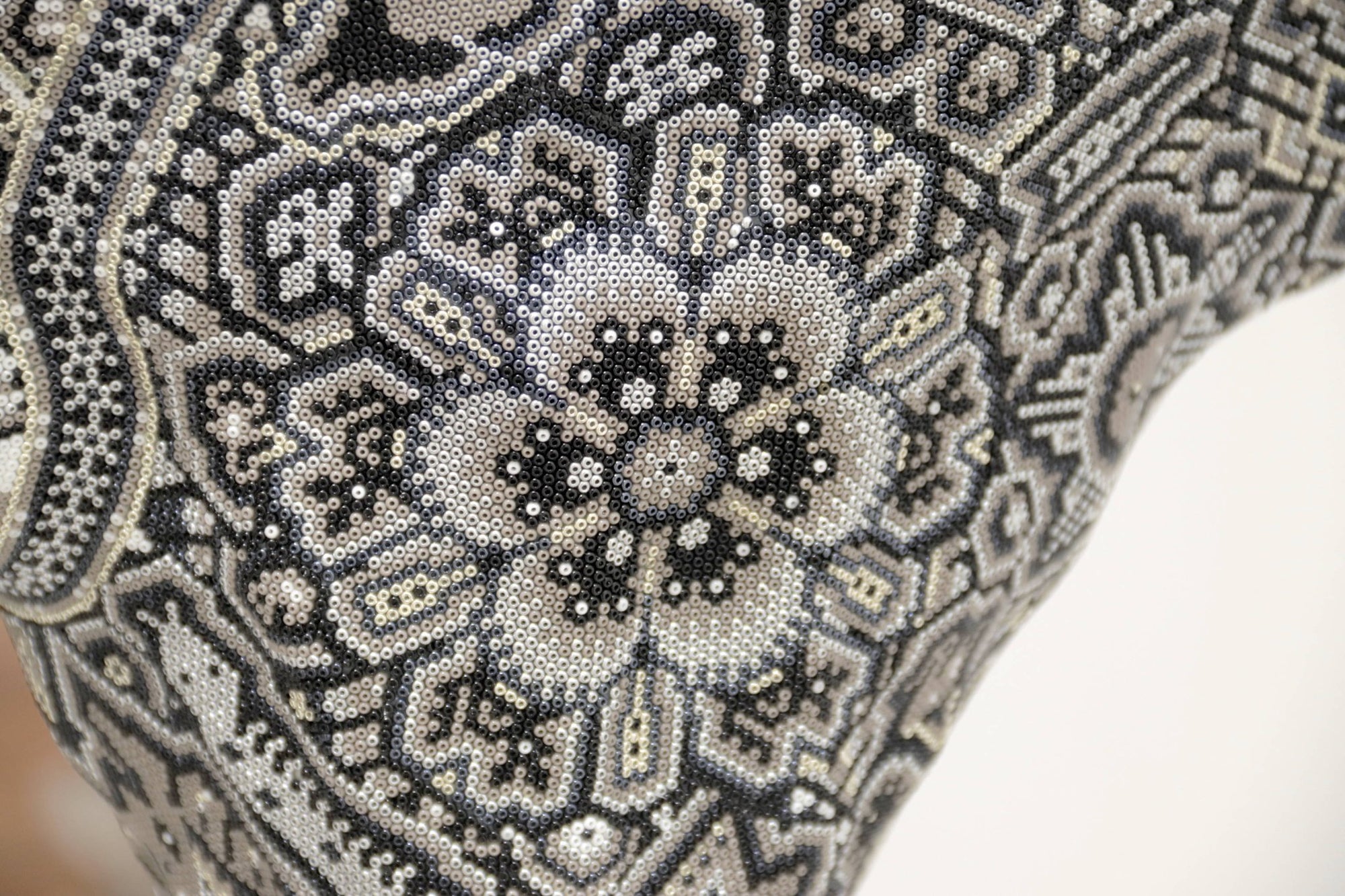 • ◇ Técnica: Chaquira de cristal 11/0 prensada con pegamento epóxico especial sobre escultura realista de resina y fibra de vidrio.