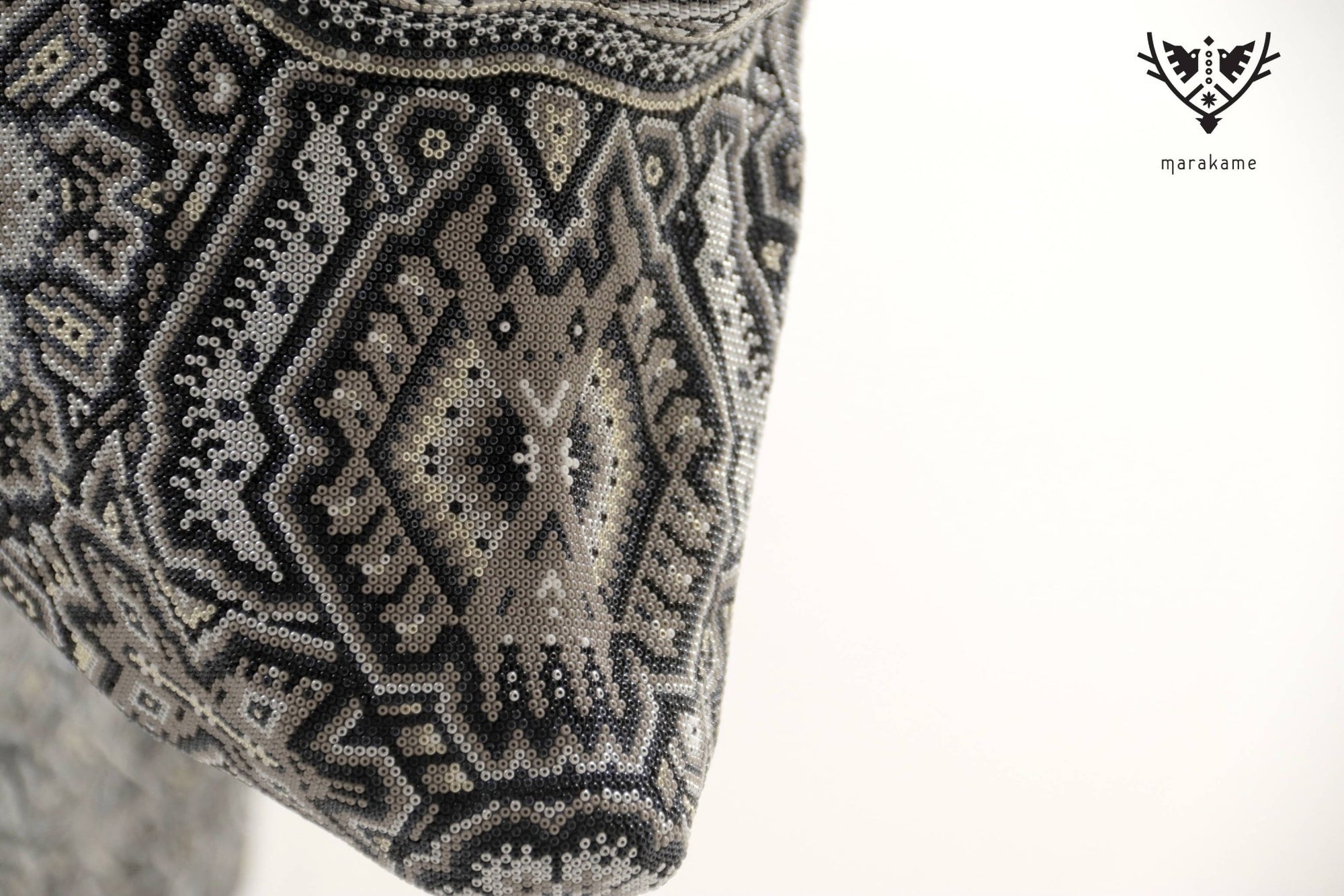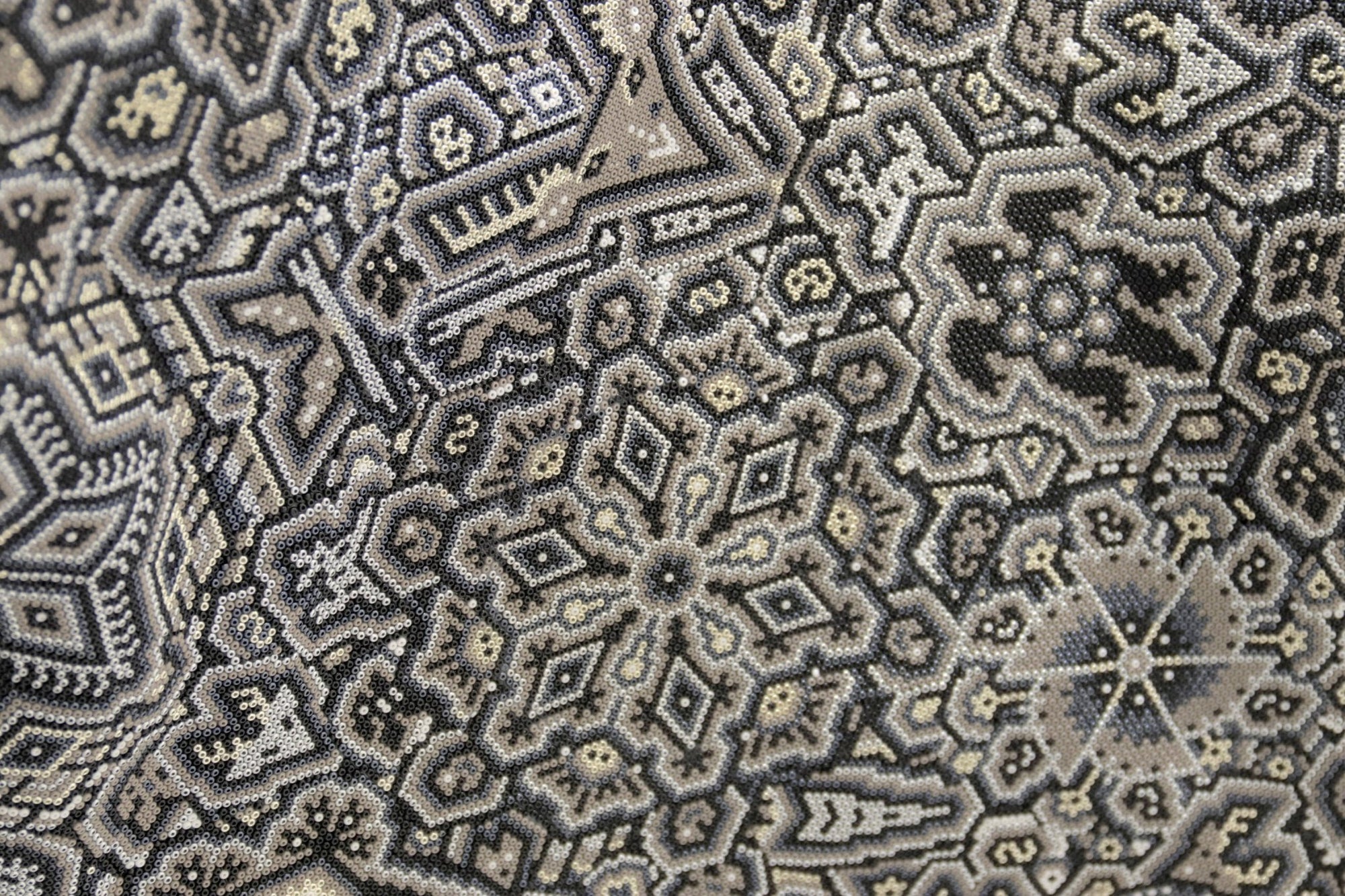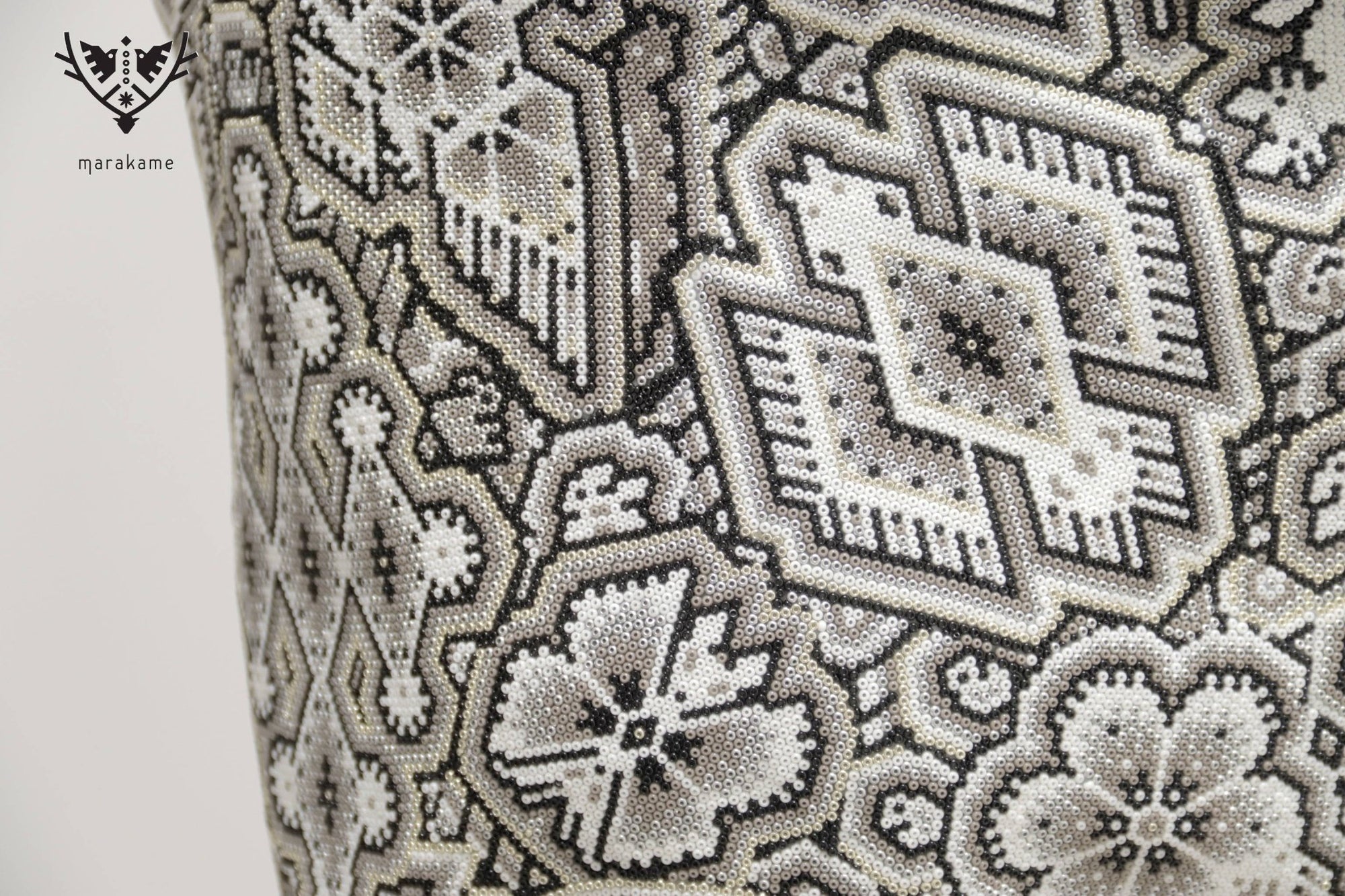 El bisonte, guardián espiritual de muchos pueblos de Norteamérica, se convierte en este caso en un mensajero de la visión wixárika, en donde los patrones geométricos, los ojos de Dios y los caminos de híkuri tejen un relato de protección, fuerza y equilibrio con la naturaleza.
