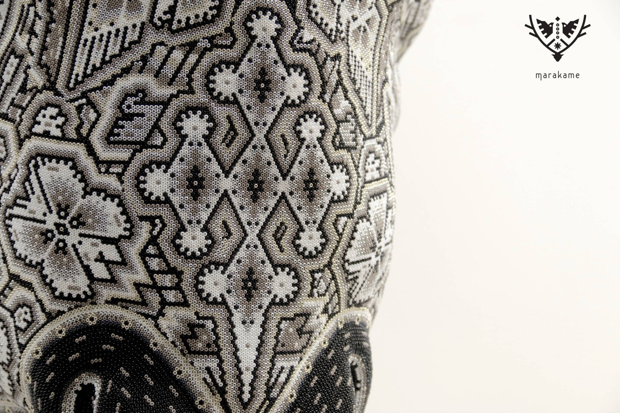 Esta obra es un testimonio de la maestría artística de su creador, quien, en cada cuenta, deposita visiones fruto de la práctica de su costumbre wixárika, transmitiendo el saber de generaciones. Yumutame no es solo una pieza de arte, sino un ser que respira, observa y protege, llevando consigo el alma de una tradición viva.