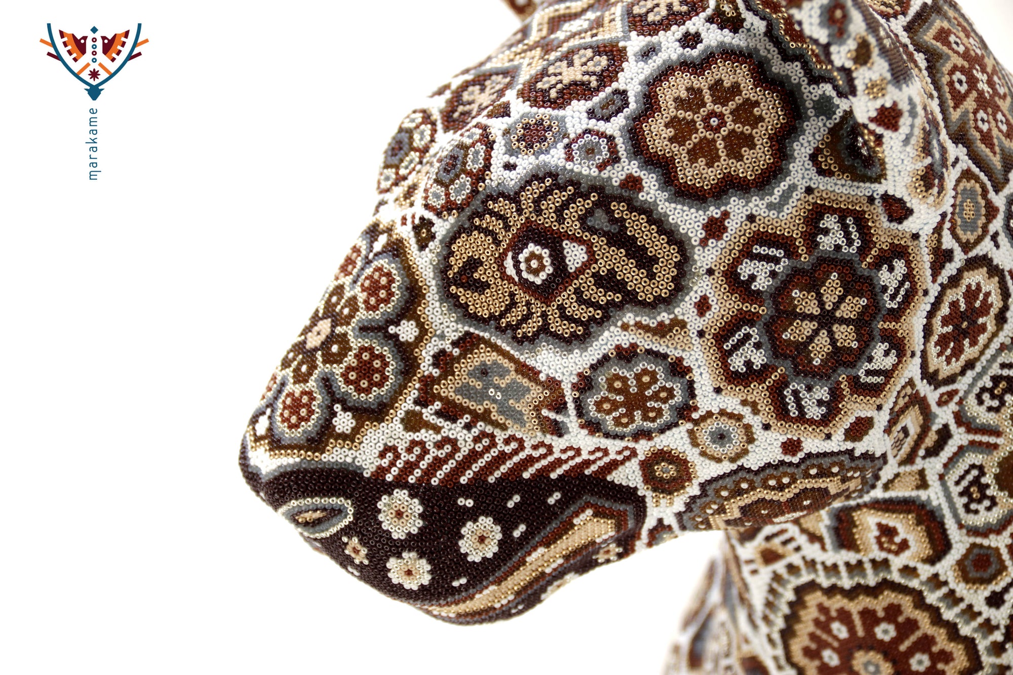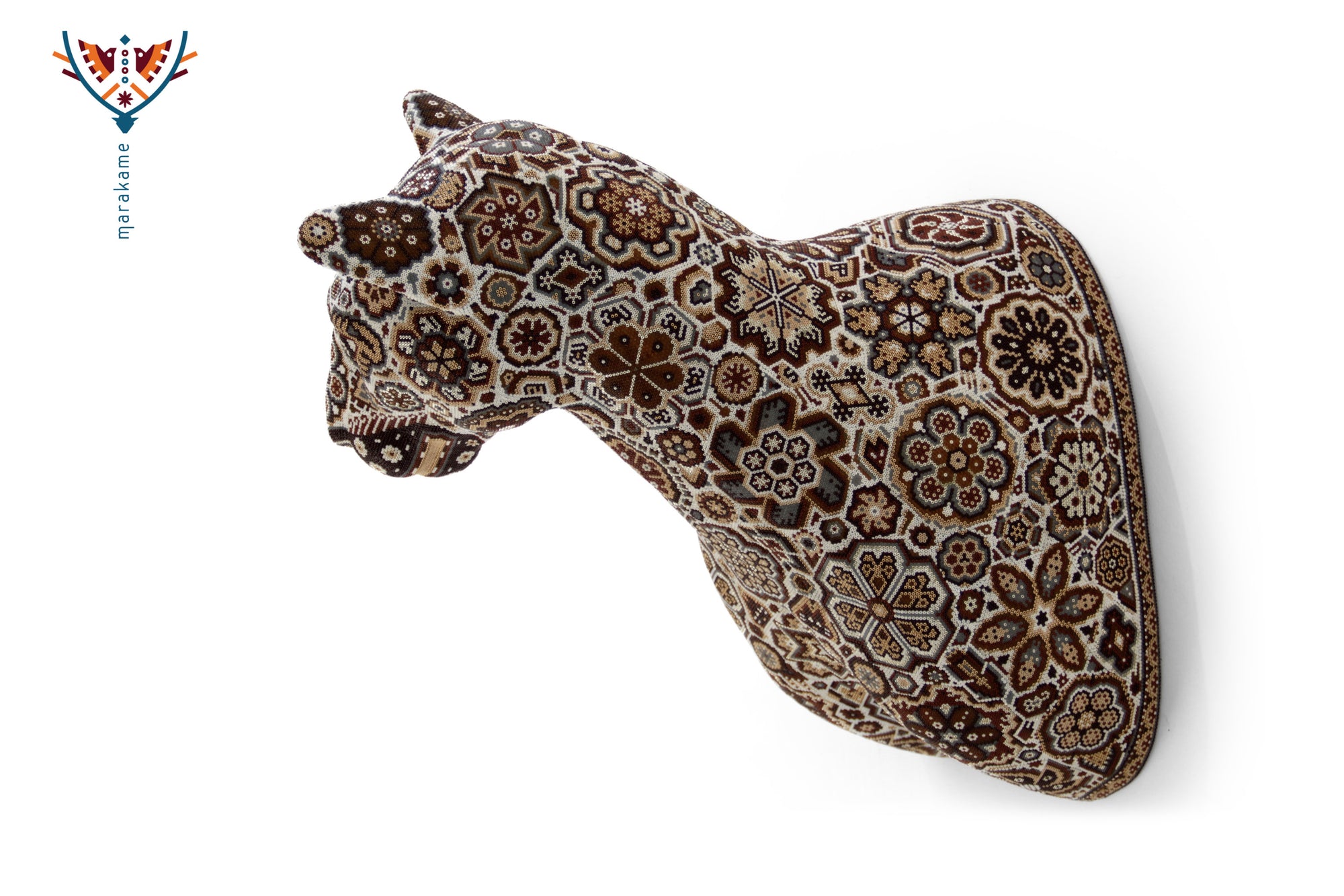Escultura Arte Huichol - Busto de Puma - Puma sagrado: voz del fuego y guardián del consejo
