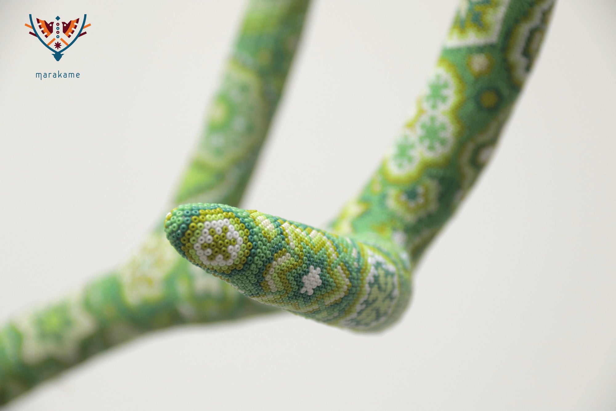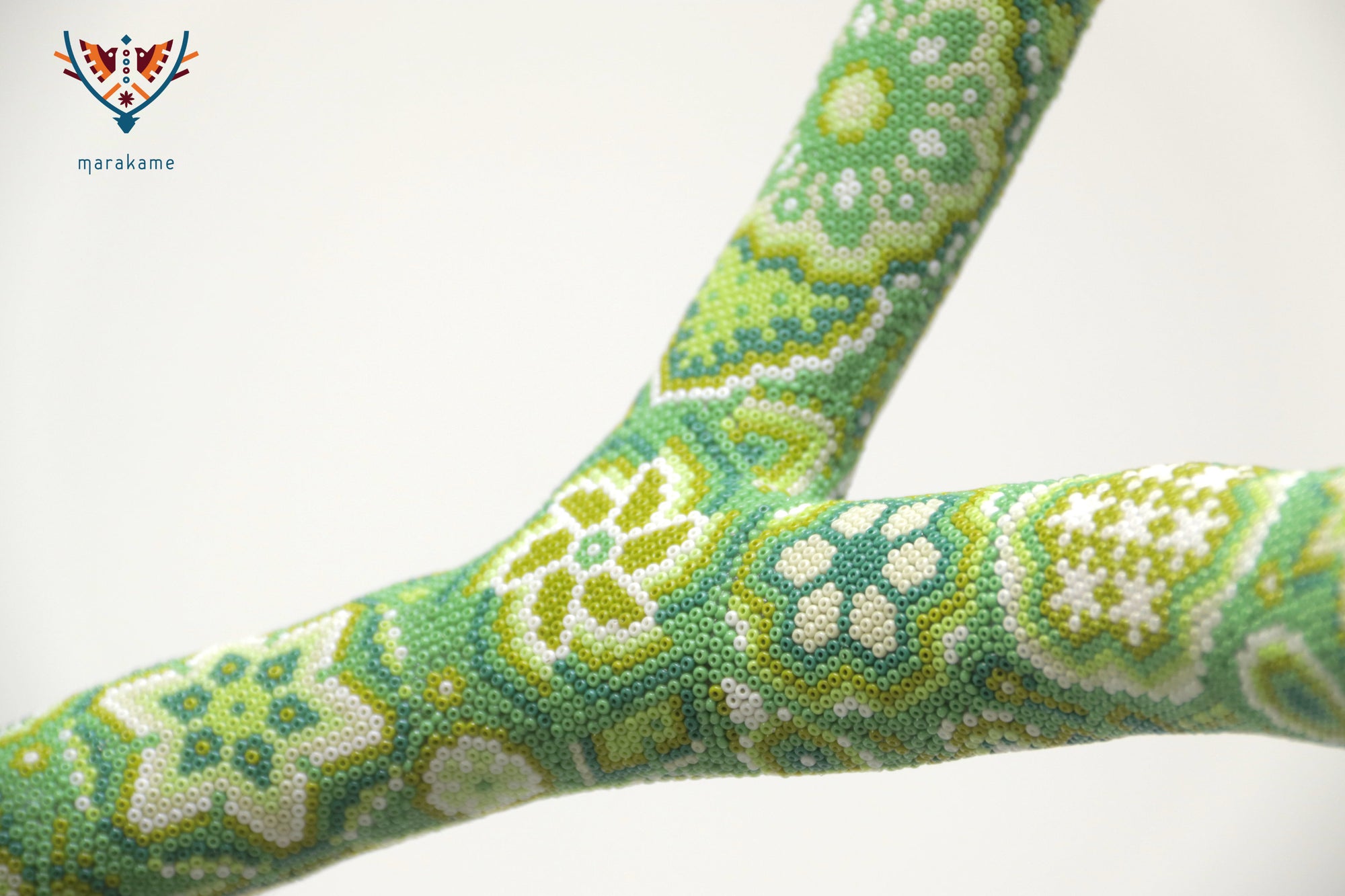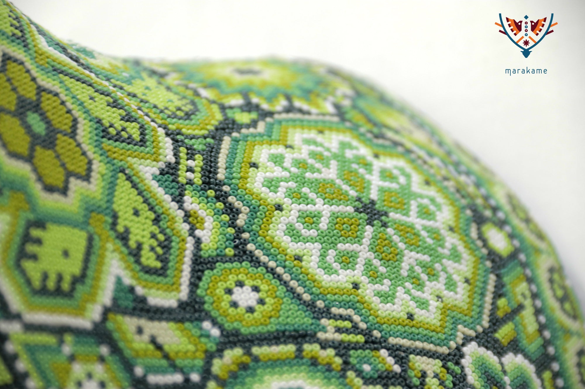 • ◇ Técnica: Chaquira de cristal 11/0 prensada con pegamento epóxico especial sobre escultura realista de resina y fibra de vidrio.