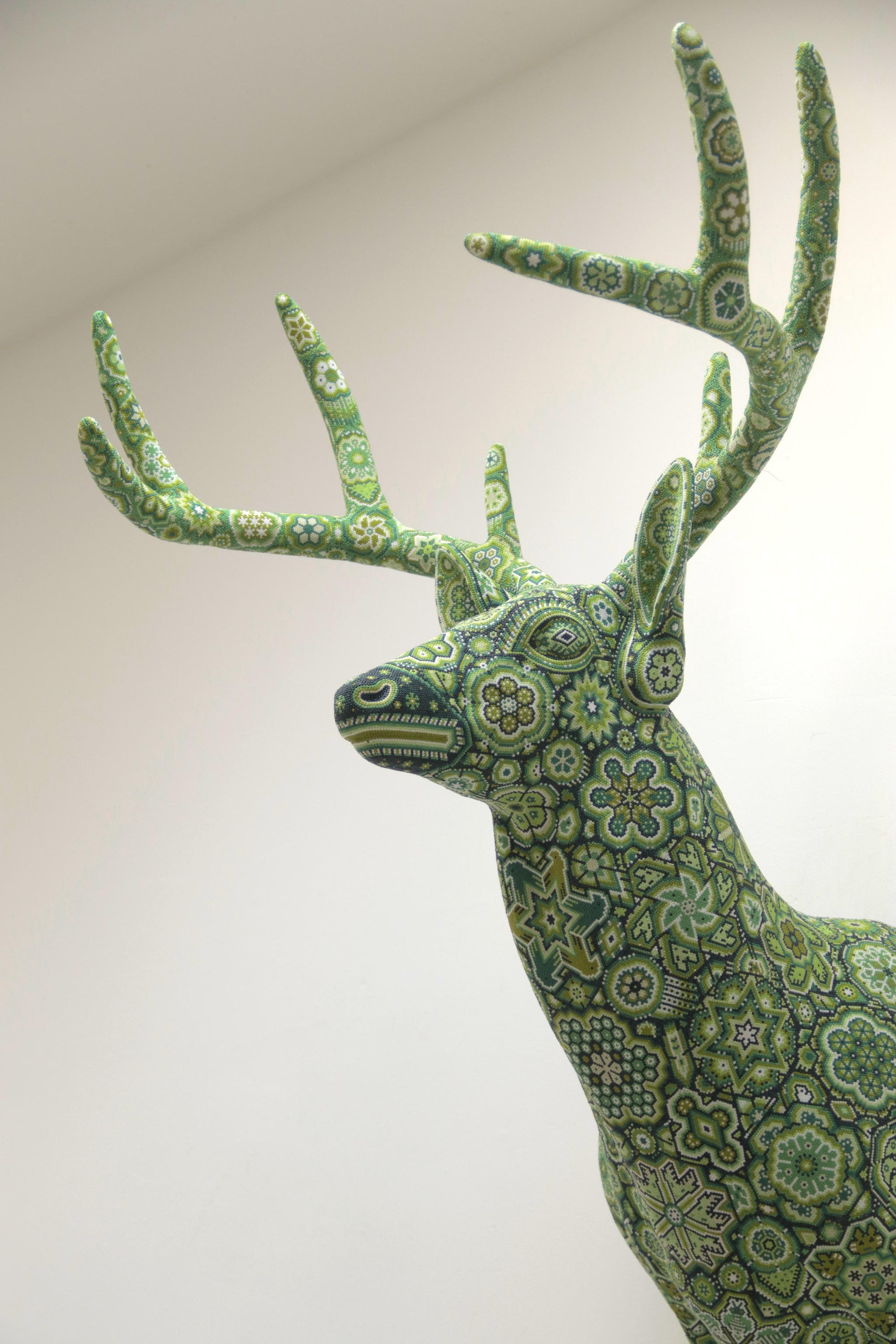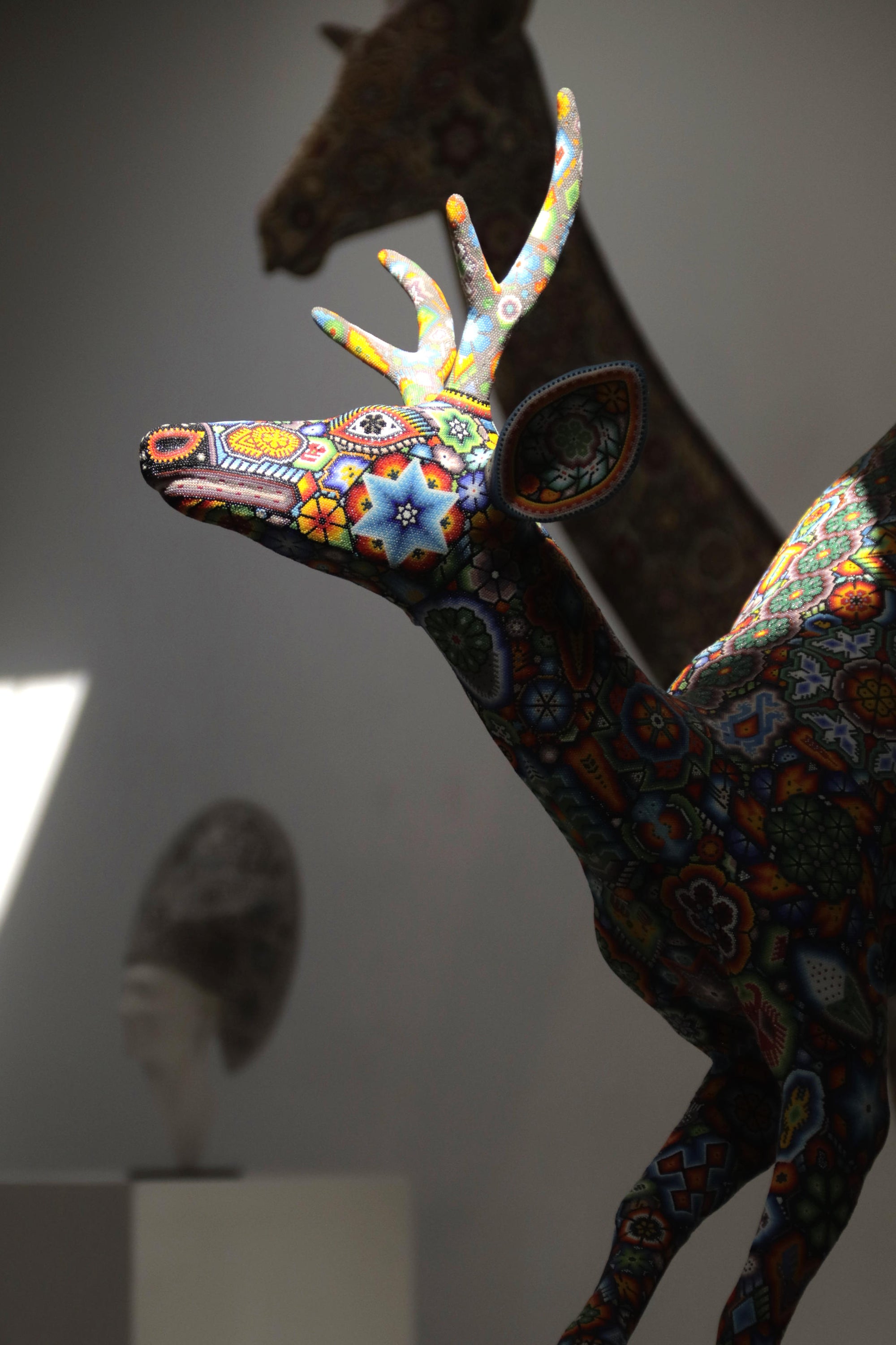 Creada por la artista visionaria wixárika Ramona de la Cruz bajo la comisión de Arte Marakame, esta pieza no es solo una escultura: es un testimonio de lo sagrado, un venado que nos observa desde el umbral de los sueños, guiándonos en el eterno viaje del conocimiento.