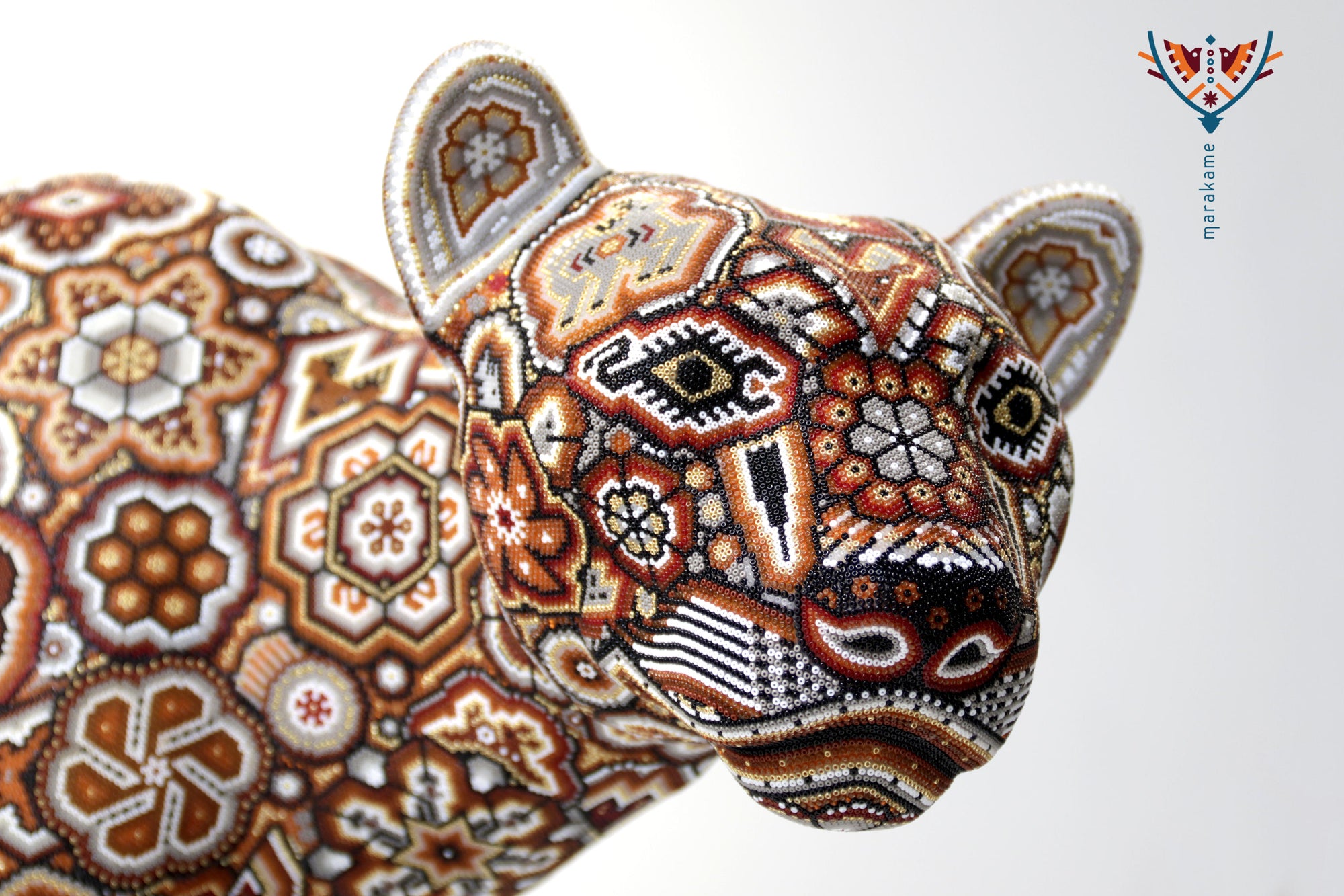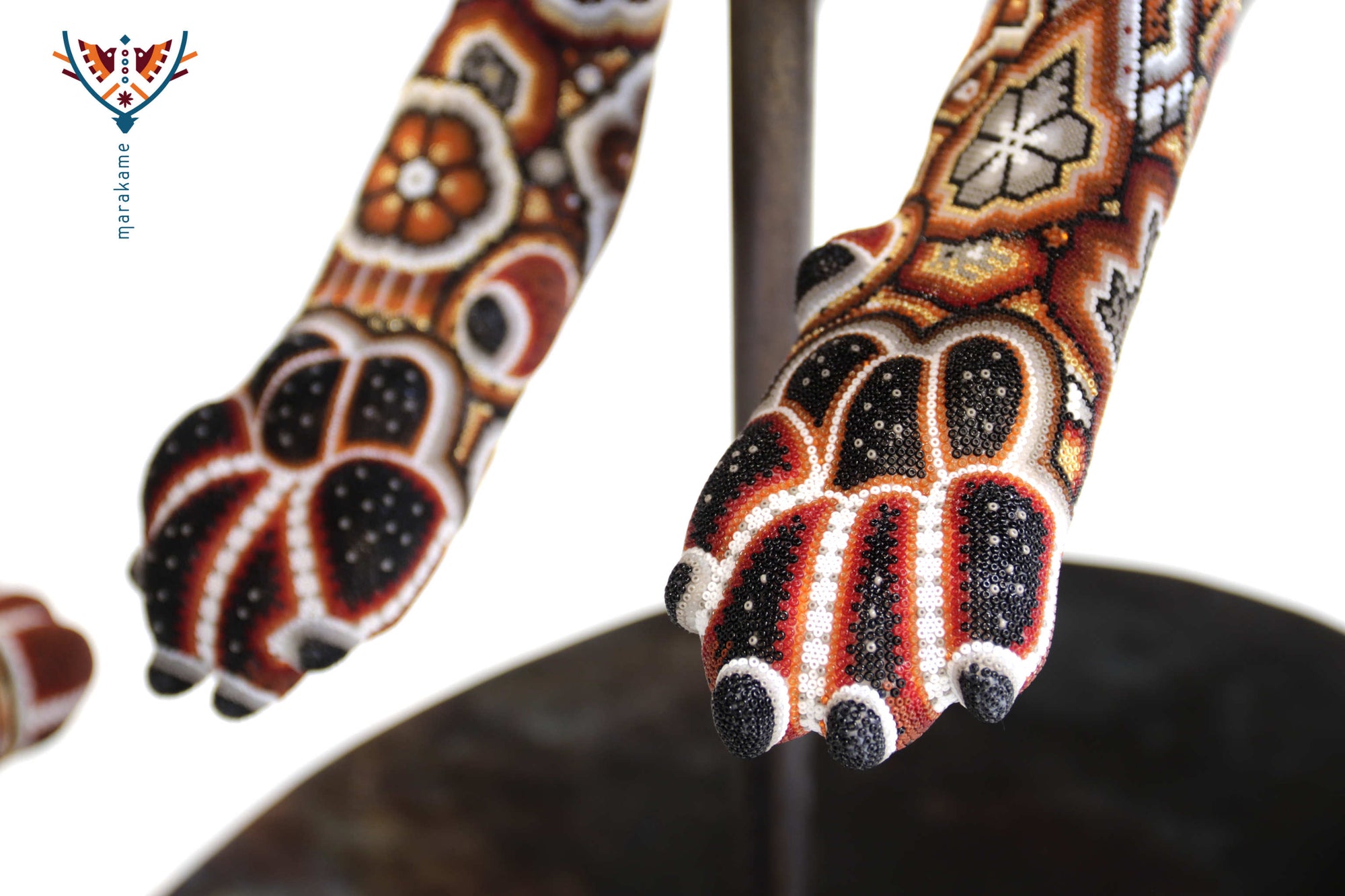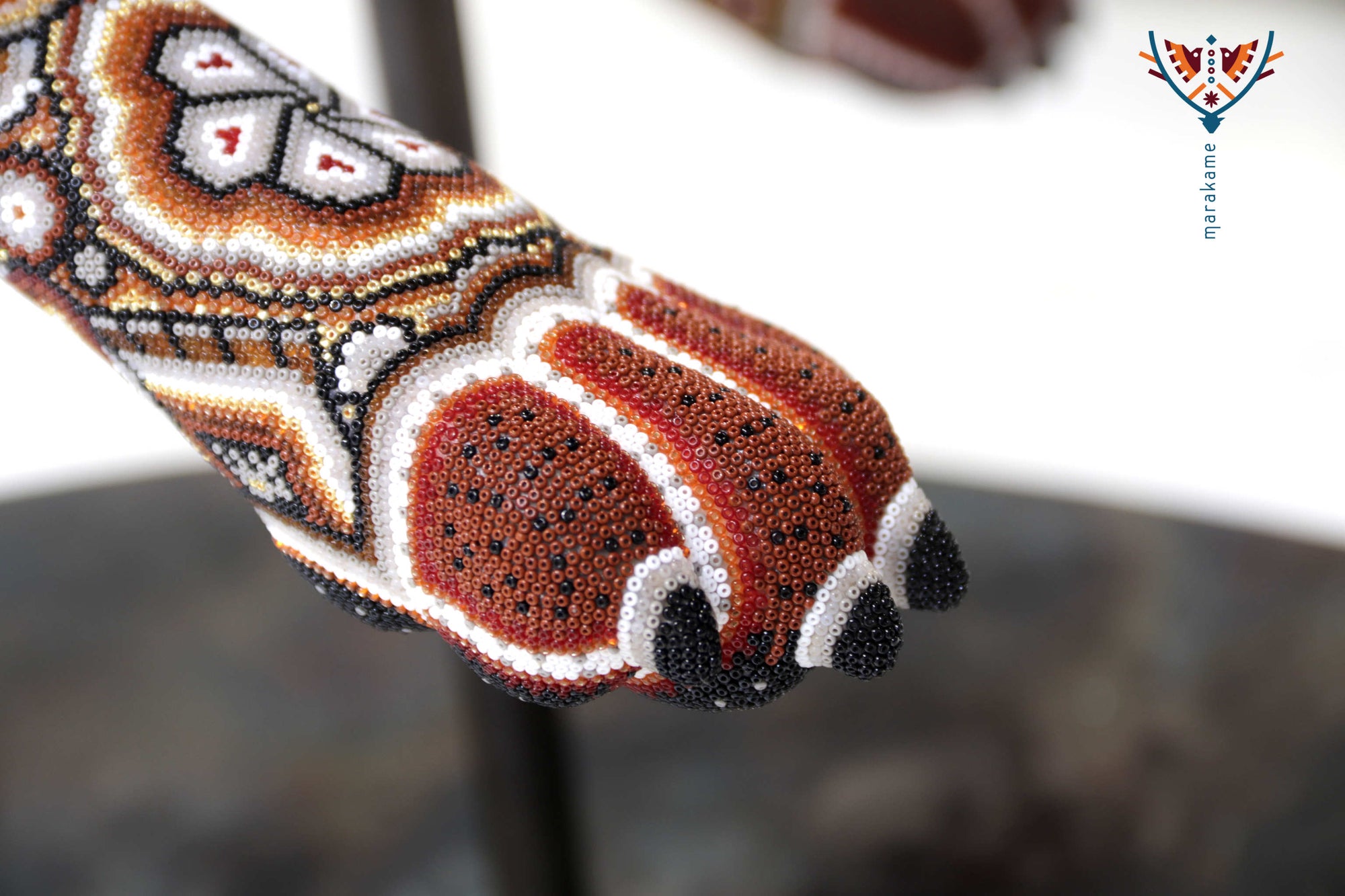 • ◇ Técnica: Micro chaquira de cristal 13/0 prensada con pegamento epóxico especial sobre escultura realista de resina y fibra de vidrio con base de acero.