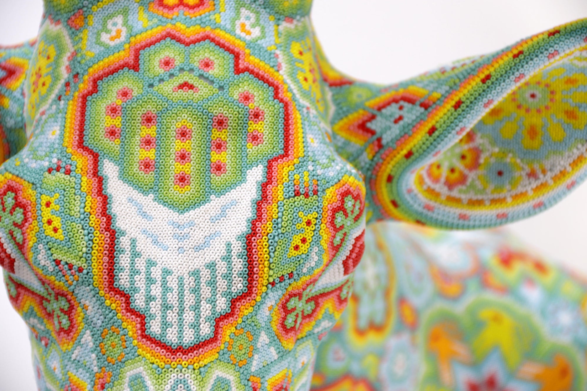 • ◇ Técnica: Chaquira de cristal 11/0 prensada con pegamento epóxico especial sobre escultura realista de resina y fibra de vidrio.