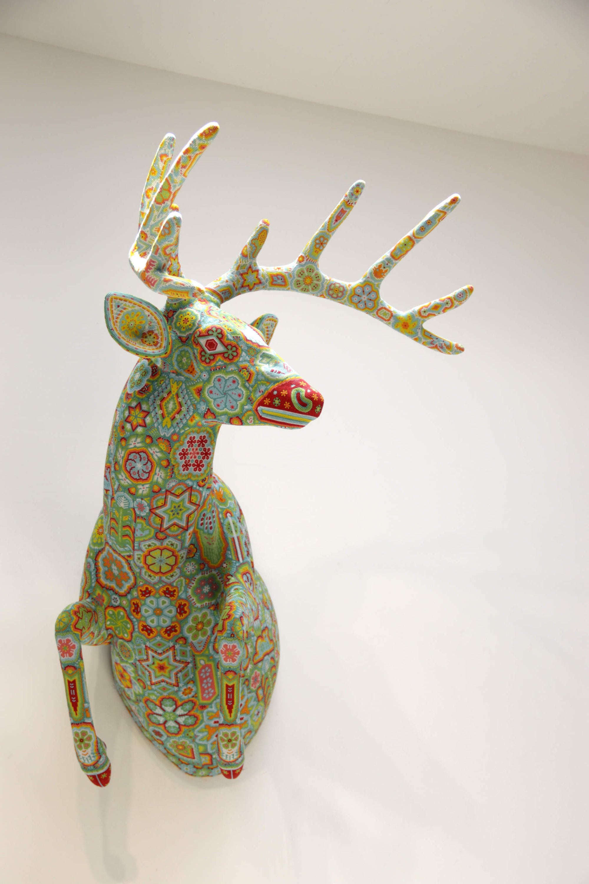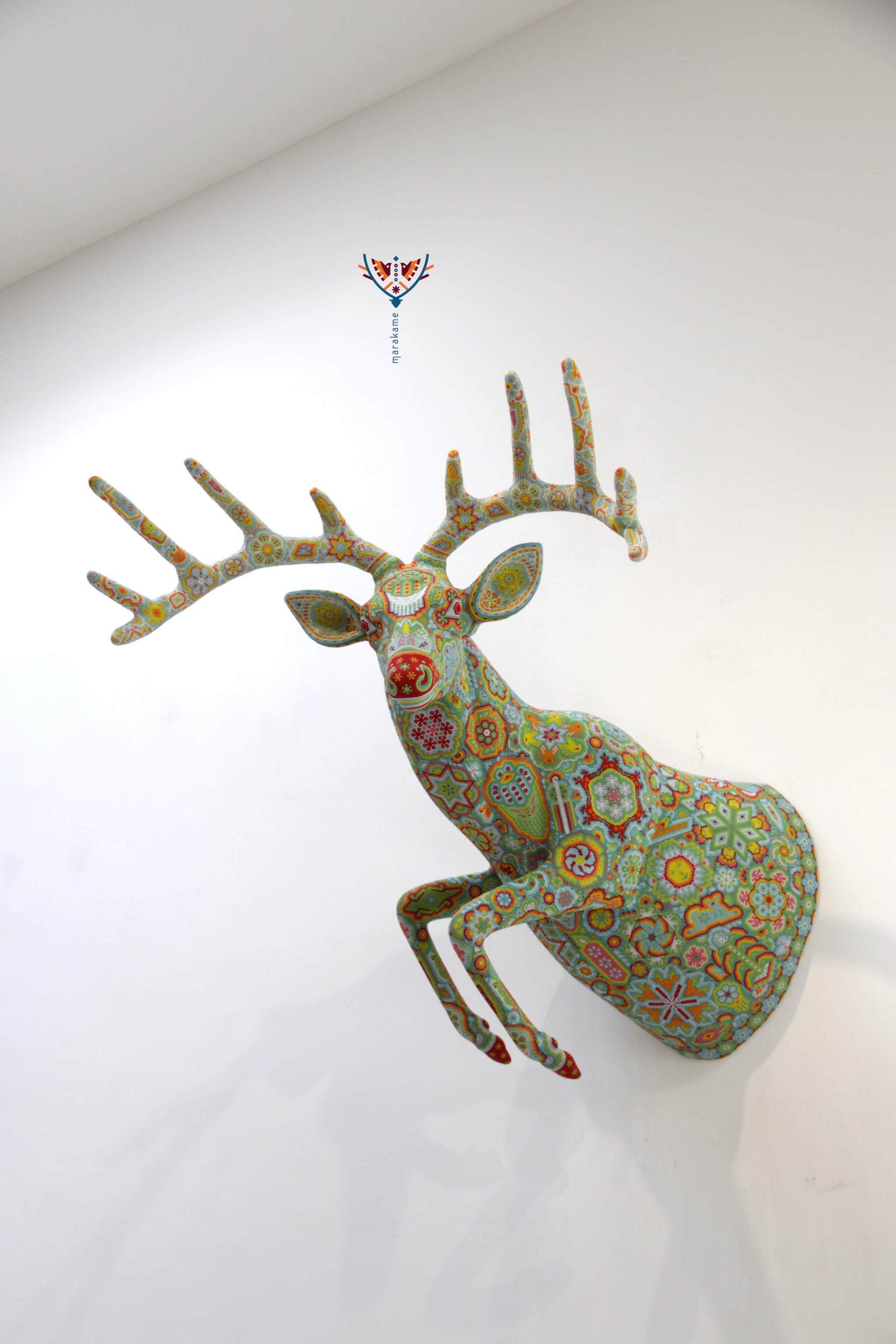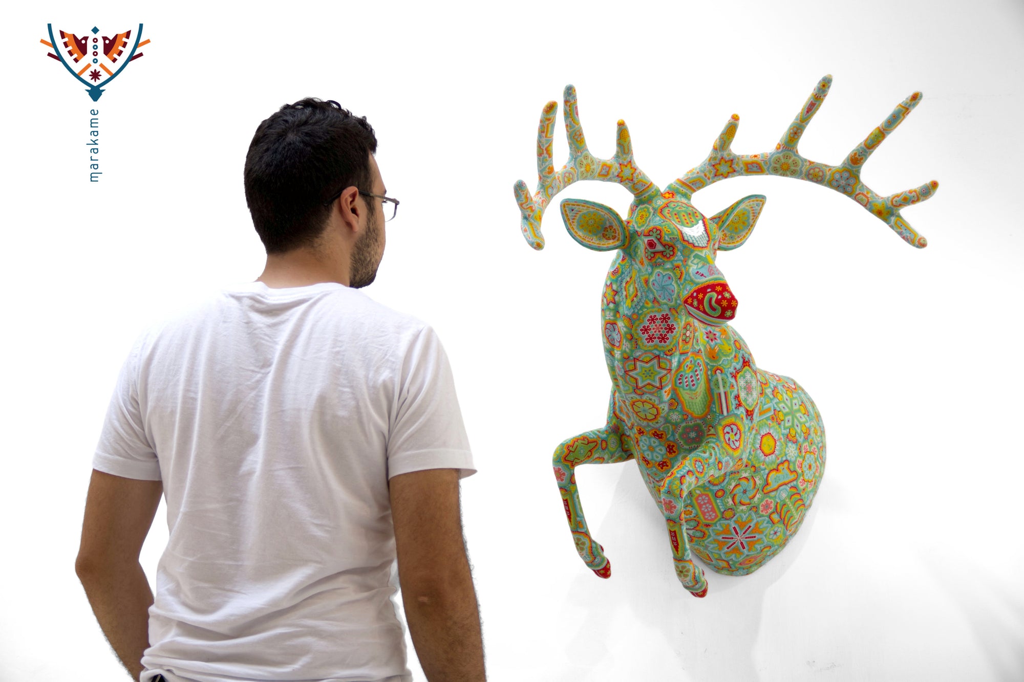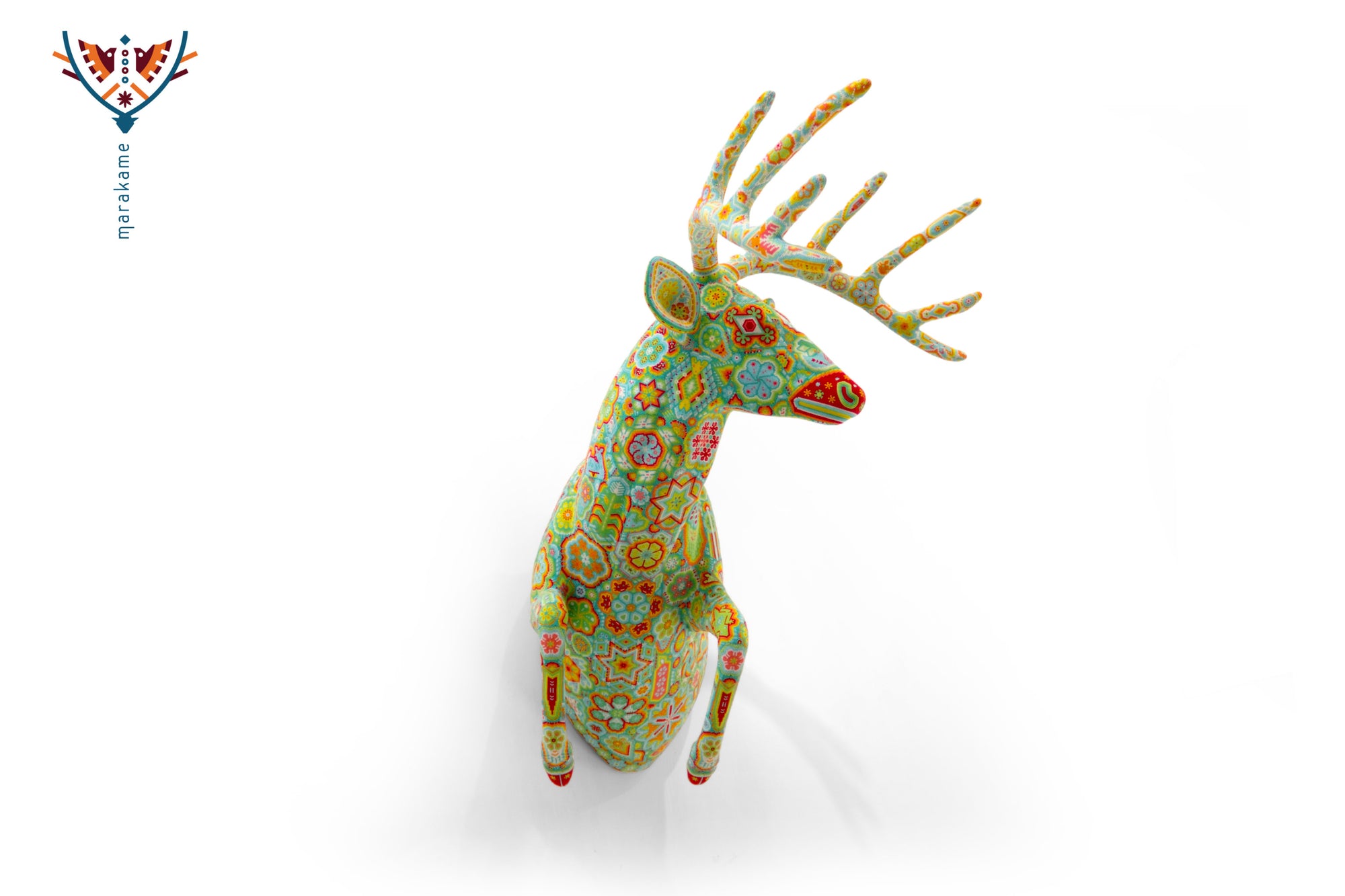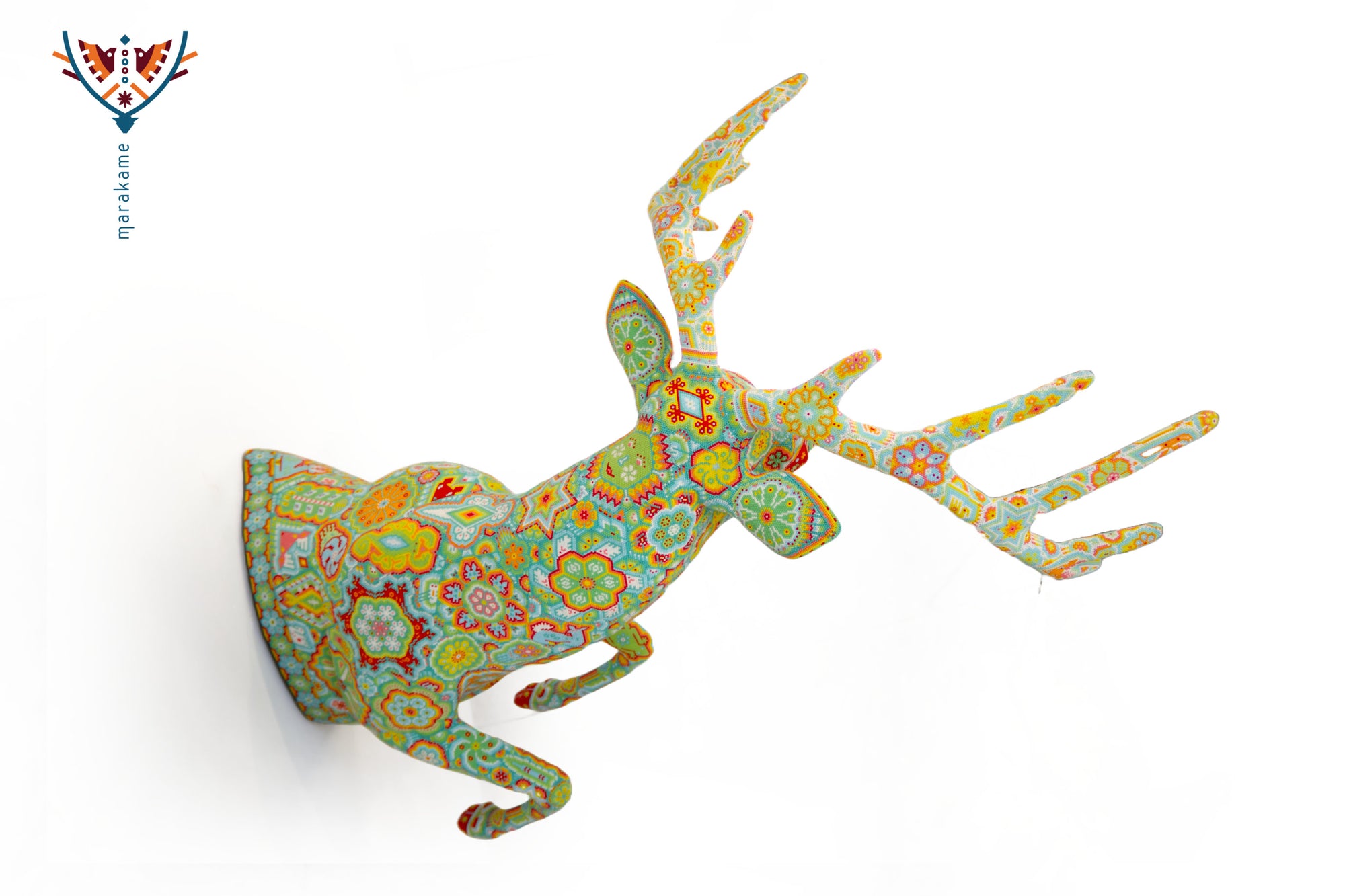 Escultura Arte Huichol - Venado medio cuerpo - Kauyumarie portal: la visión que atraviesa el muro