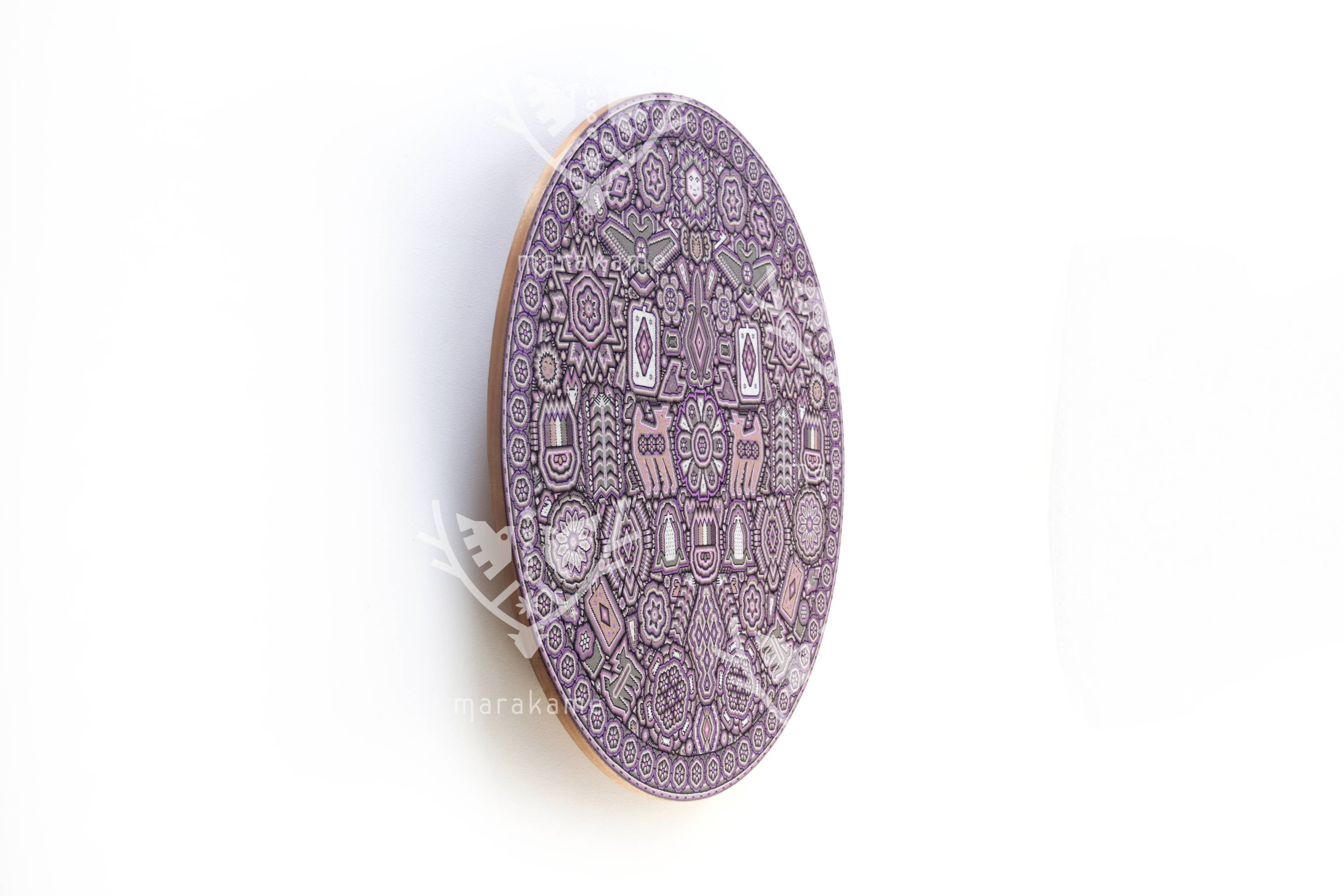 • ◇ Técnica: Micro chaquira de cristal calibrado 13/0 prensada con pegamento epóxico sobre círculo de madera.