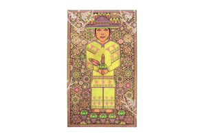 Cada detalle refleja la espiritualidad con la que los wixaritari cultivan el maíz no solo como sustento, sino como vínculo con sus ancestros, con el Sol, la Tierra y el universo. Esta pieza es un rezo visual por la abundancia, la continuidad y el equilibrio sagrado.