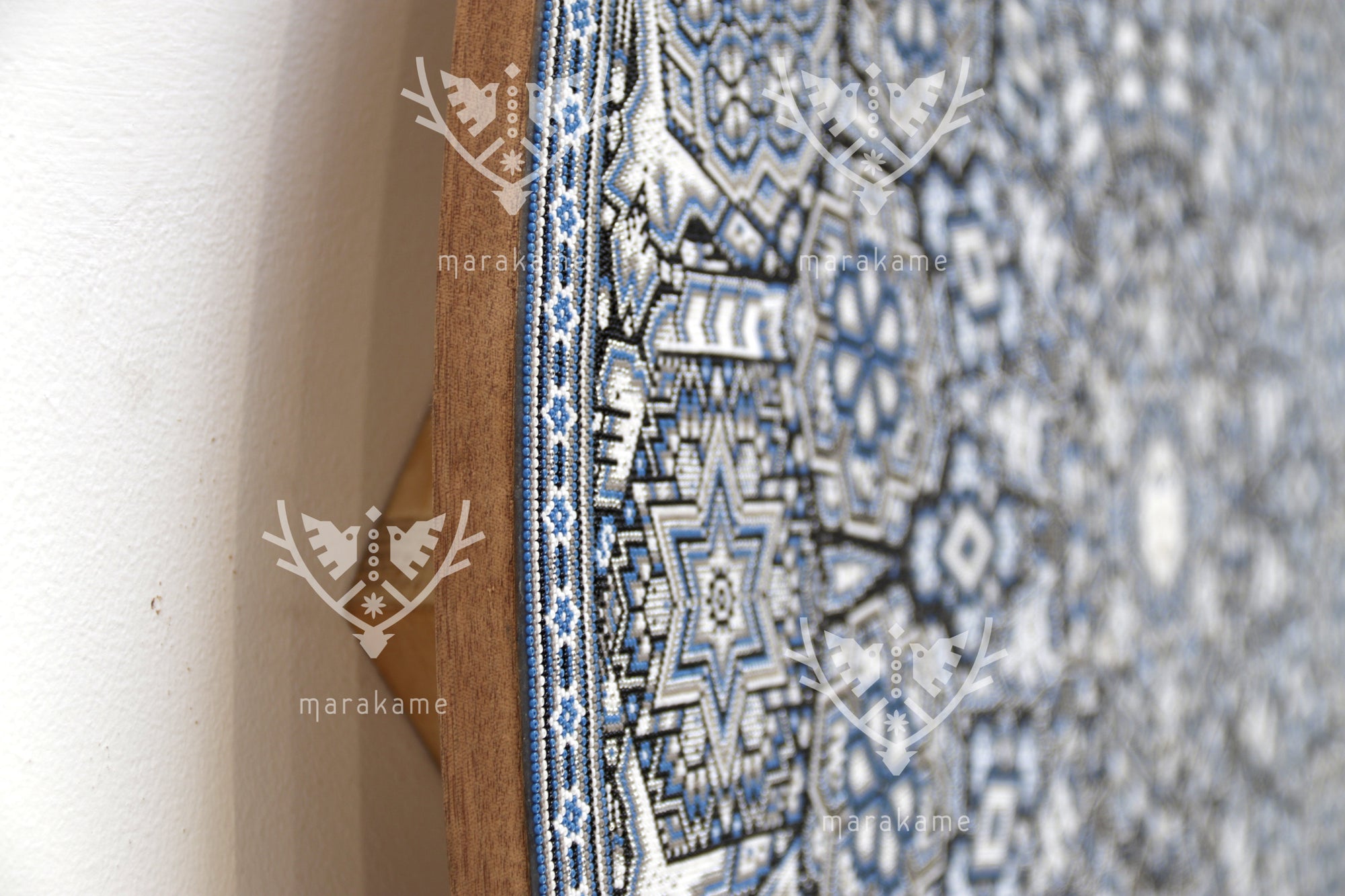 • ◇ Técnica: Micro chaquira de cristal calibrado 13/0 prensada con pegamento epóxico sobre círculo de madera.