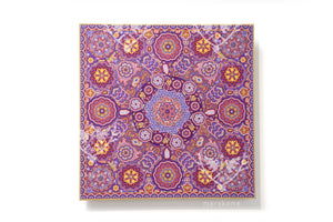 El uso vibrante del color —rojos, naranjas, violetas y azules— simboliza el poder de la visión chamánica, mientras que los patrones minuciosos narran la relación ancestral entre el hombre, la naturaleza y el cosmos.