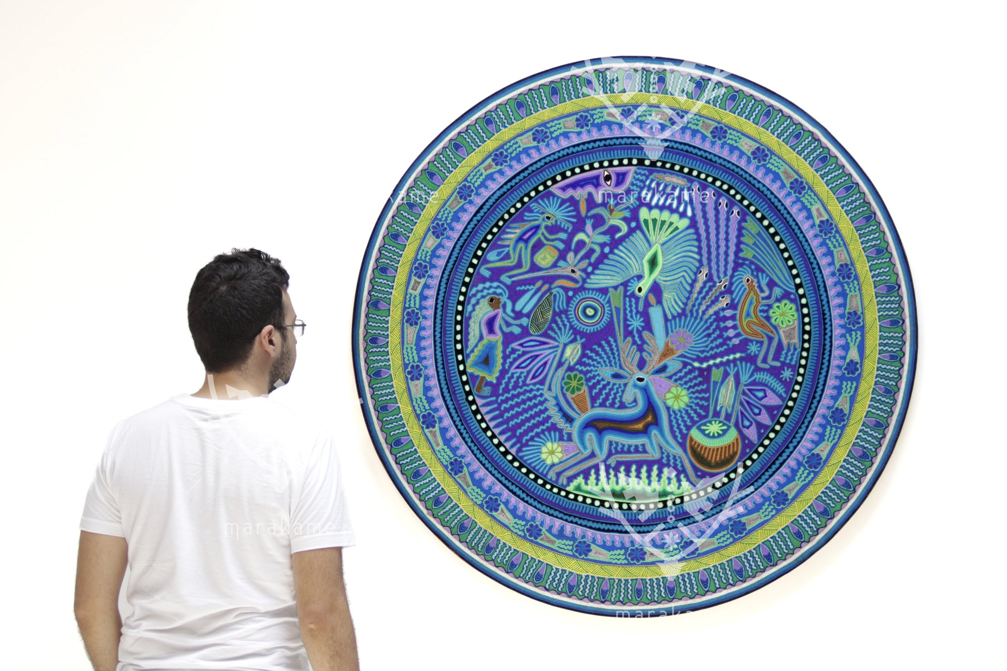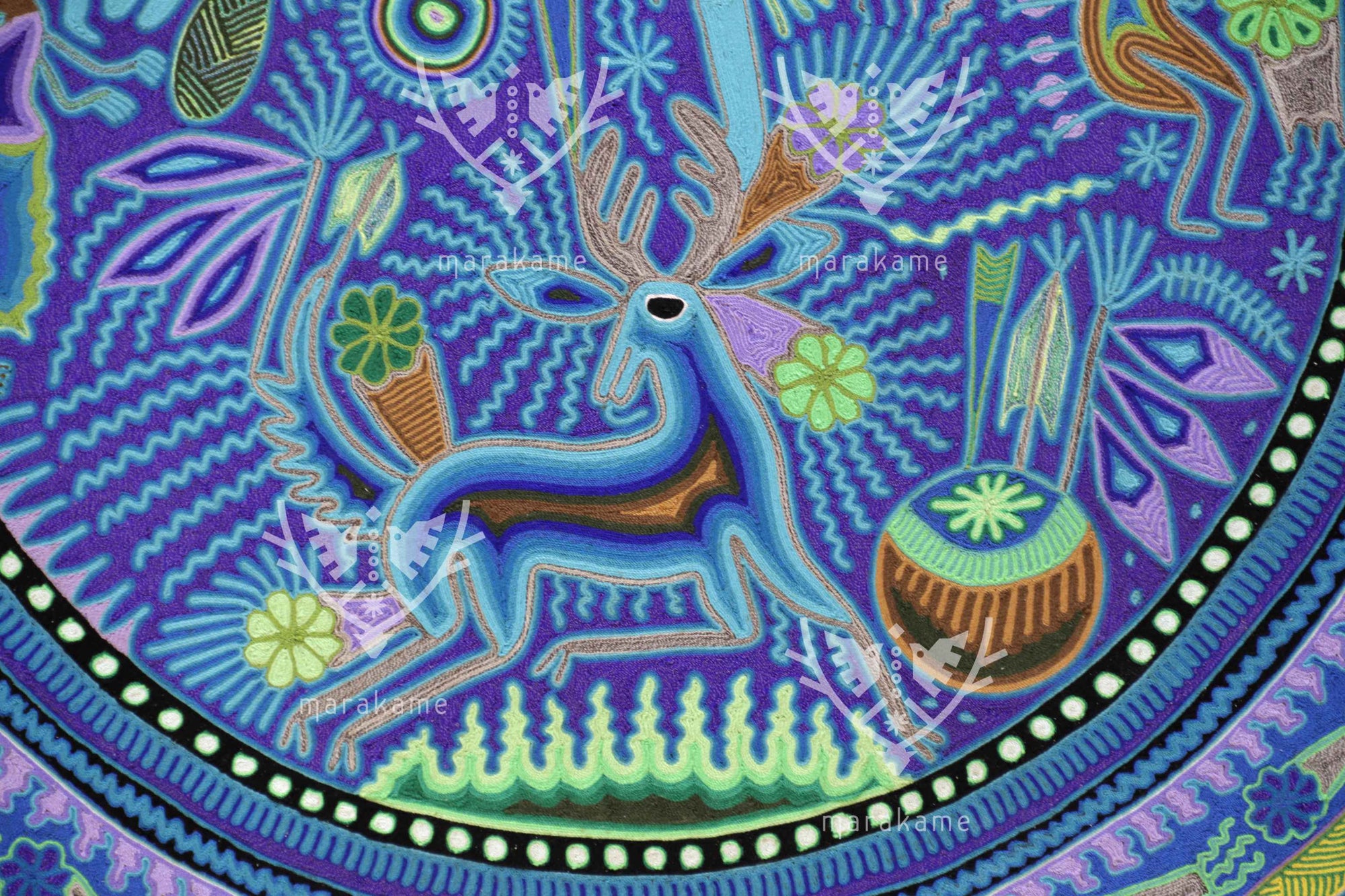 Nierika de Estambre Círculo Huichol - Wautüri - Ofrenda de Venado - 120 cm. - 2025