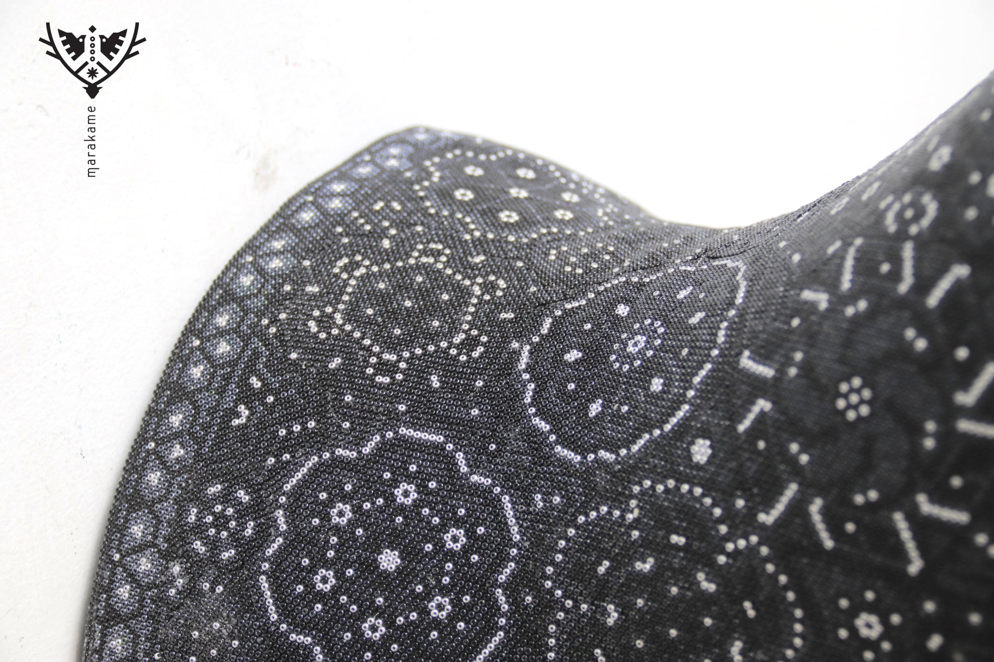 Creada por la maestra de arte visionario wixárika, Ramona de la Cruz de Tatei Kié, y comisionada por Arte Marakame, esta obra fusiona lo tradicional con lo moderno, honrando la herencia wixárika en cada detalle hecho a mano.