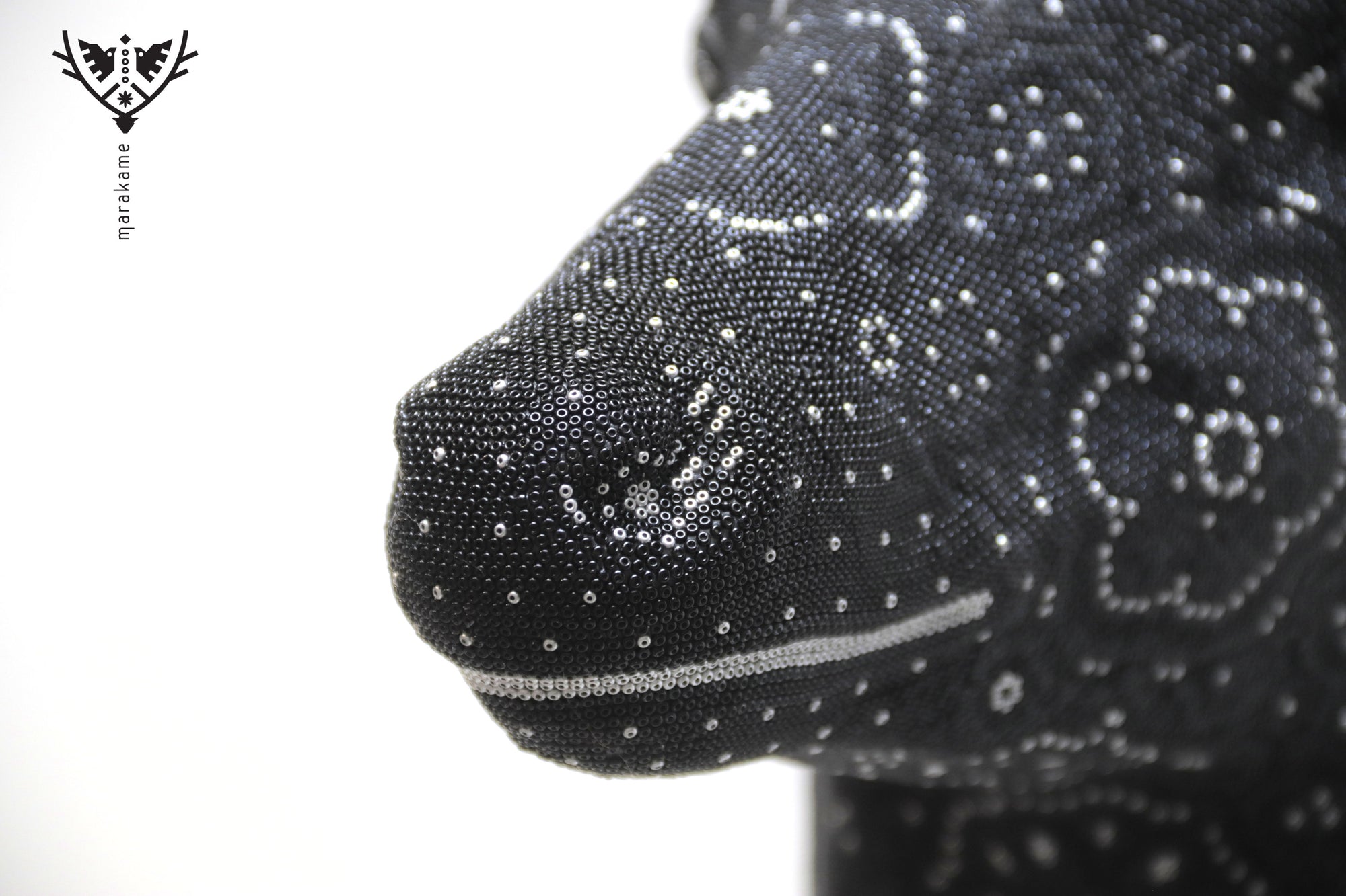 • ◇ Técnica: Chaquira de cristal 11/0 prensada con pegamento epóxico especial sobre escultura realista de resina y fibra de vidrio.
