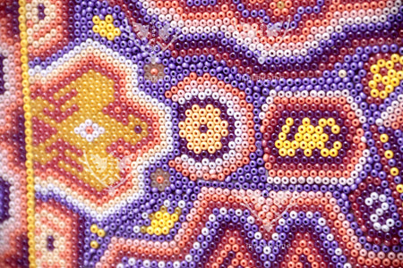 • ◇ Técnica: Chaquira de cristal calibrado 11/0 prensada con pegamento epóxico sobre círculo de madera.